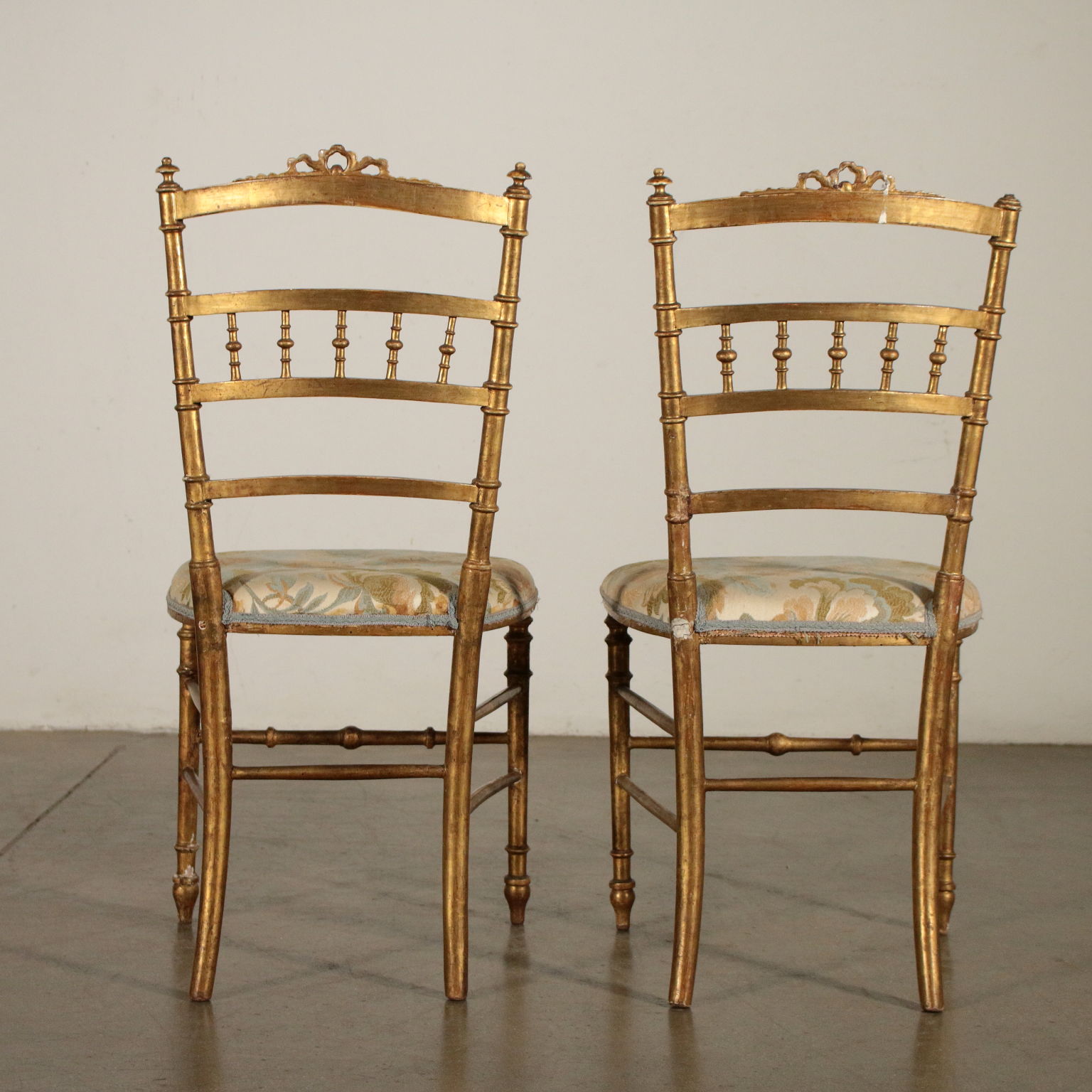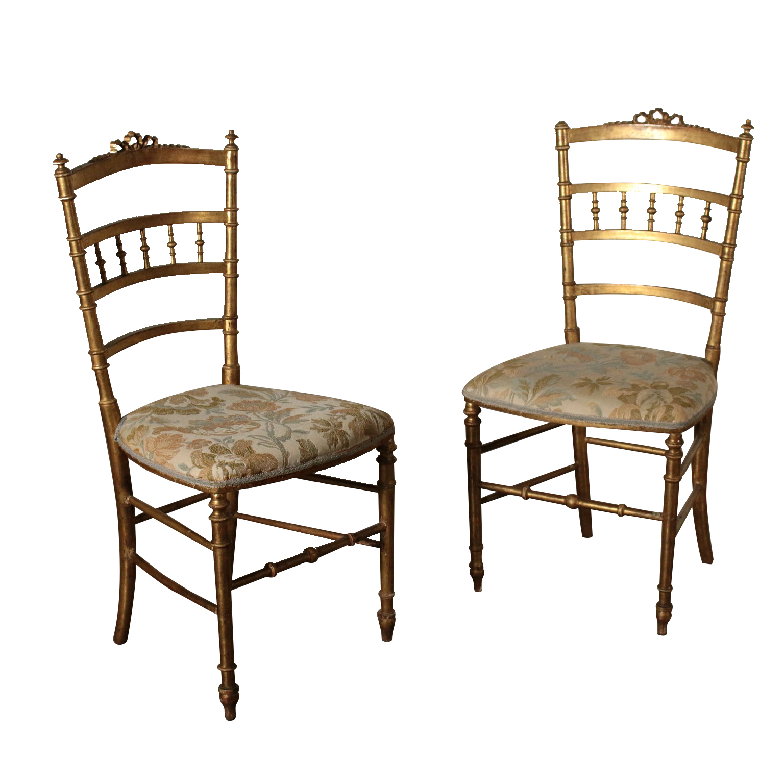 Paar Vergoldete Stühle Nussbaumholz Italien 19. Jahrhundert