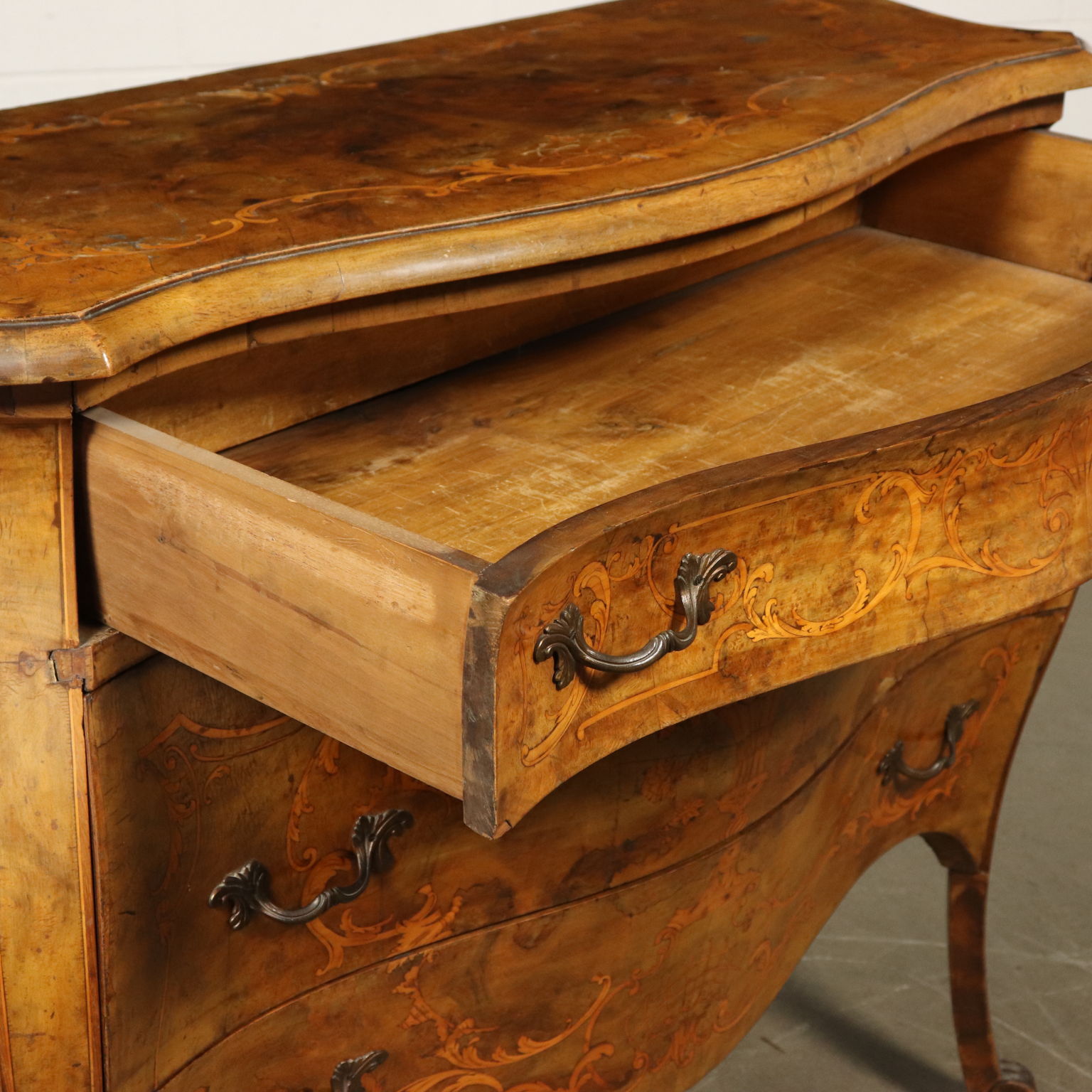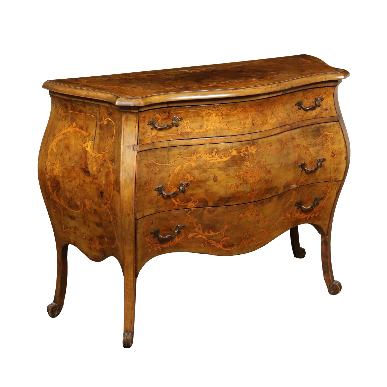 Kommode im Stil Spätbarock Nussbaumholz Italien 20. Jahrhundert
