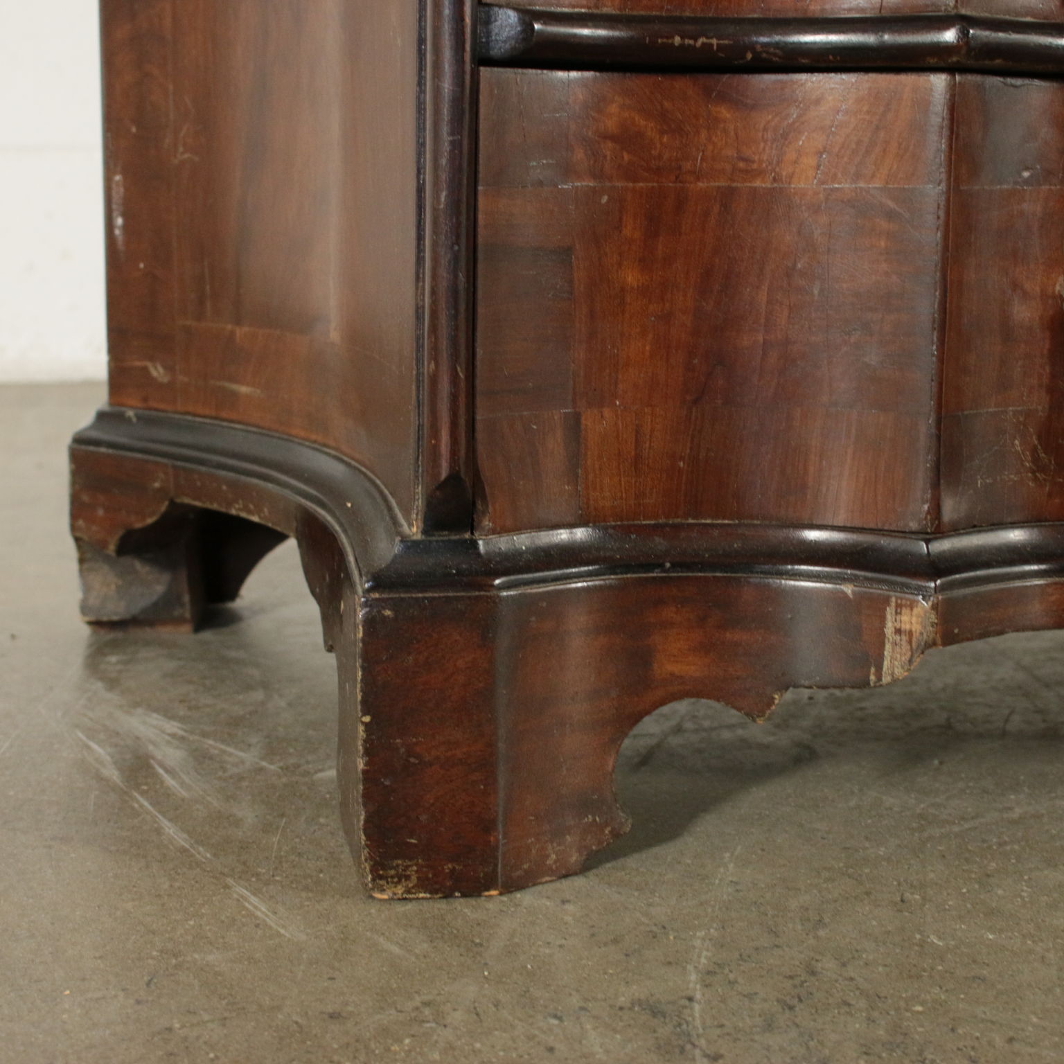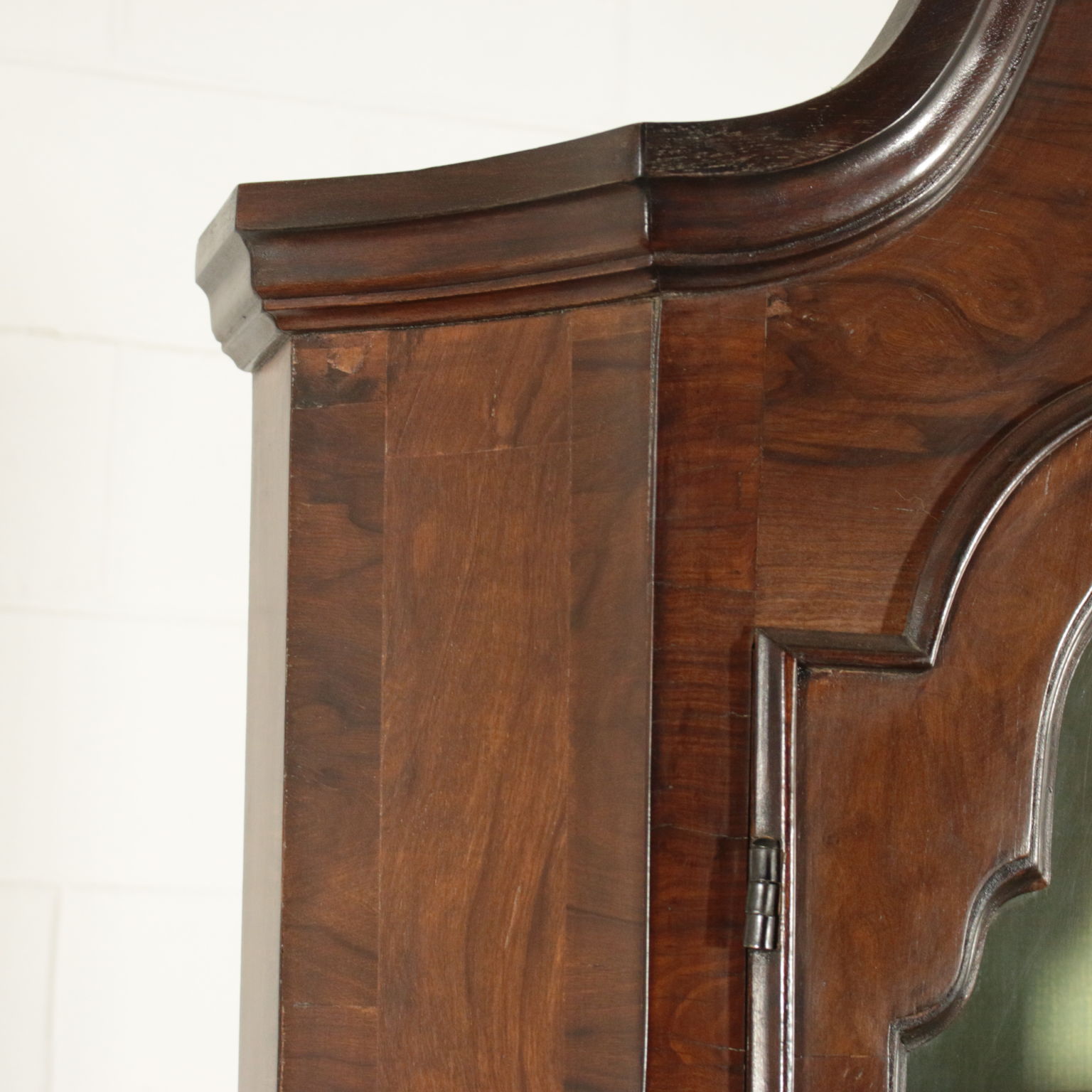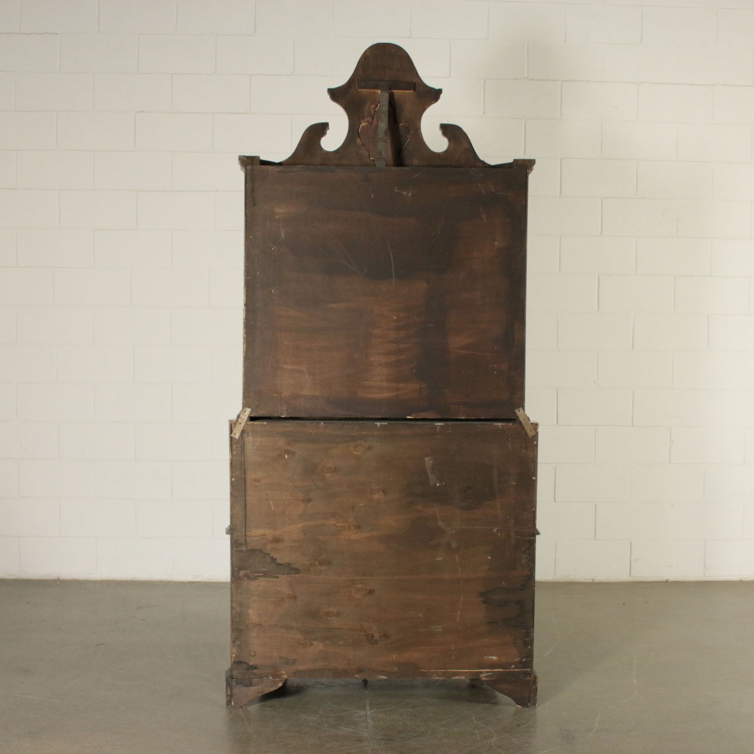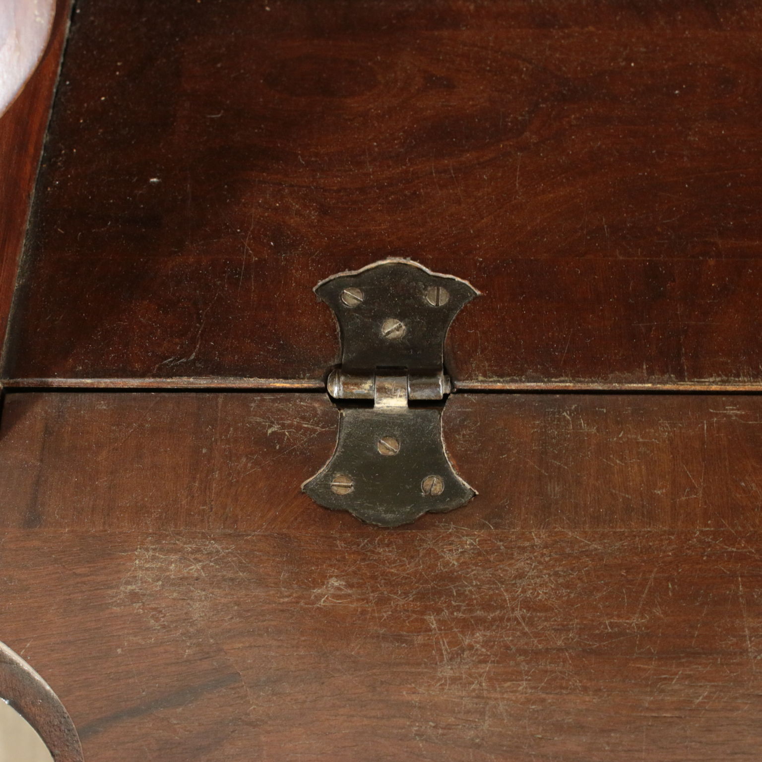 Bewegt auf der stirn und hüften hat drei schubladen und eine klappe. Innerhalb von vier cassettini. Paar türen mit glas und schriftrollen, die mittlere mit spiegel.