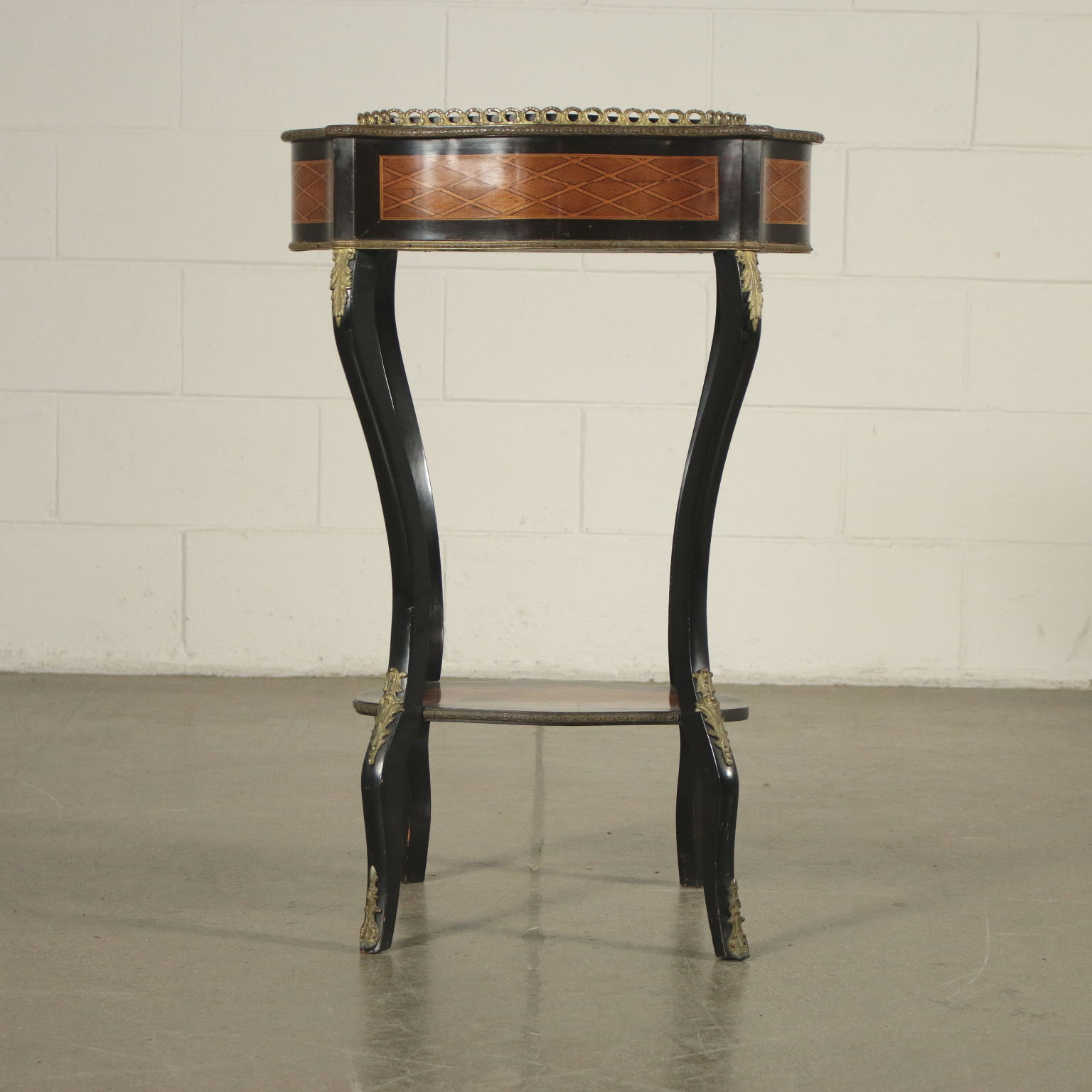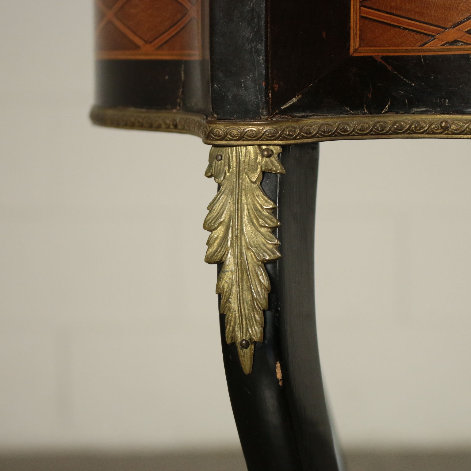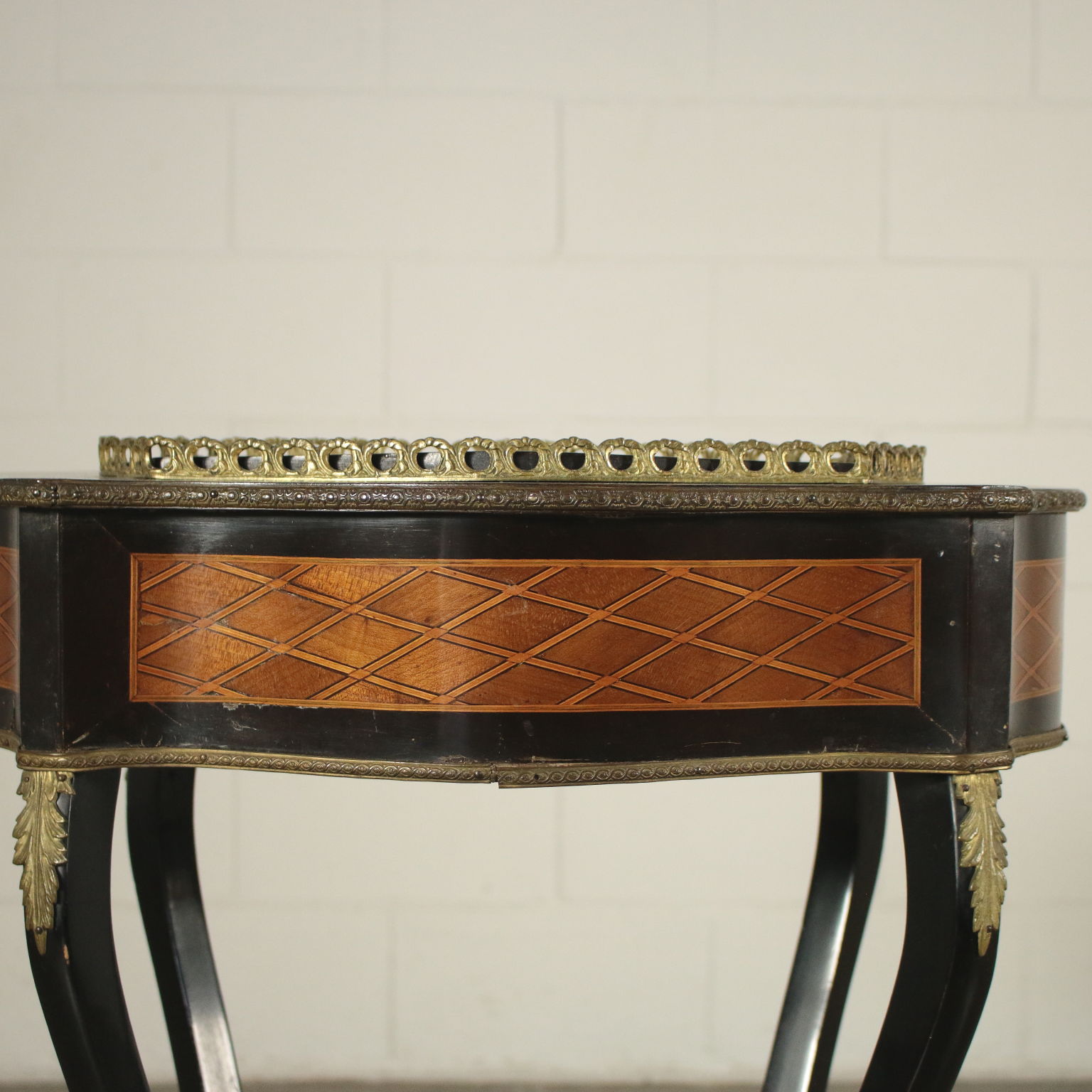 Tisch unterstützt durch beine bewegt verrundete von regal. Plan formte mit hoher rückwand und deckel reich mit intarsien. Innerhalb badewanne pflanzgefäß ausziehbarer zink. Präsentiert intarsien geometric; rahmen und friese in bronze.