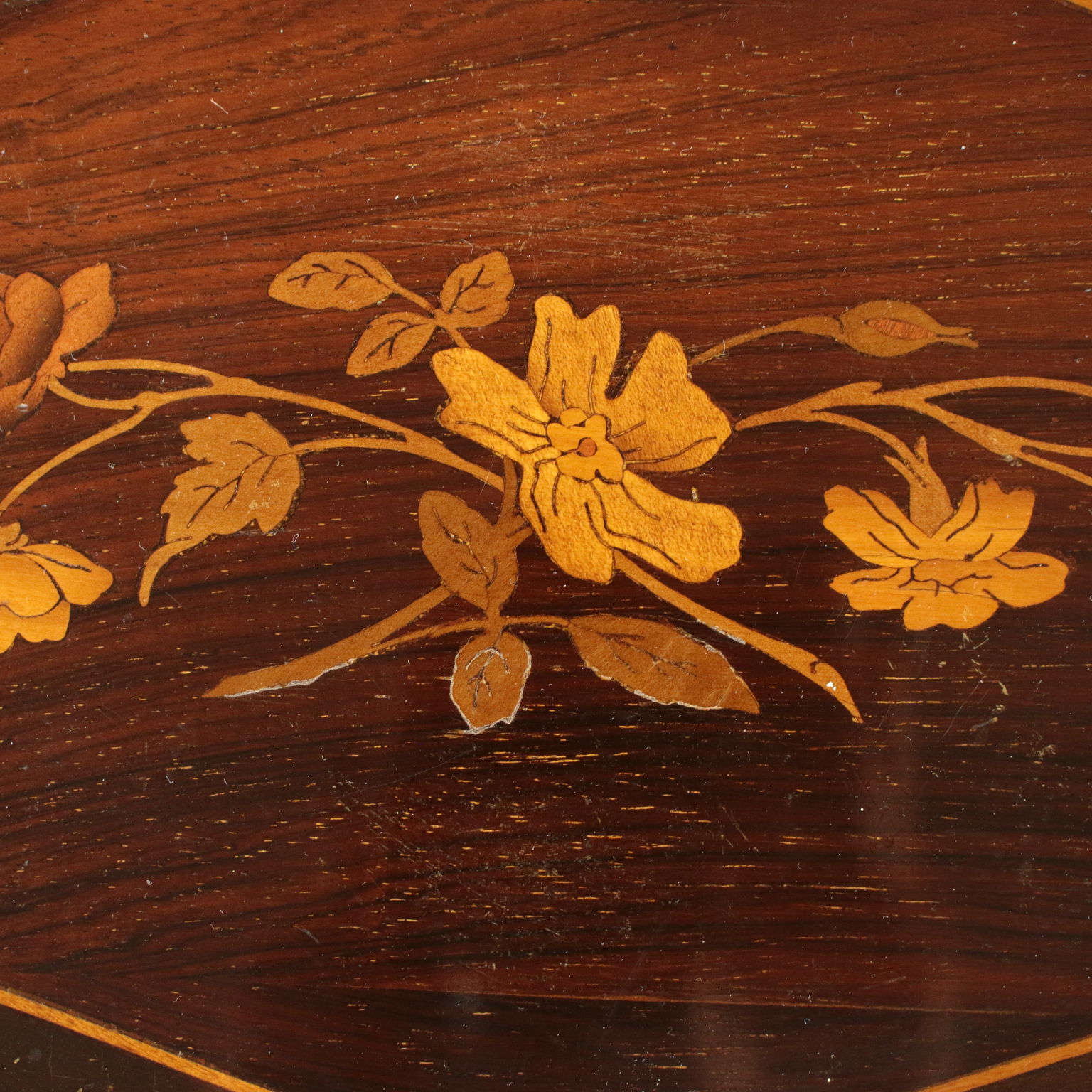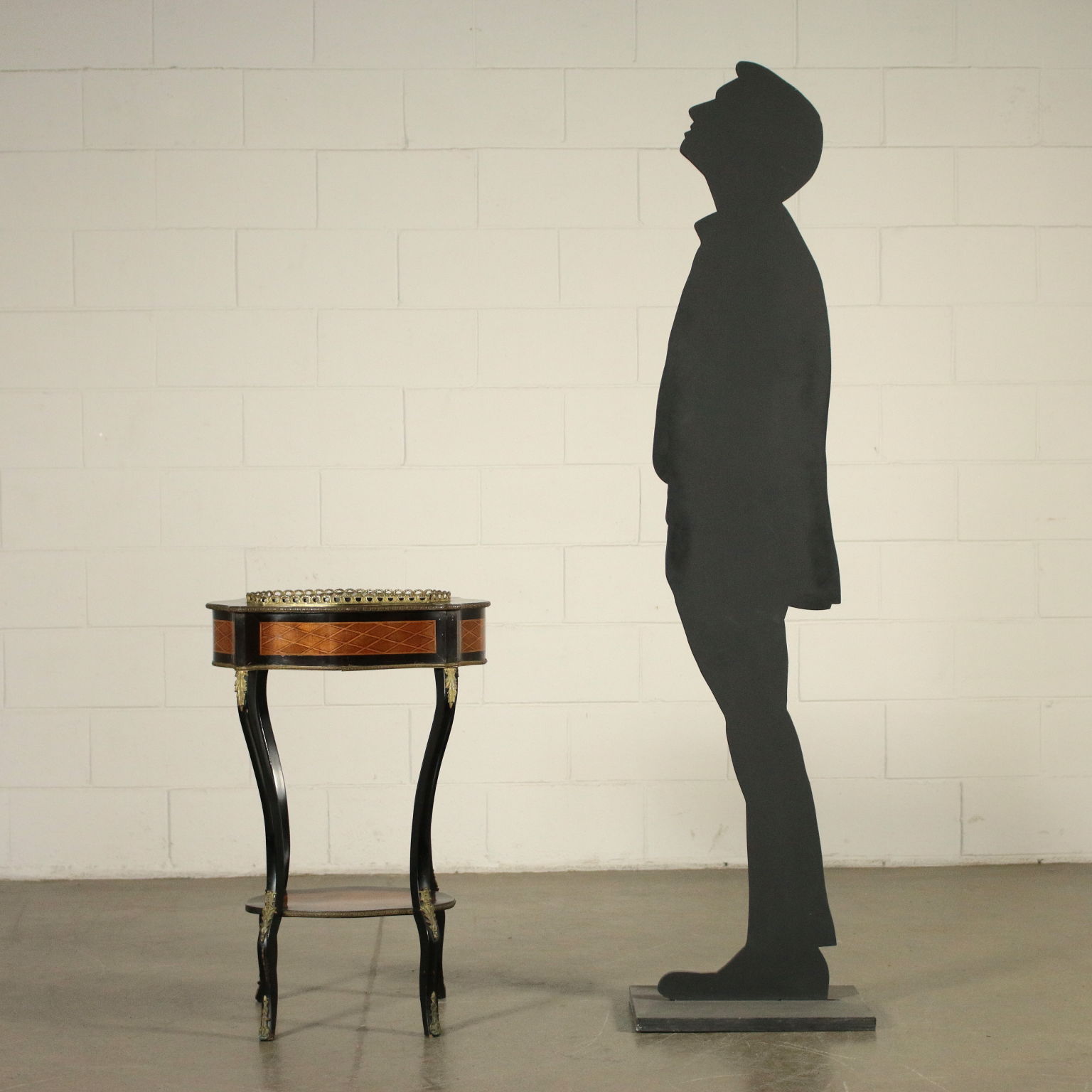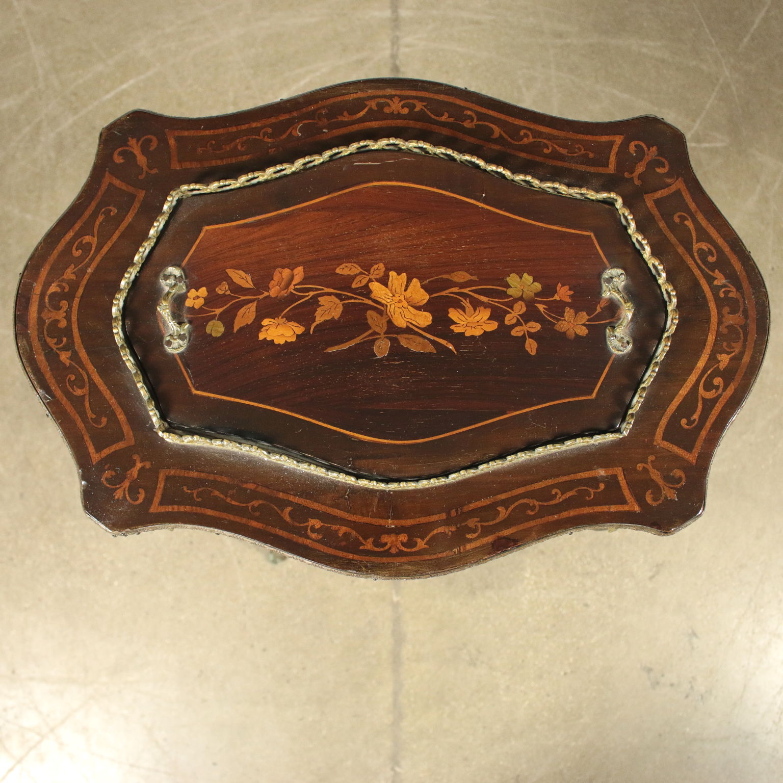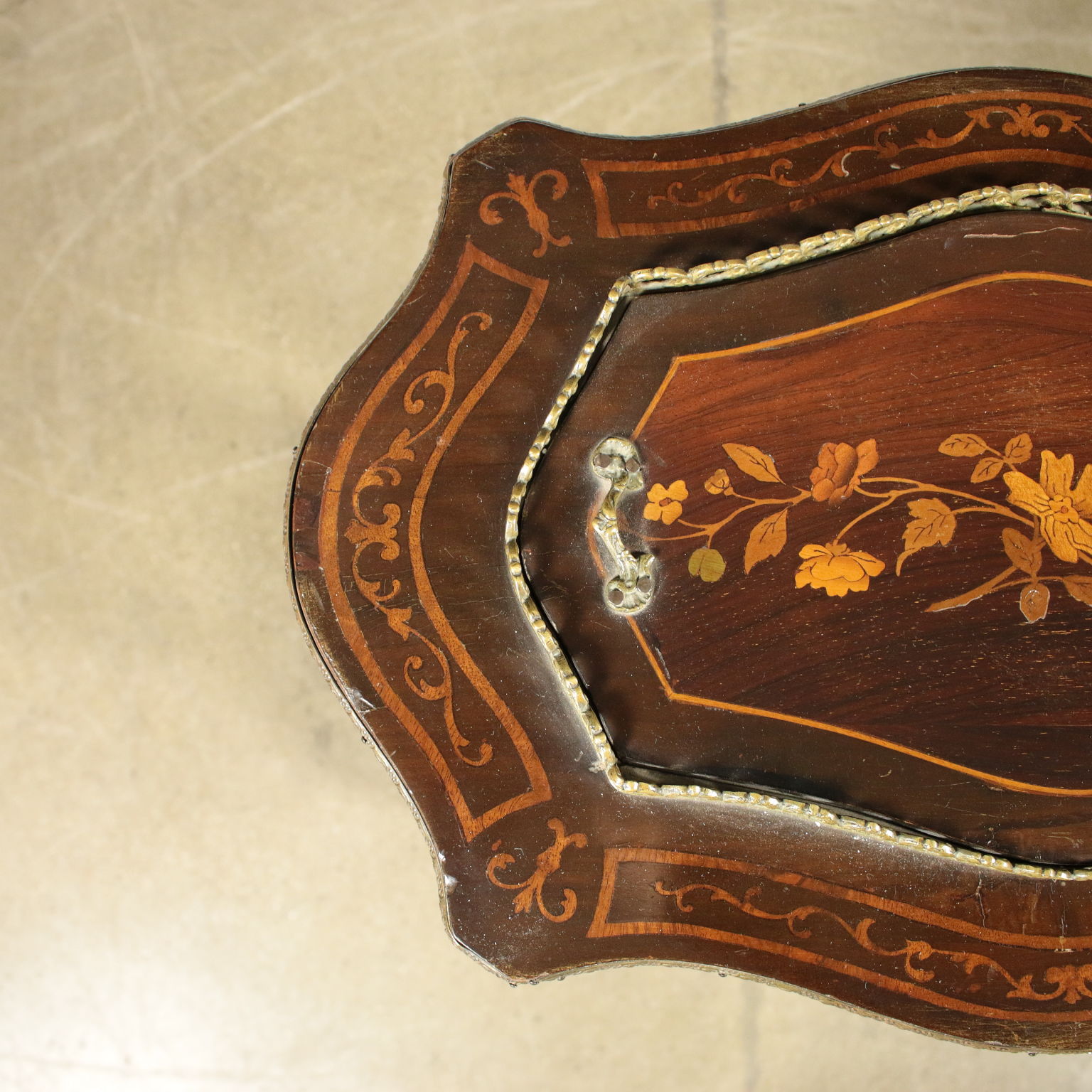 Tisch unterstützt durch beine bewegt verrundete von regal. Plan formte mit hoher rückwand und deckel reich mit intarsien. Innerhalb badewanne pflanzgefäß ausziehbarer zink. Präsentiert intarsien geometric; rahmen und friese in bronze.