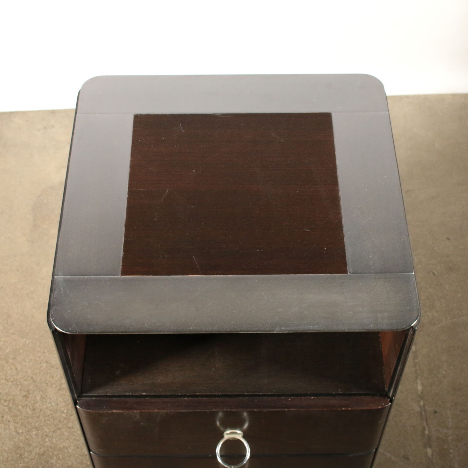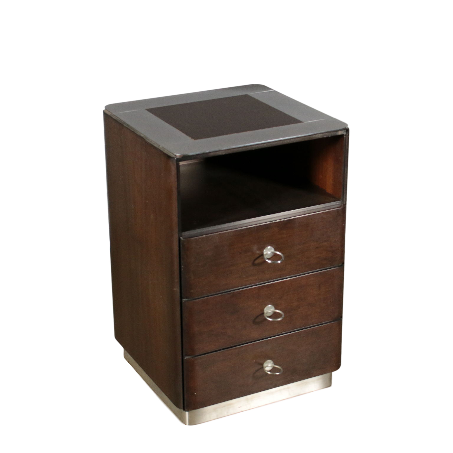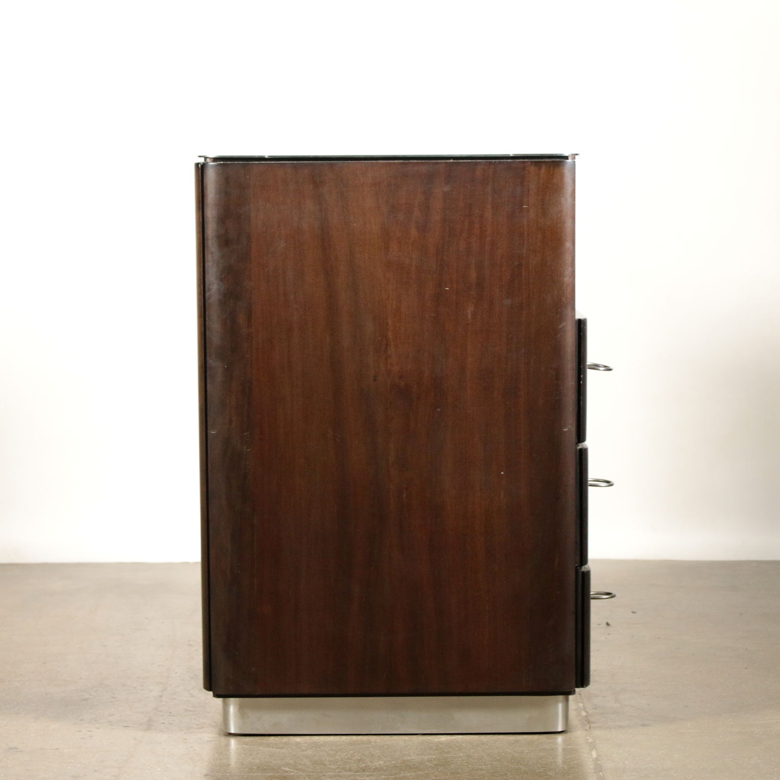 Mobile von der innenstadt schubladen in holz furniert palisander, zargen aus metall, verchromt.