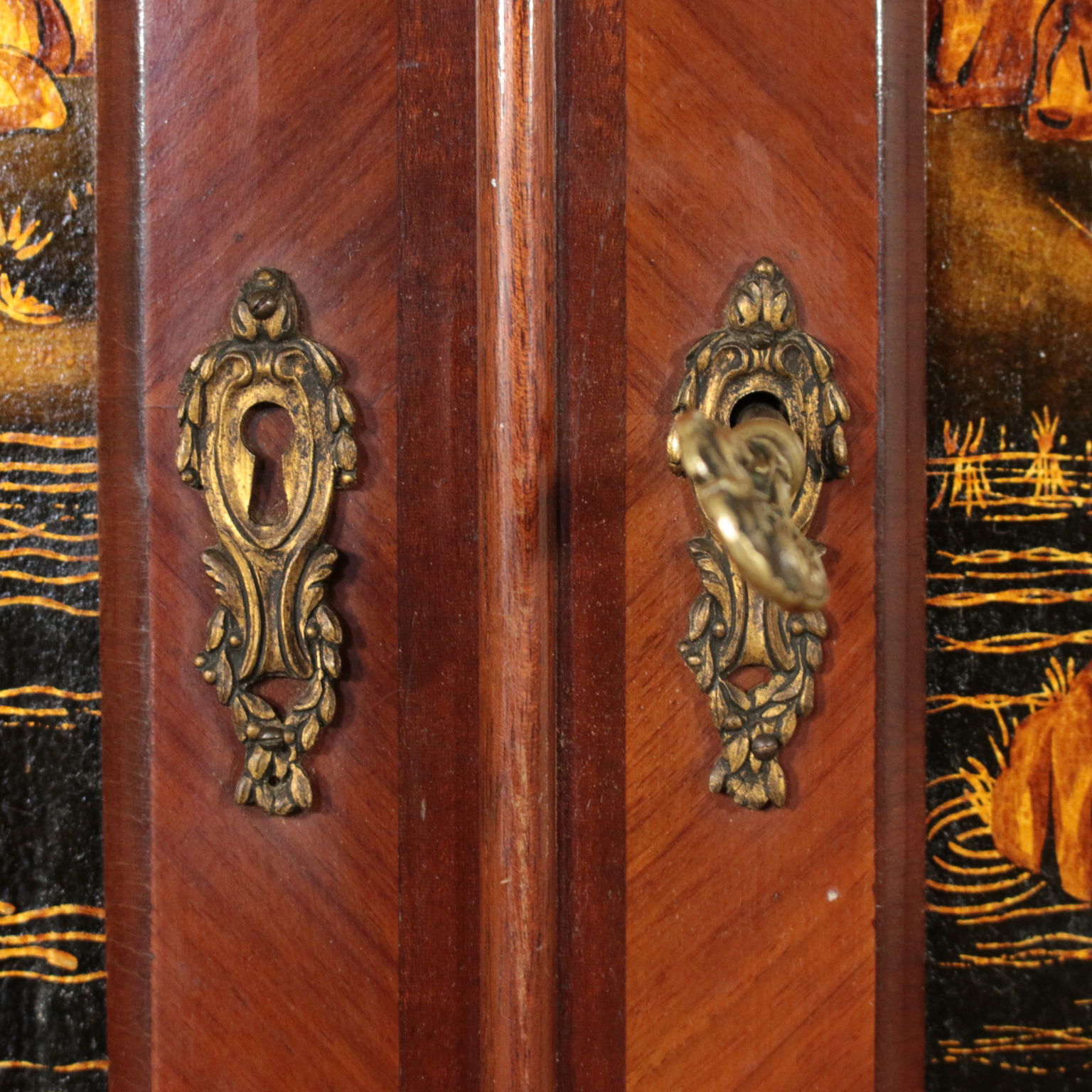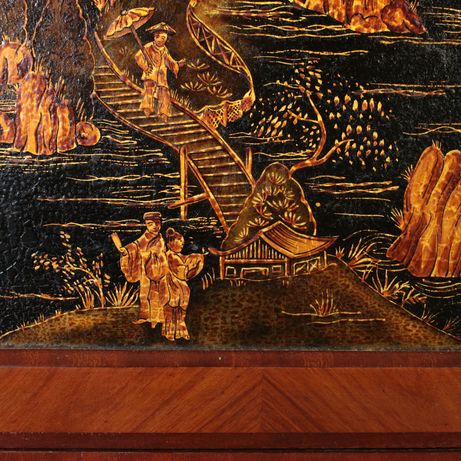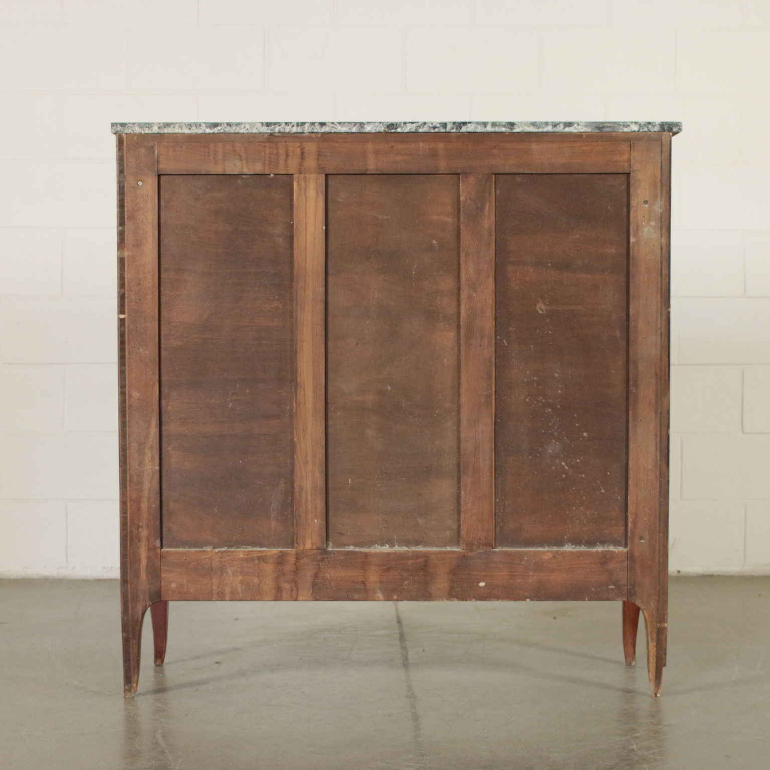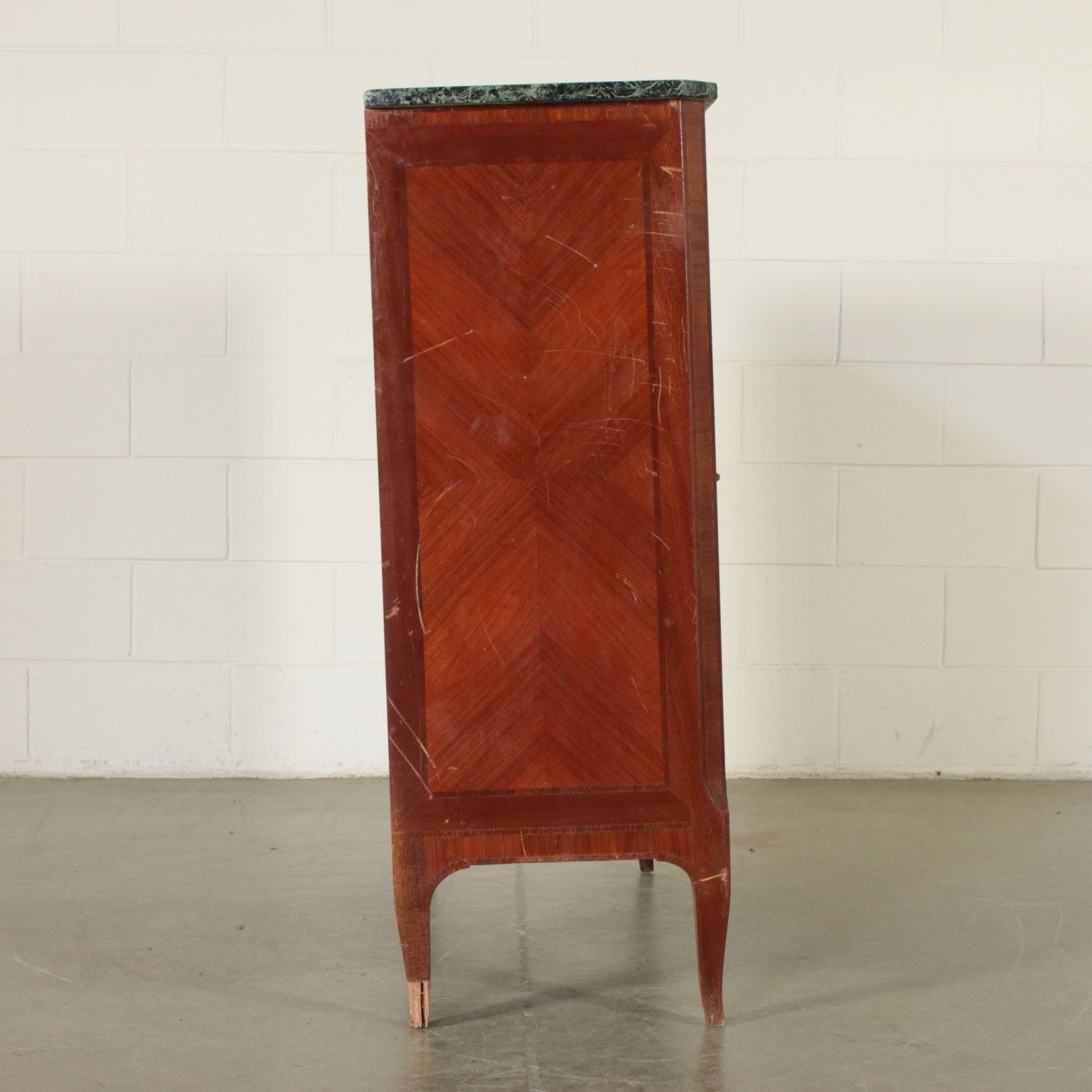Kommode mit schubkasten in buche. Hat paar türen mit dekor lackiert chinoiserie. Marmor-arbeitsplatte.