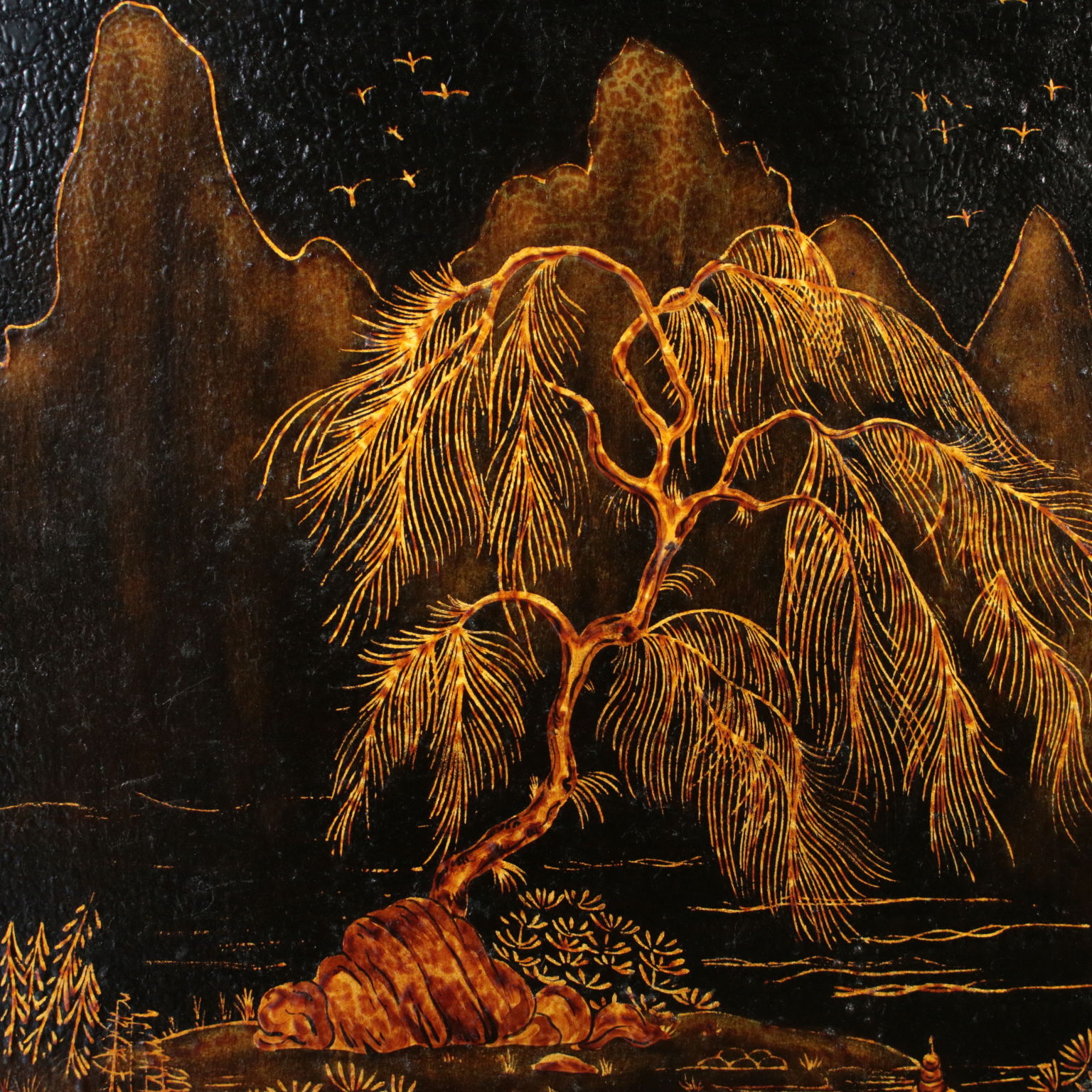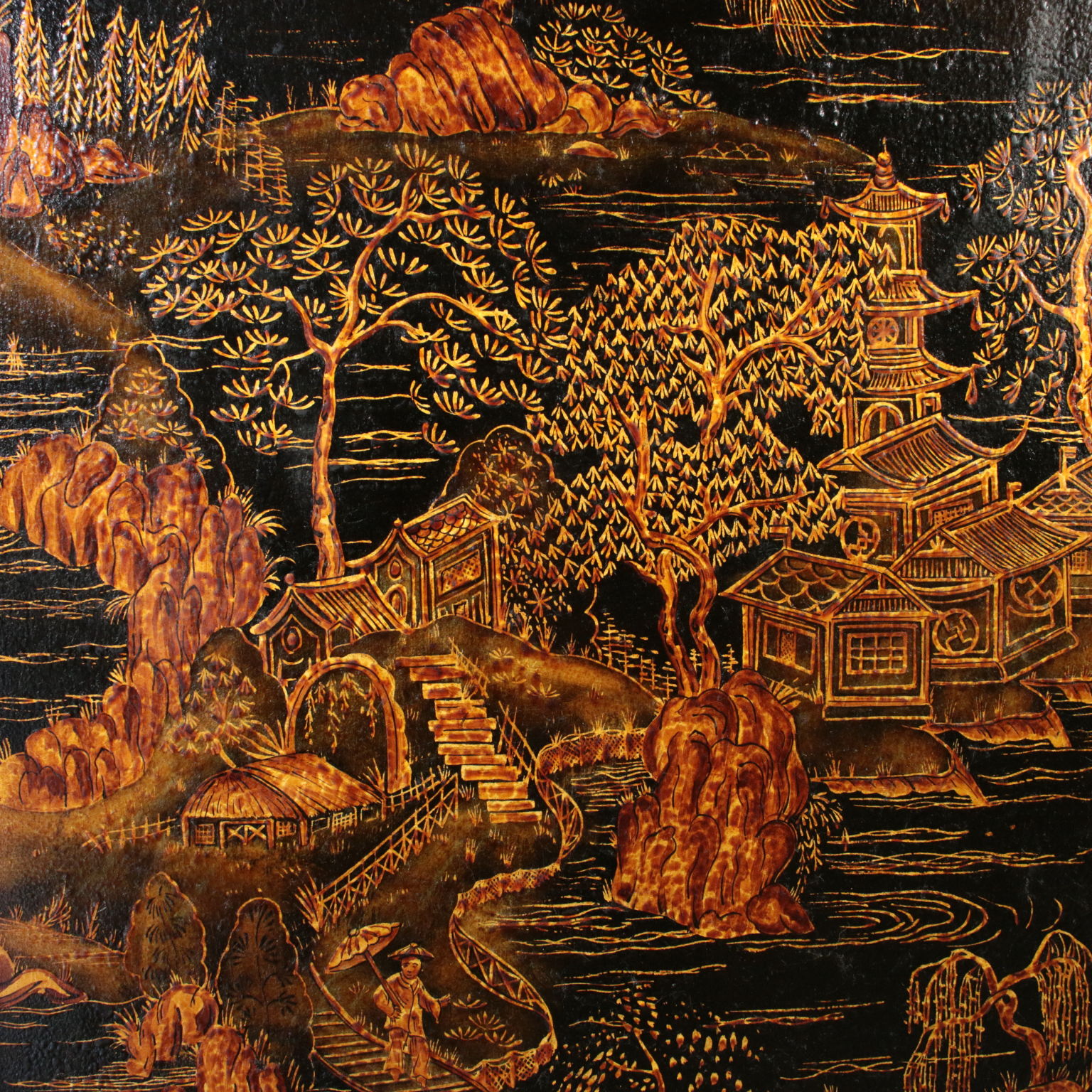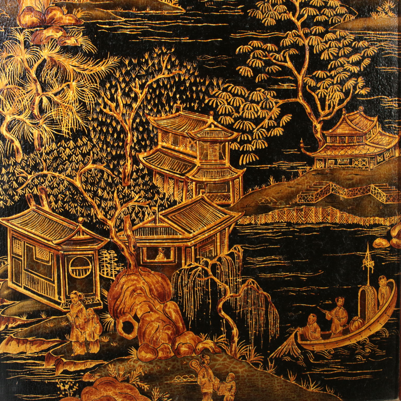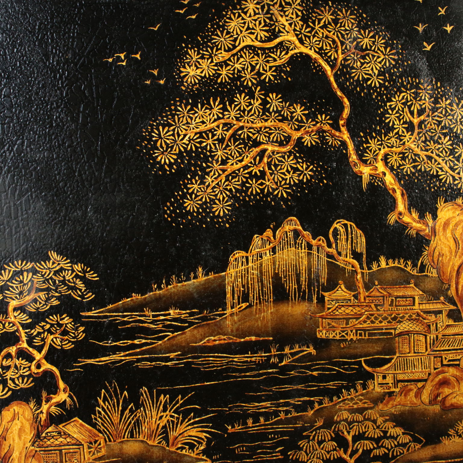 Kommode mit schubkasten in buche. Hat paar türen mit dekor lackiert chinoiserie. Marmor-arbeitsplatte.