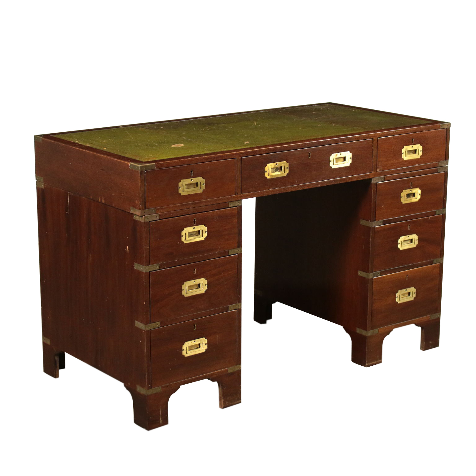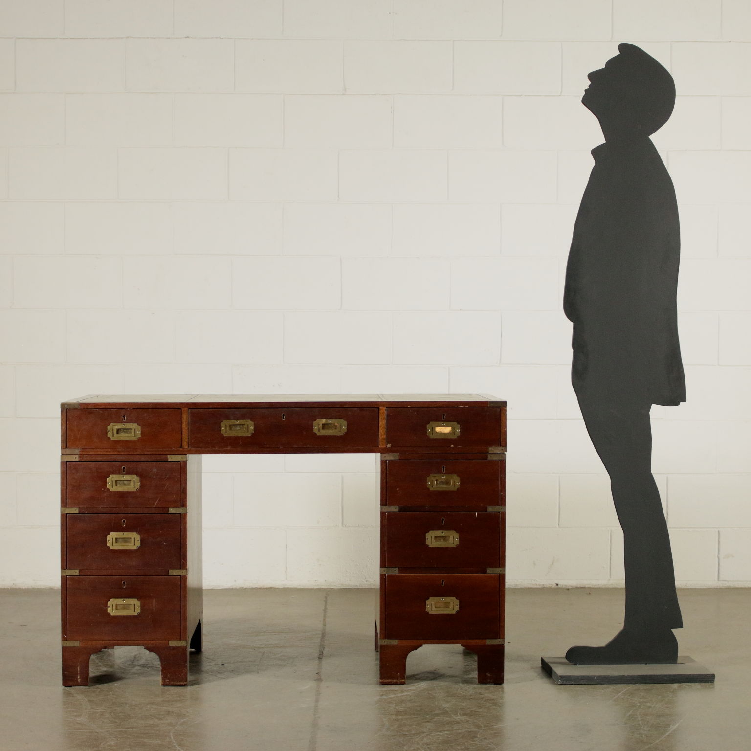 Schreibtisch aus der mitte gerade von paar bussolotti präsentiert treppenhaus und neun schubladen auf der vorderseite. Griffe und winkel-bündig-messing. Stock mit einsatz aus leder.