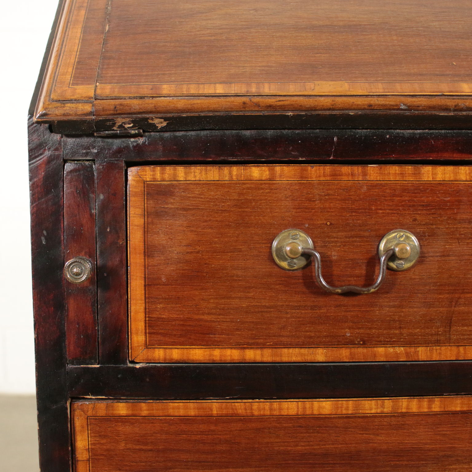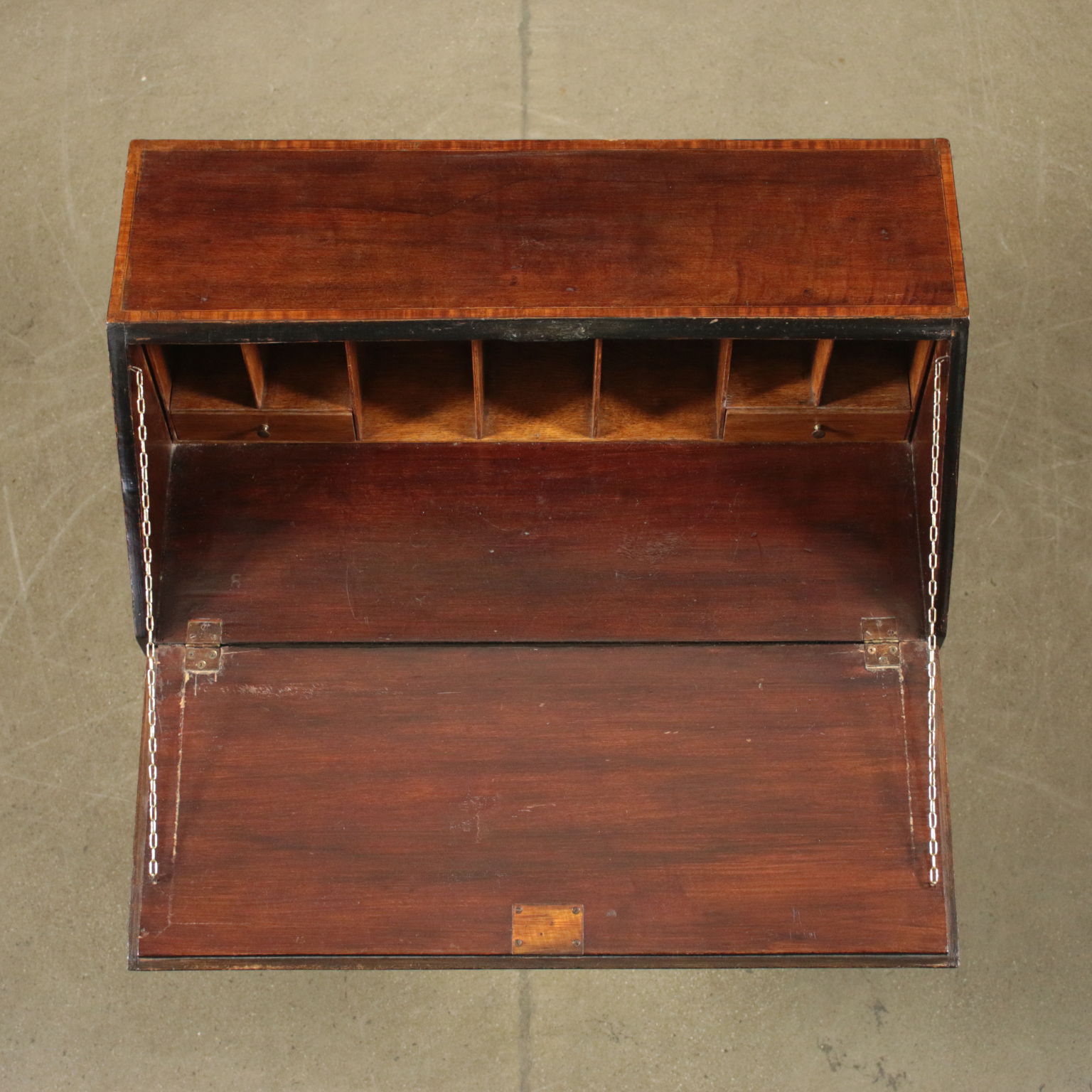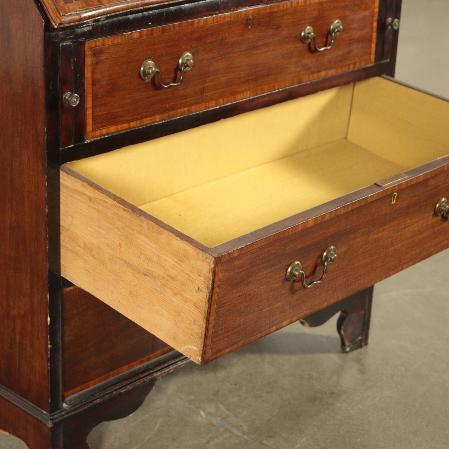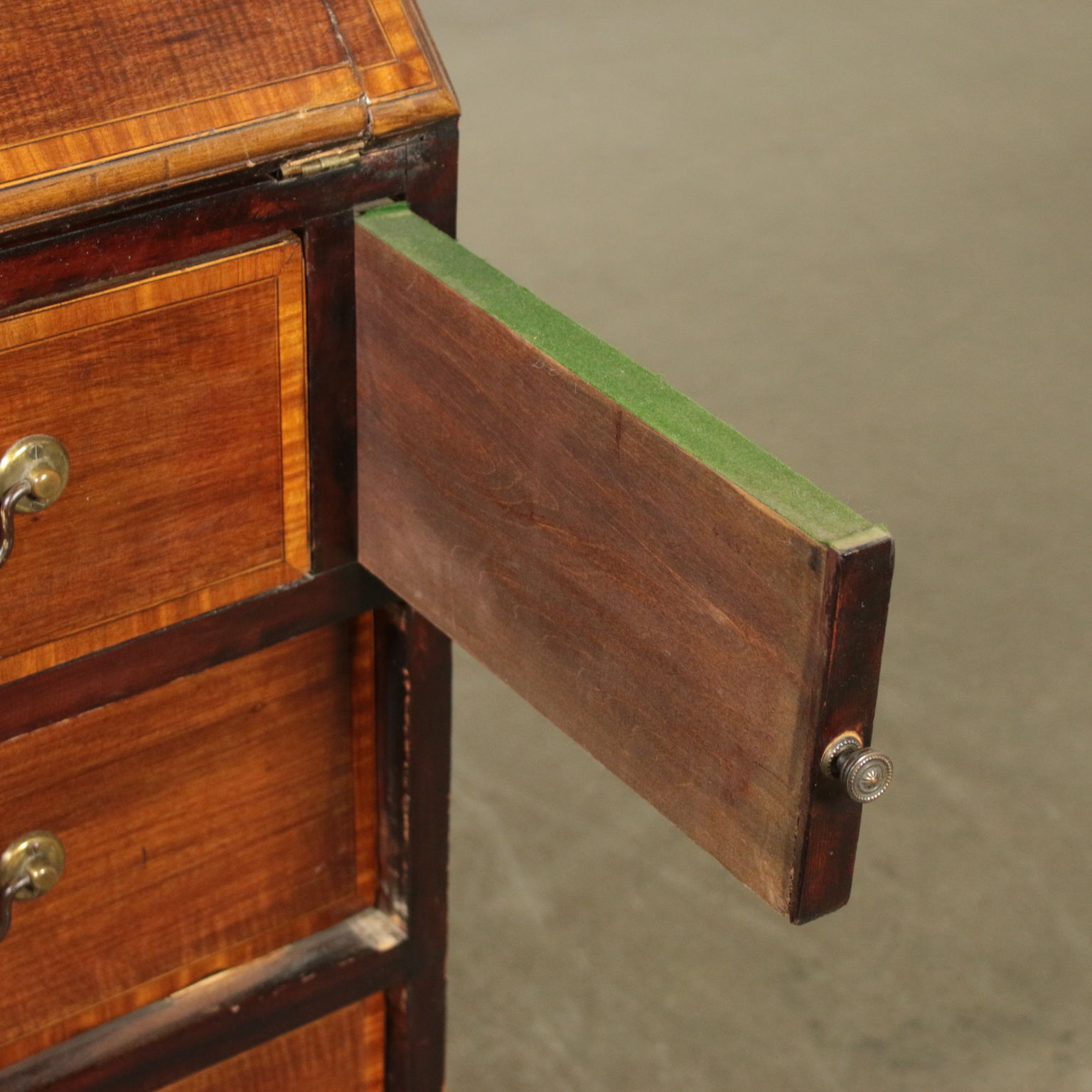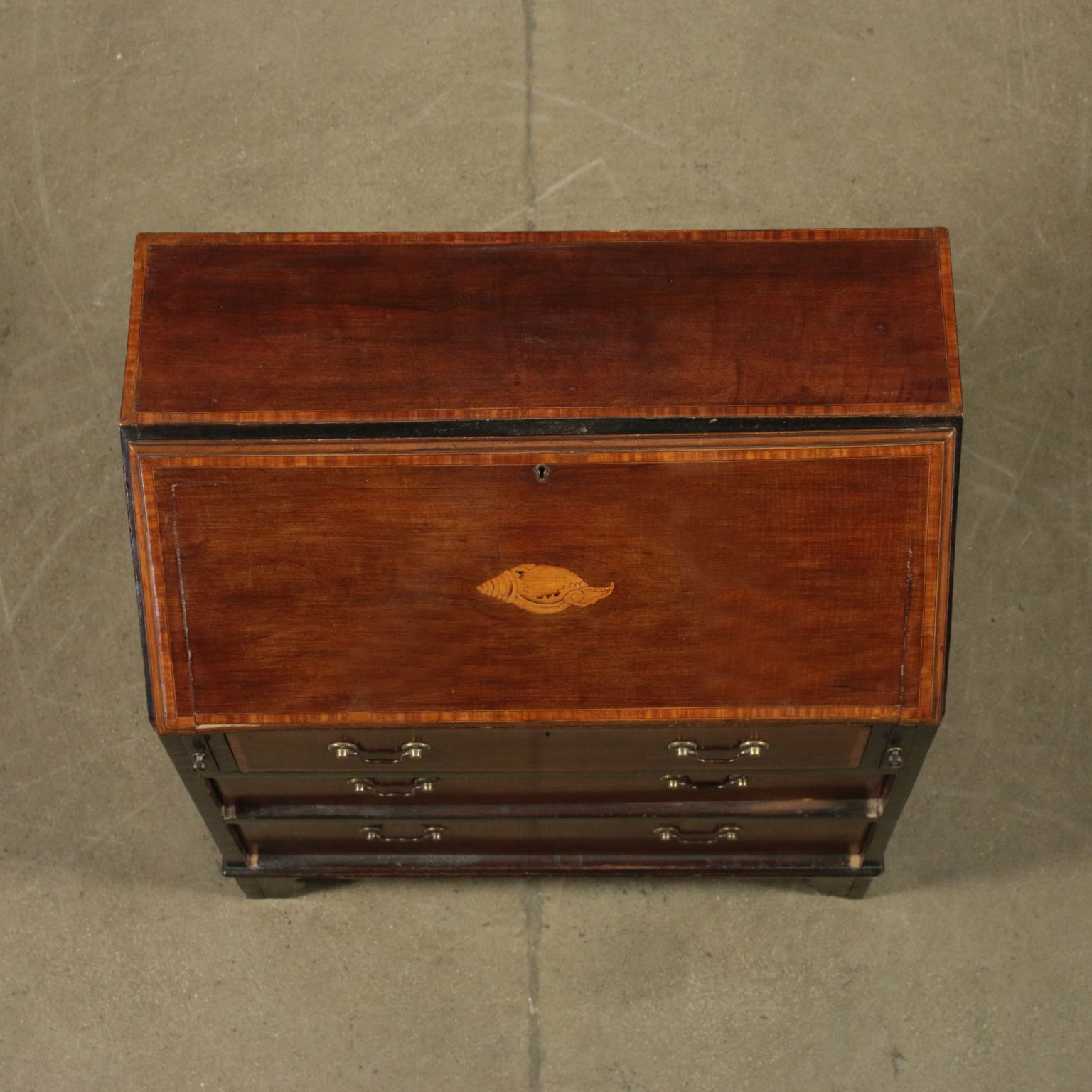 Die kleine bühne mit drei schubladen. Klappe mit muschel-eingelegte. Innerhalb von zwei cassettini und offene fächer.