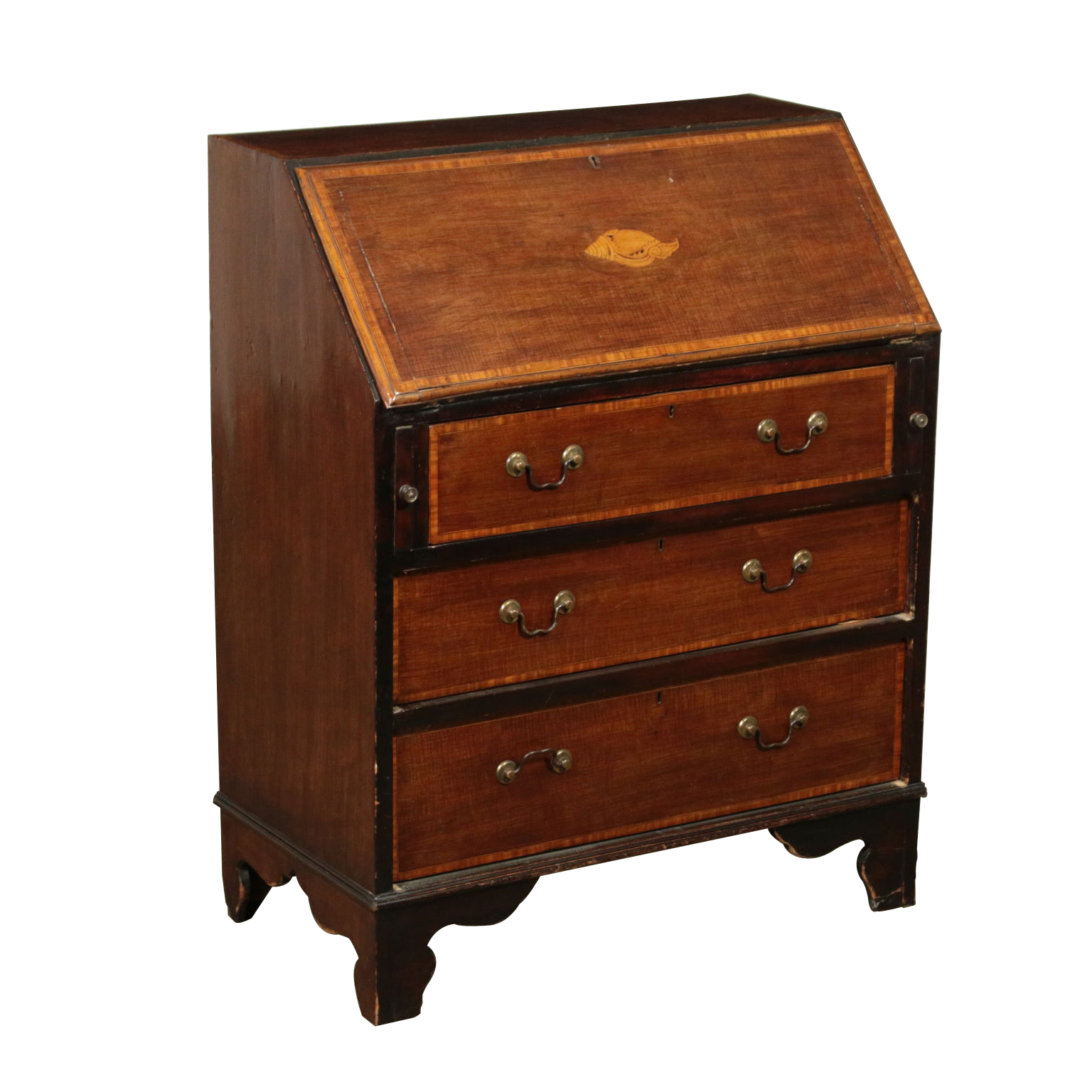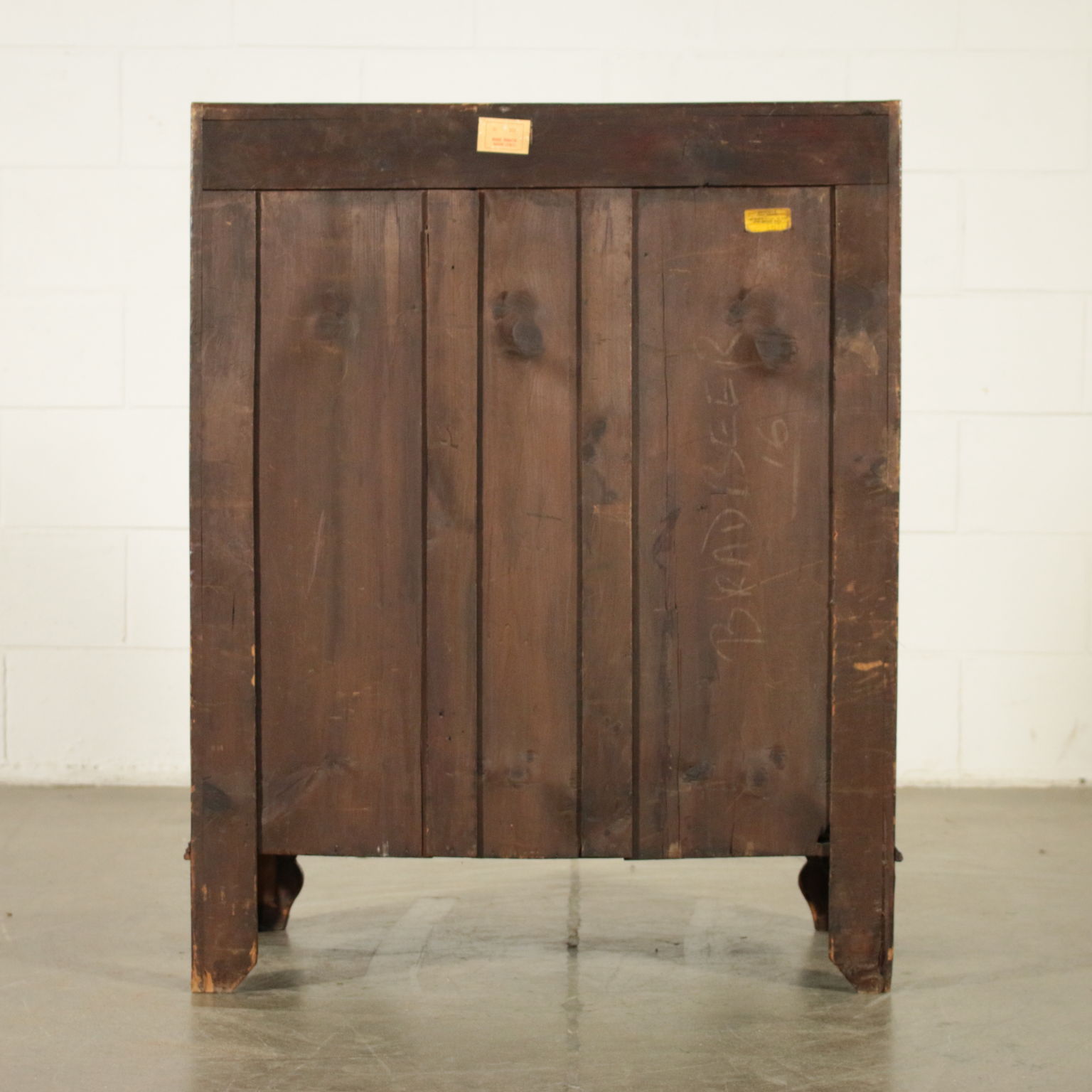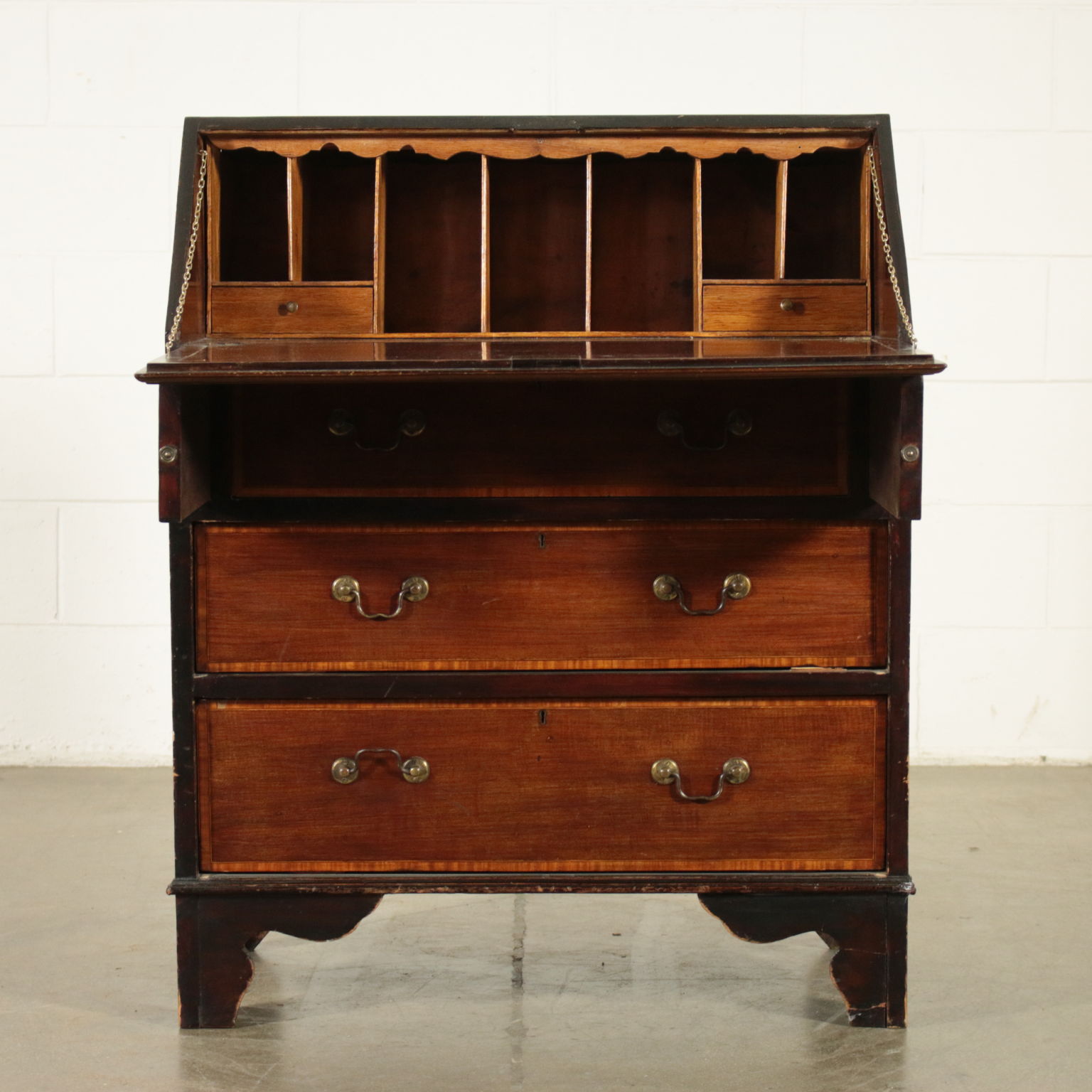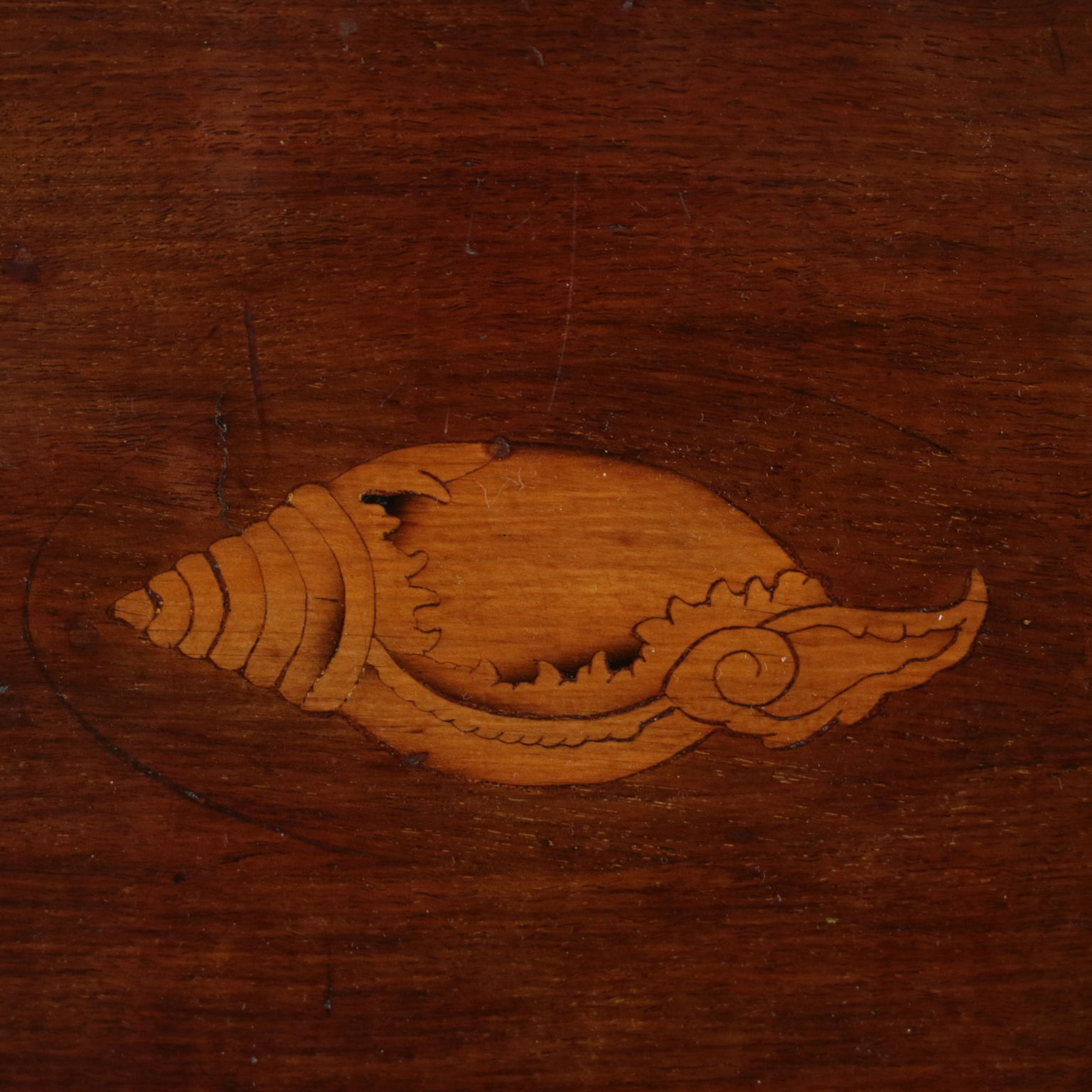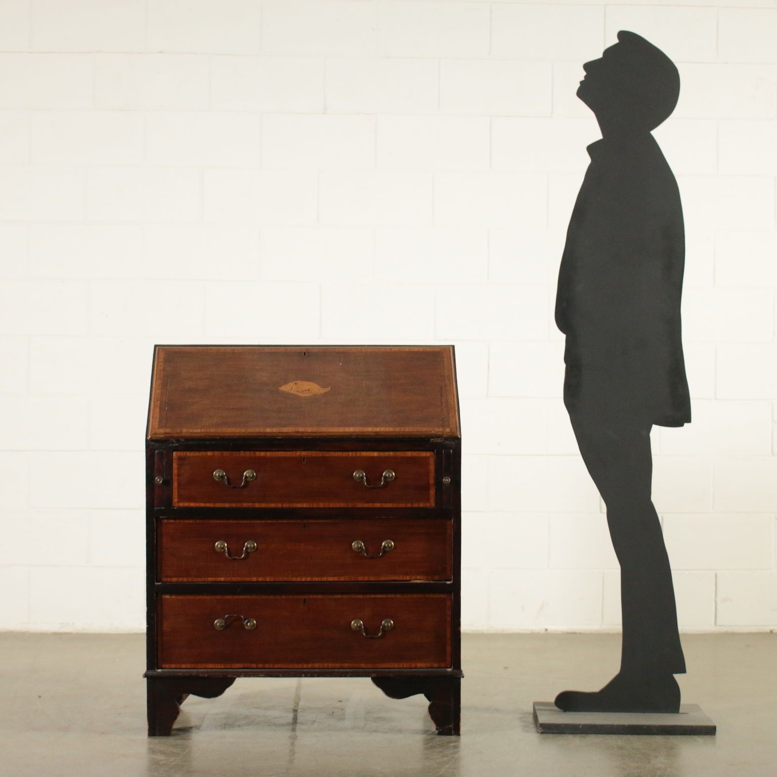 Die kleine bühne mit drei schubladen. Klappe mit muschel-eingelegte. Innerhalb von zwei cassettini und offene fächer.