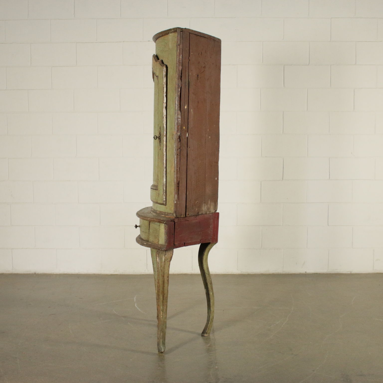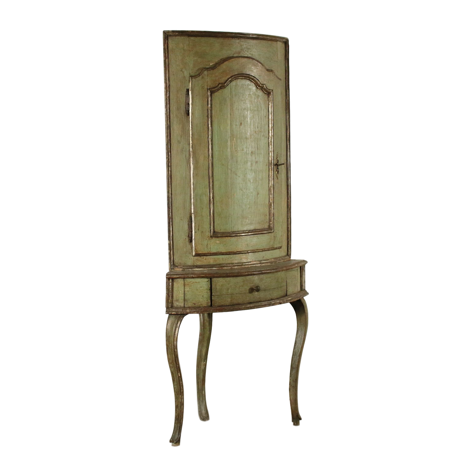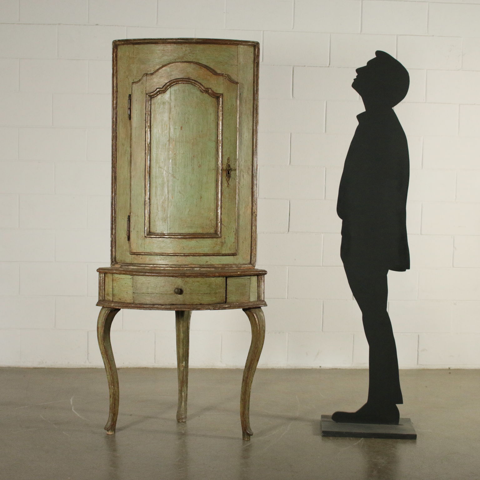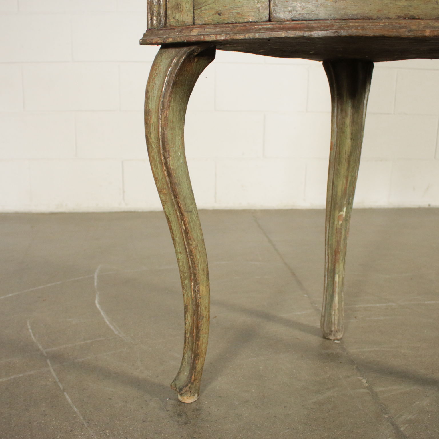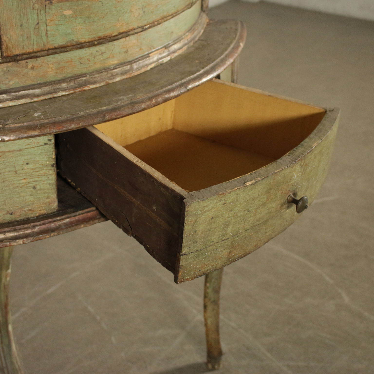 Angoliera demilune geraden beinen bewegt. Hat eine schublade in der band. Hochbeet mit einer tür geformt. Vollständig lackiert.