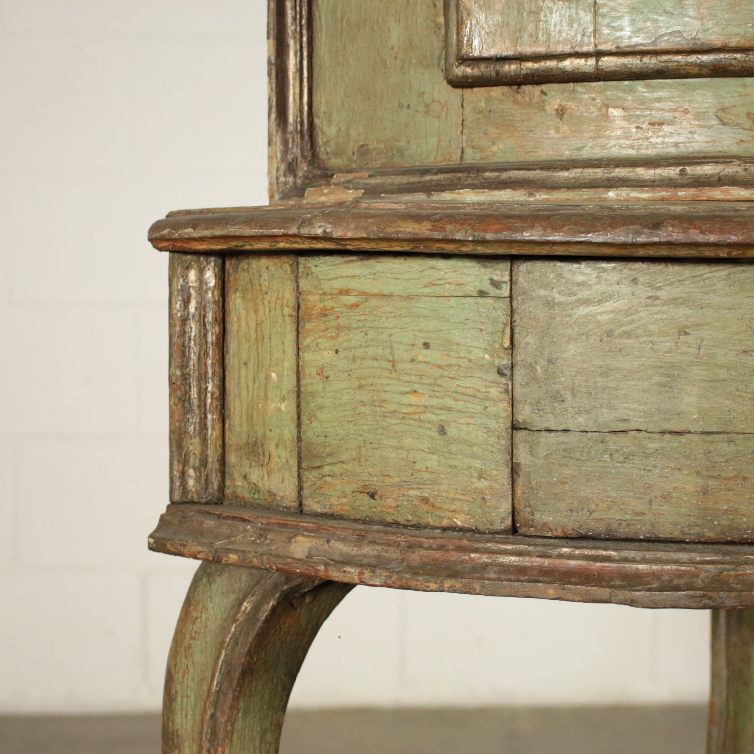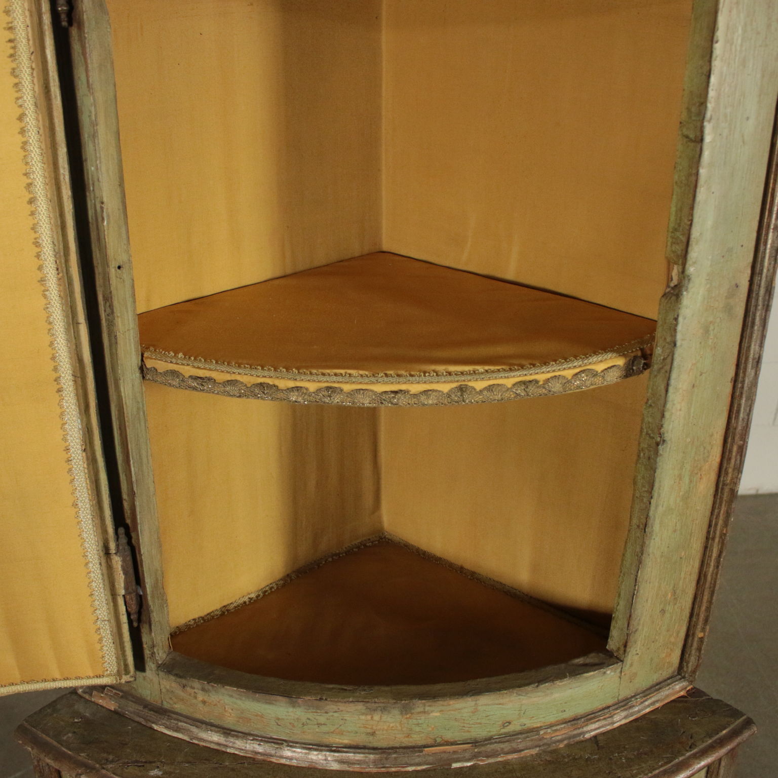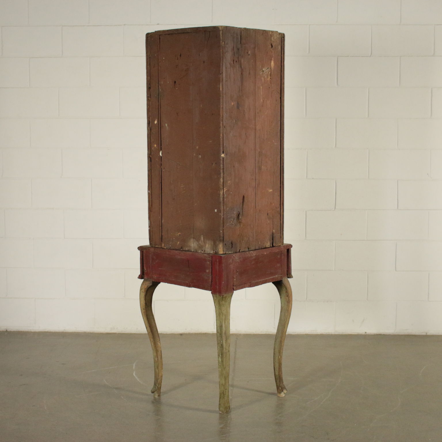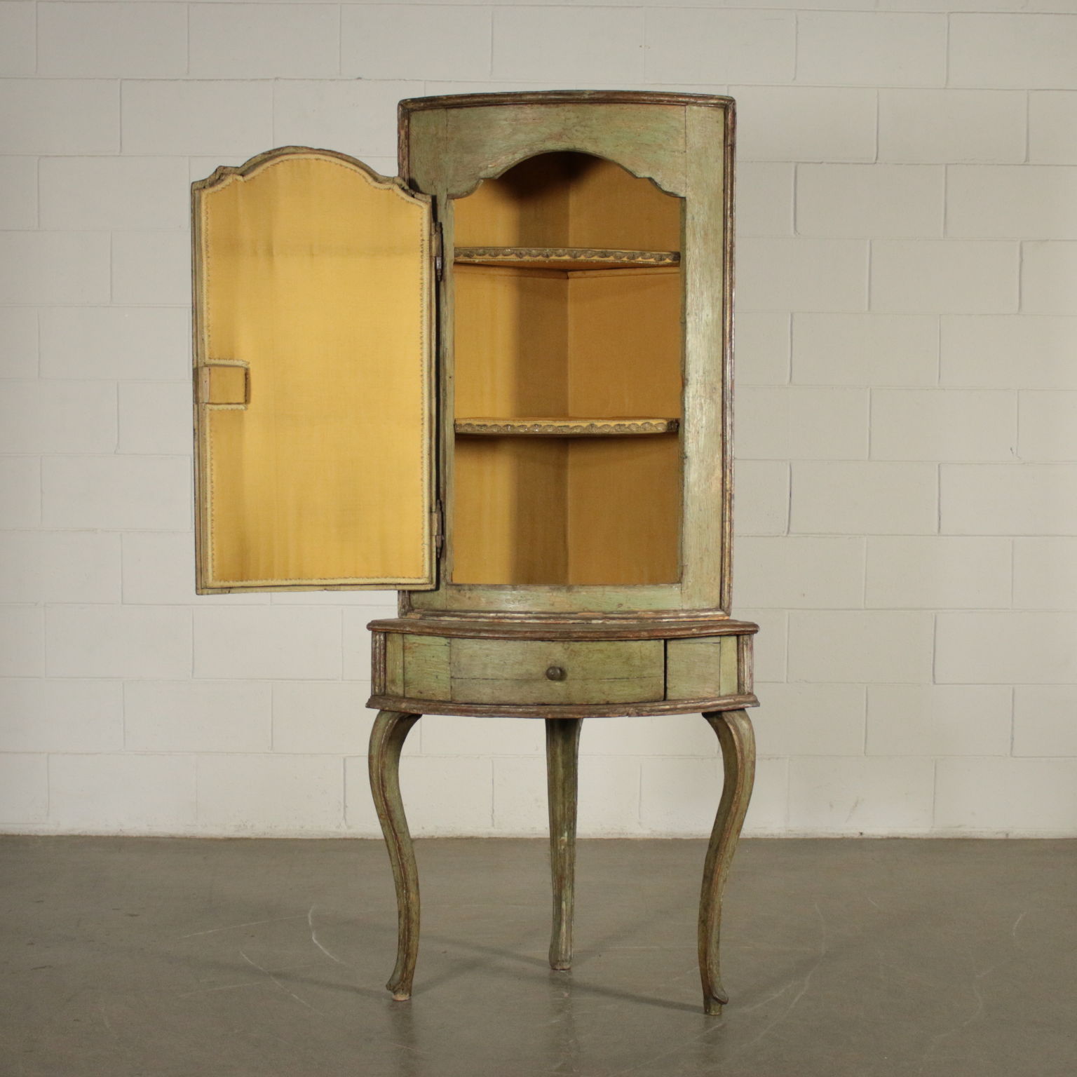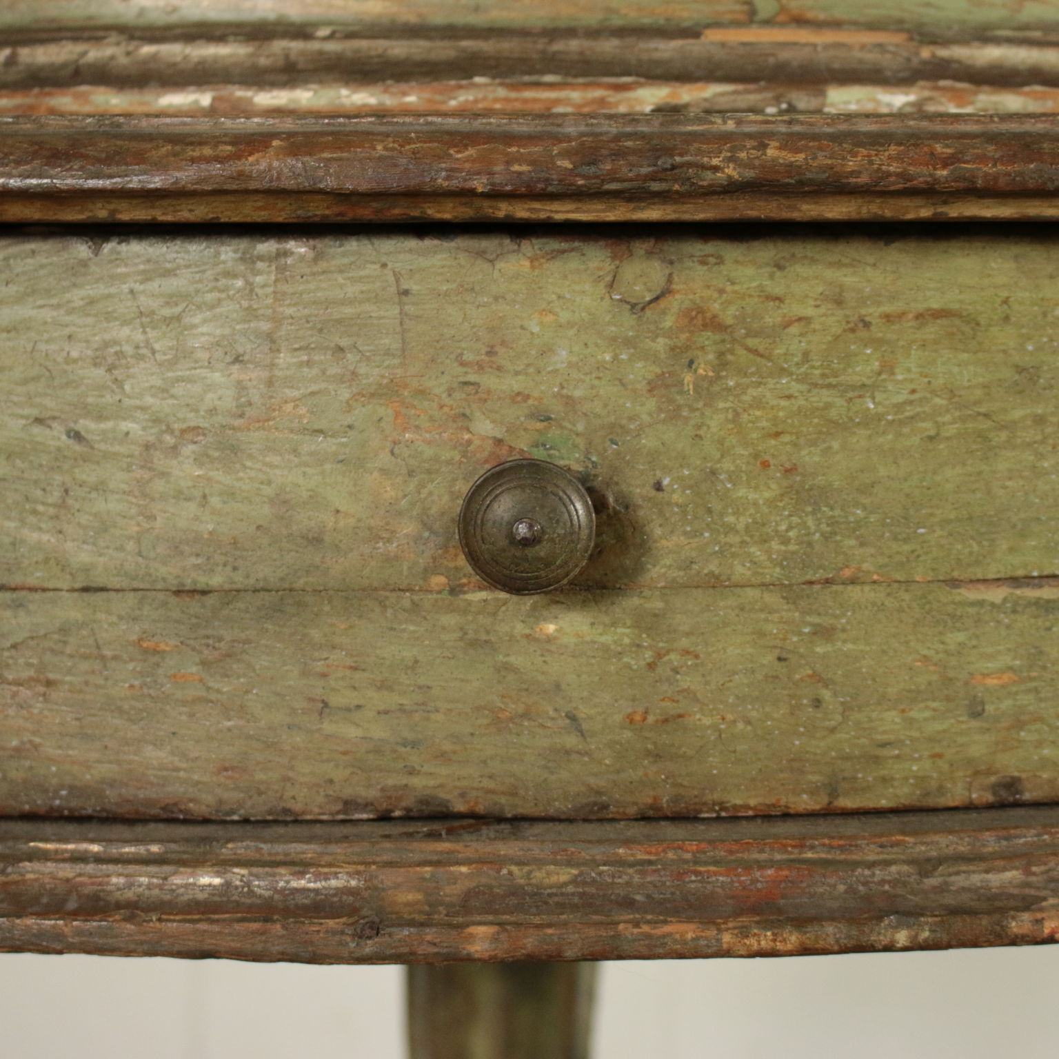 Angoliera demilune geraden beinen bewegt. Hat eine schublade in der band. Hochbeet mit einer tür geformt. Vollständig lackiert.