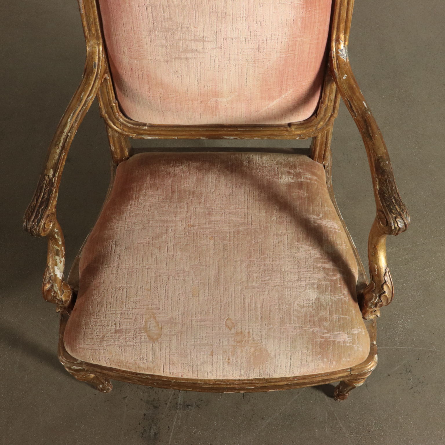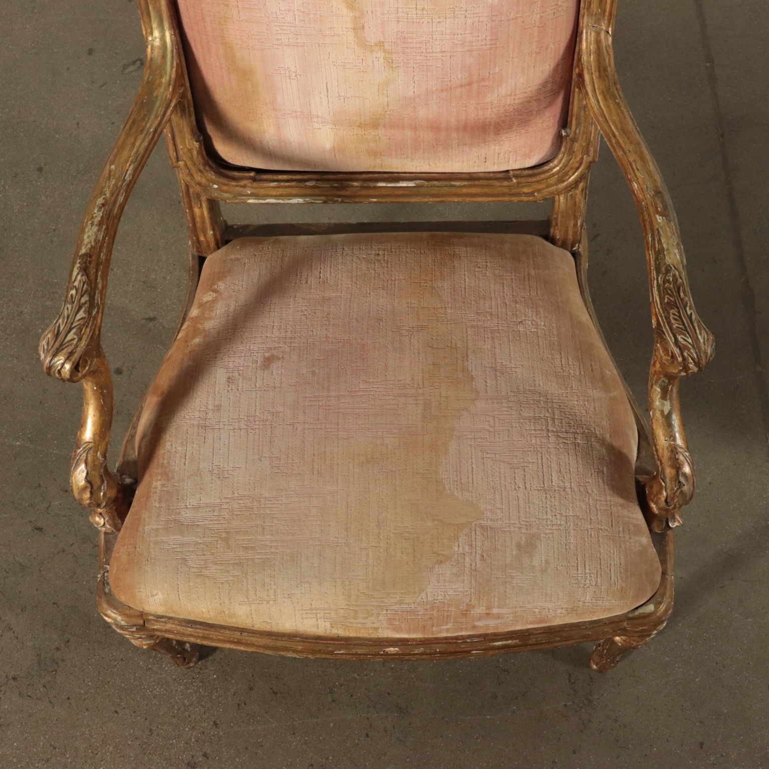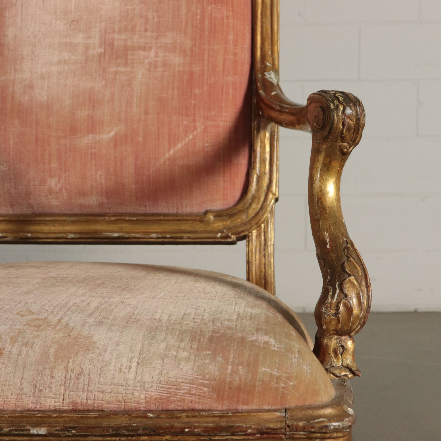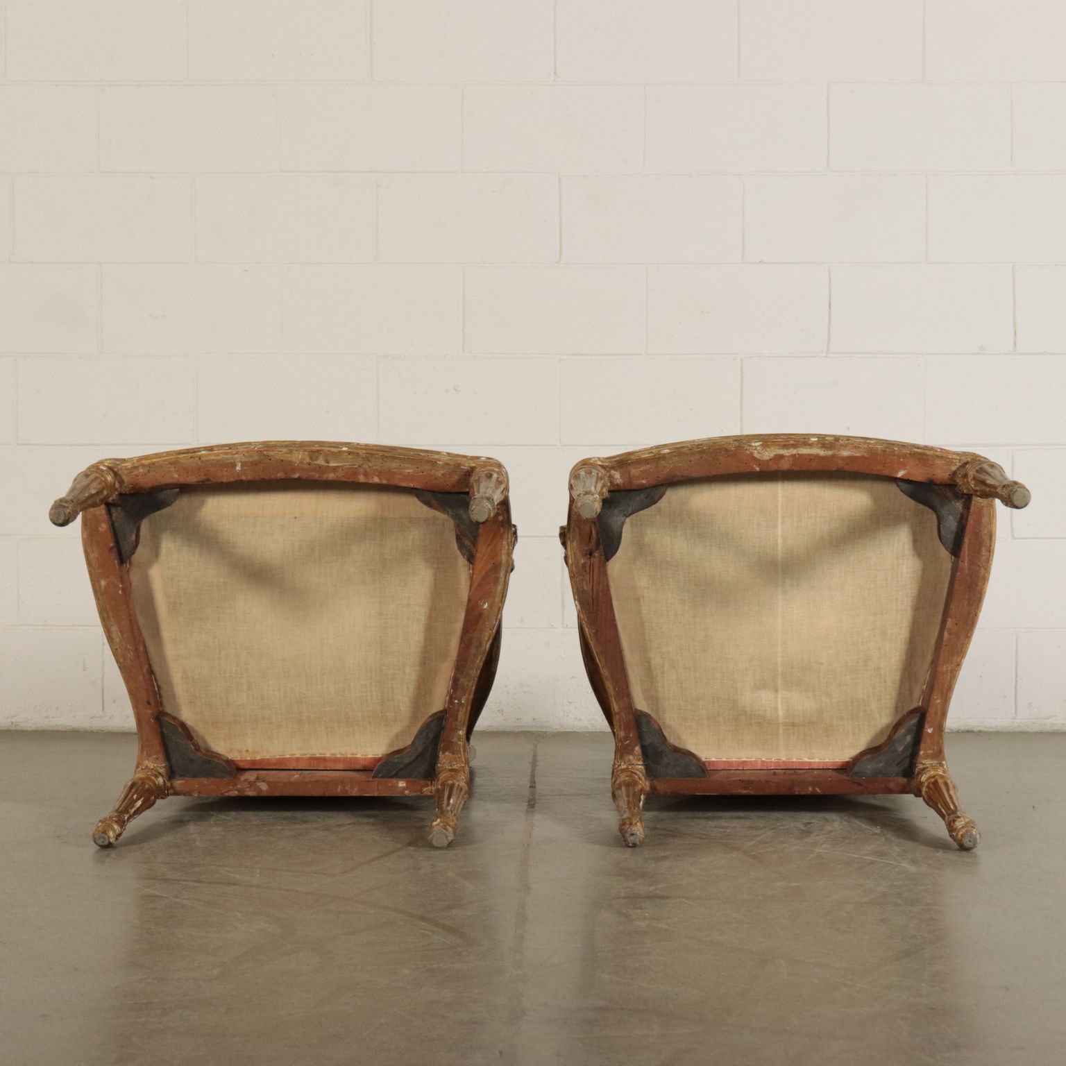 Elegantes paar sessel Louis XVI geraden von den beinen troncoconiche gerippt. Verfügen über armlehnen mit tag bewegt. Armlehnen und bewältigung geschnitzt. Sitz und rückenlehne gepolstert.