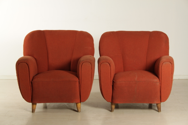 Paar Sessel, die Polsterung ist weich und die ursprünglichen Rosshaar. Die Polsterung ist aus Stoff, Beine einen Kegelstumpf auf den Augen.