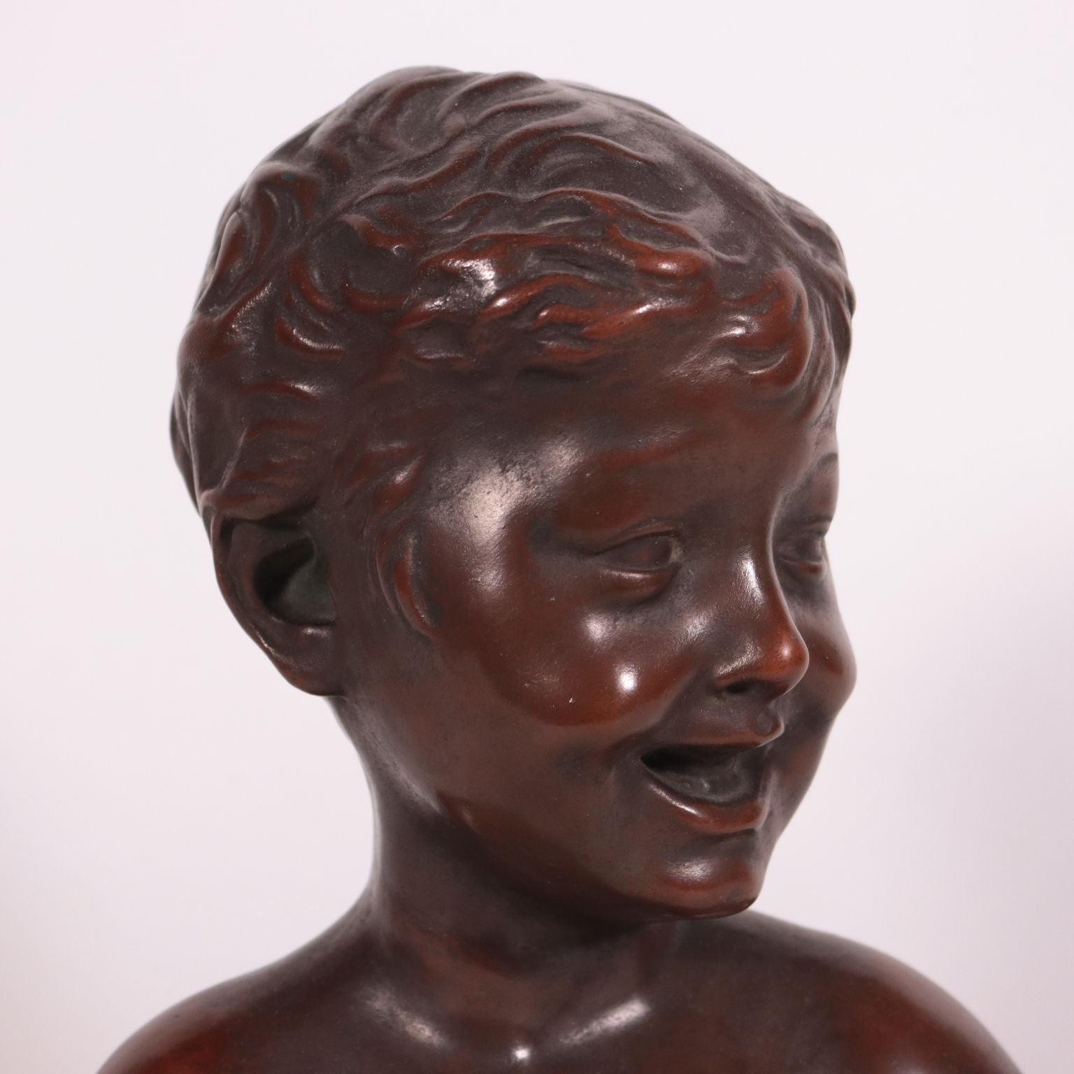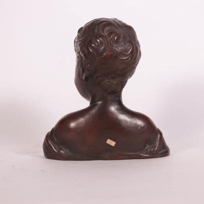 Büste eines Knaben in Terra di Signa patiniert, um Bronzeskulpturen zu imitieren. Gebrandmarkt unter Dini und Cellai Signa.