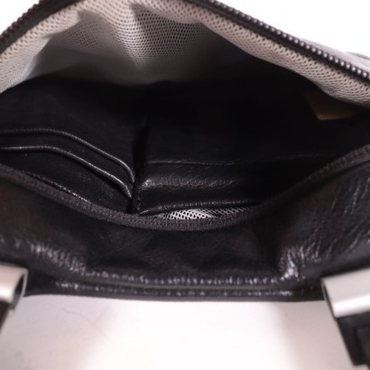 Mini-Tasche aus weichem schwarzem Leder mit verstellbarem und abnehmbarem Schultergurt. Innen mit diversen Taschen ausgestattet. Der Artikel hat einen kleinen Fleck auf der Haut.