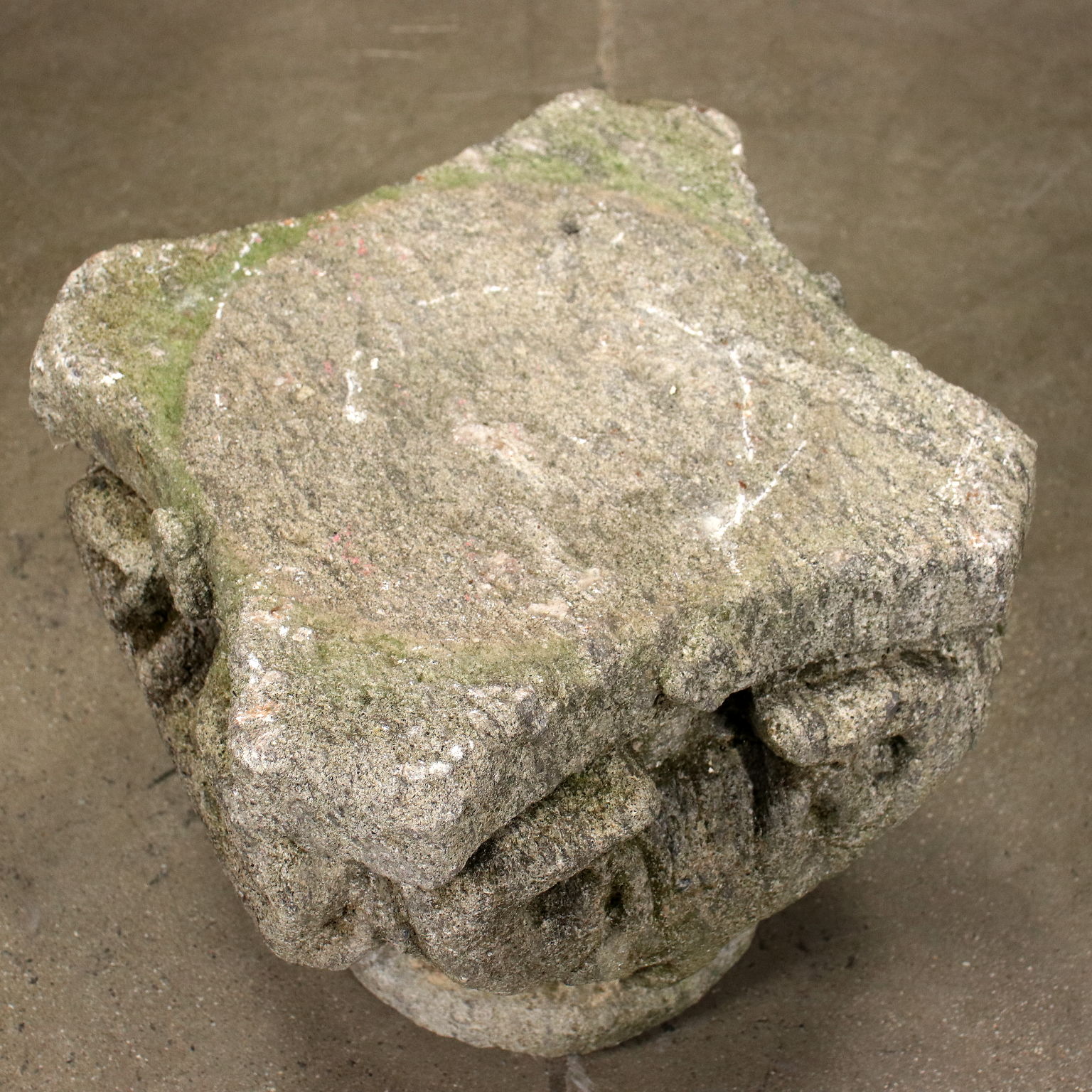 Granitkapitell mit Bucranium-Kopfschmuck und kannelierter Säule.
