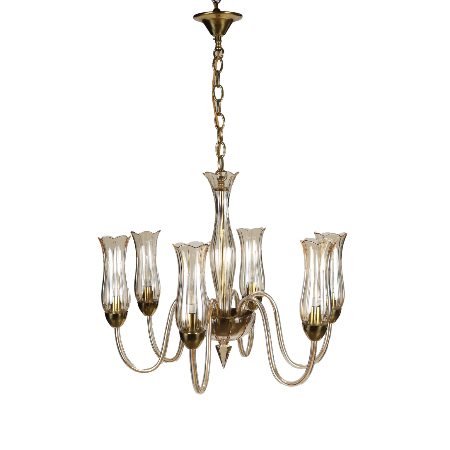 Kronleuchter aus mundgeblasenem Glas mit sechs Lichtern.