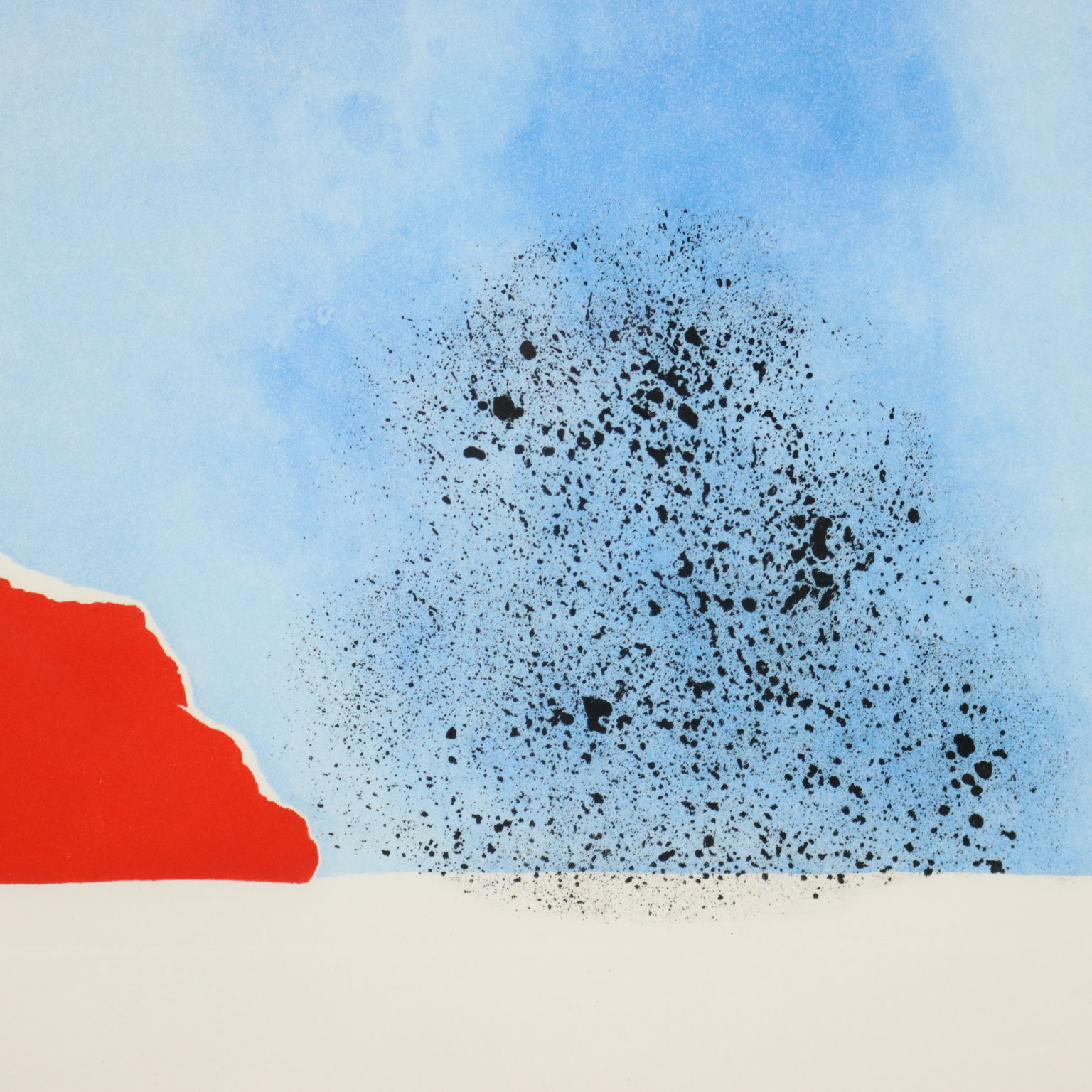 Farblithographie. Unten rechts signiert und datiert; Seriennummer 27/100 unten links. Giuseppe Santomaso, ein venezianischer Künstler, war neben Emilio Vedova der Vertreter des italienischen Abstraktionismus, sowohl des lyrischen als auch des expressionistischen. Nach einer anfänglichen künstlerischen Phase bis Anfang der 1940er Jahre im kubistischen Stil wandte er sich entschieden der surrealen oder gar abstrakten Malerei zu und intensivierte die grafische Produktion. Dazu gehören die hier vorgestellten Grafiken der zweiten und letzten Periode. Im Rahmen. Er war auch Grafikdesigner