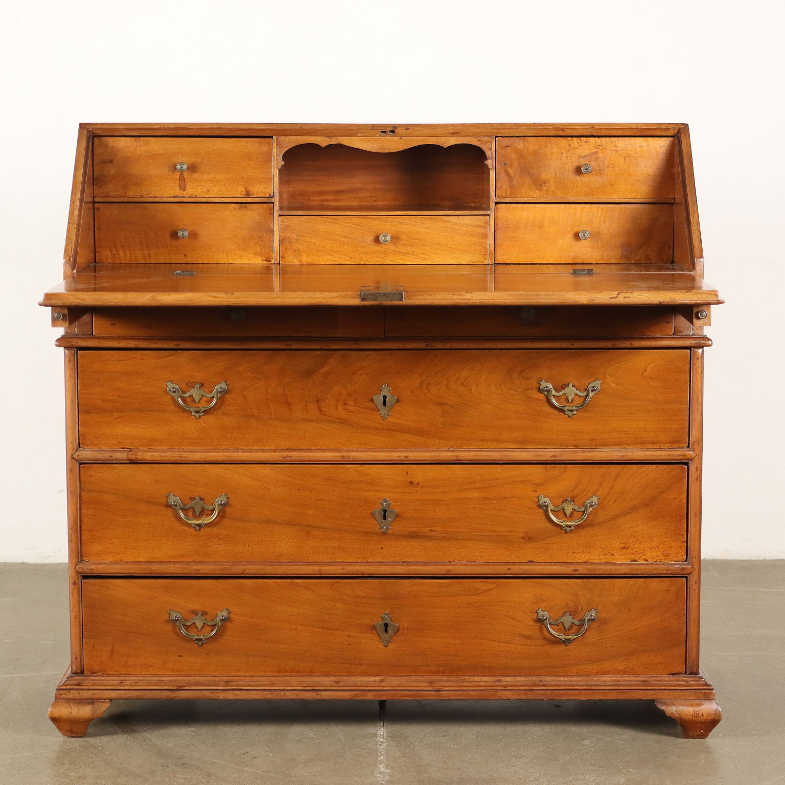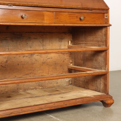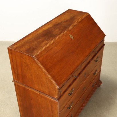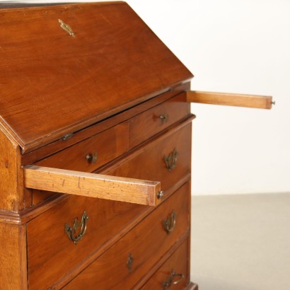 Genueser Klappe im englischen Stil aus Mahagoni, Genua, frühes 18. Jahrhundert. Front mit Klapptür, die den Schrank mit Schubladen verdeckt, 2 Schubladen und 5 Schubladen, davon 2 im Band. Innenausstattung aus Walnuss und Seekiefer. Restaurierungen und Ersetzungen.