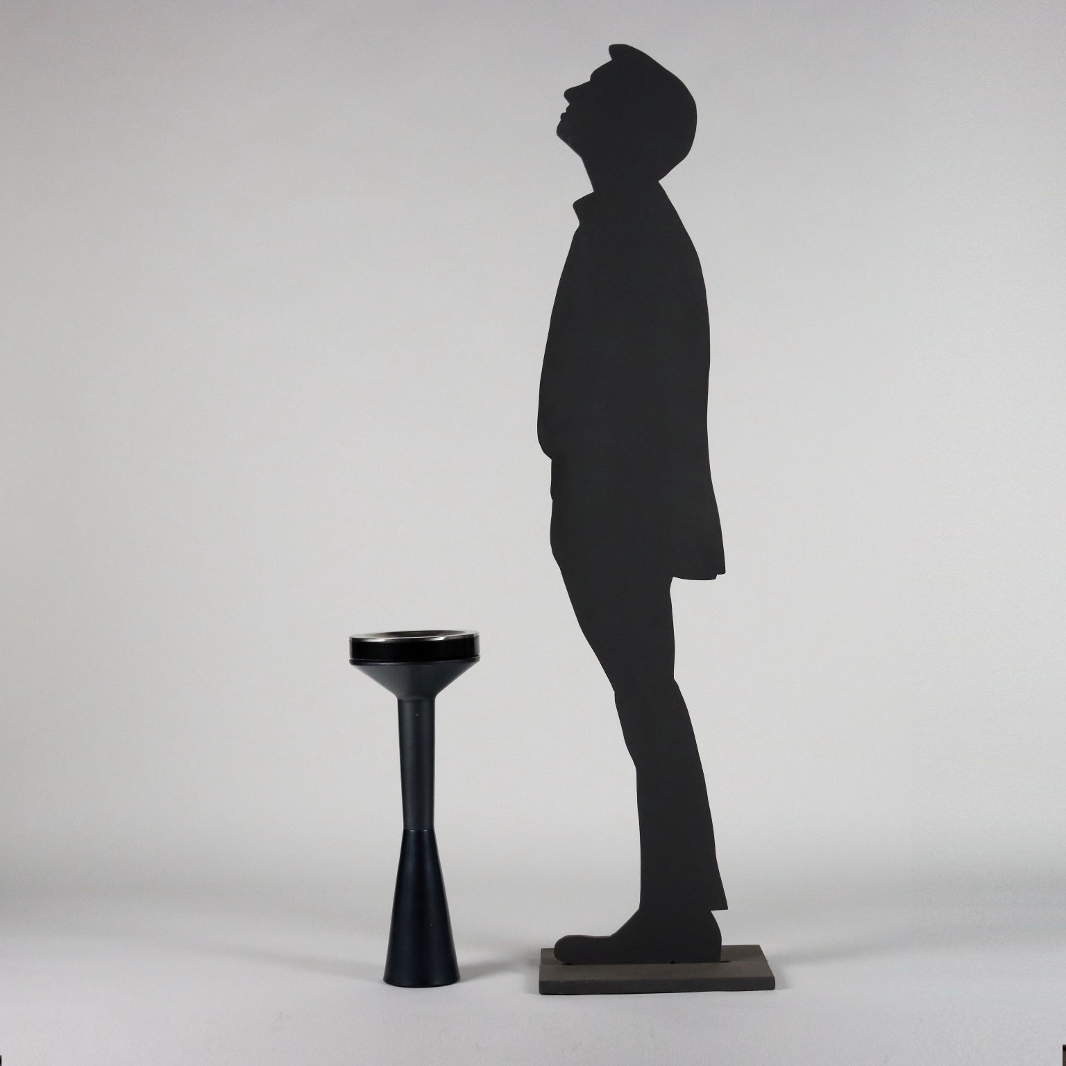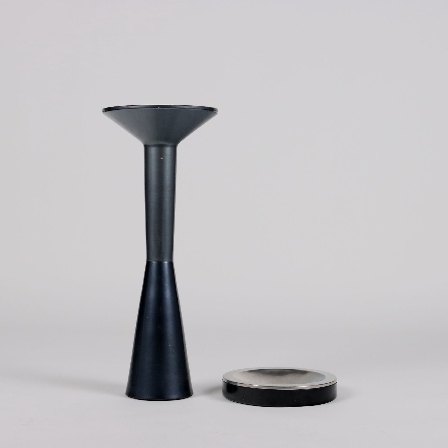 Besonderer Aschenbecher aus vernickeltem Aluminium.