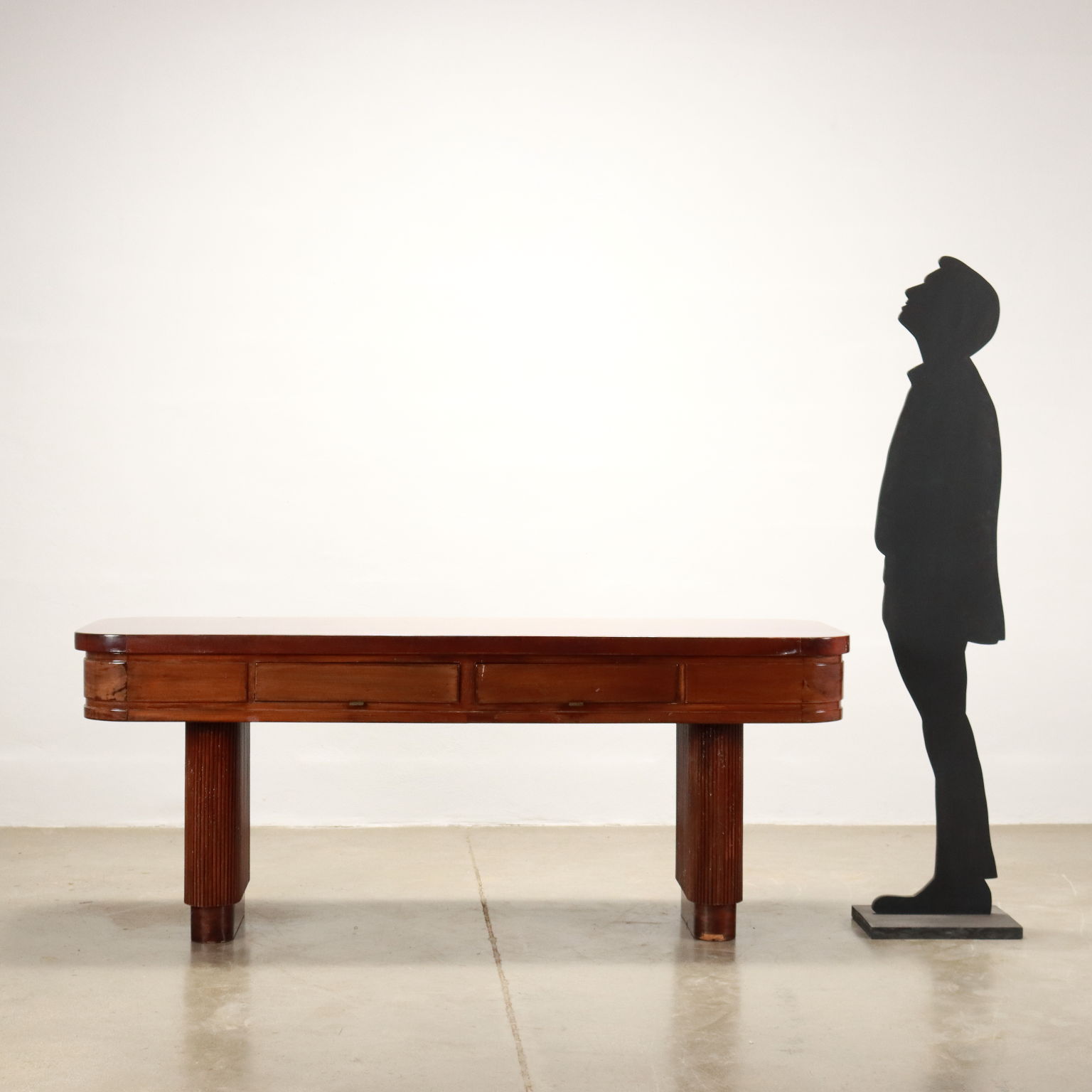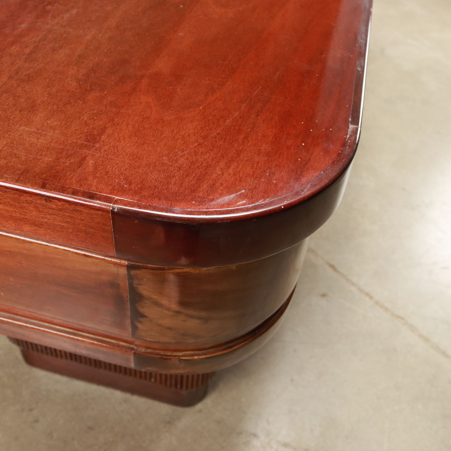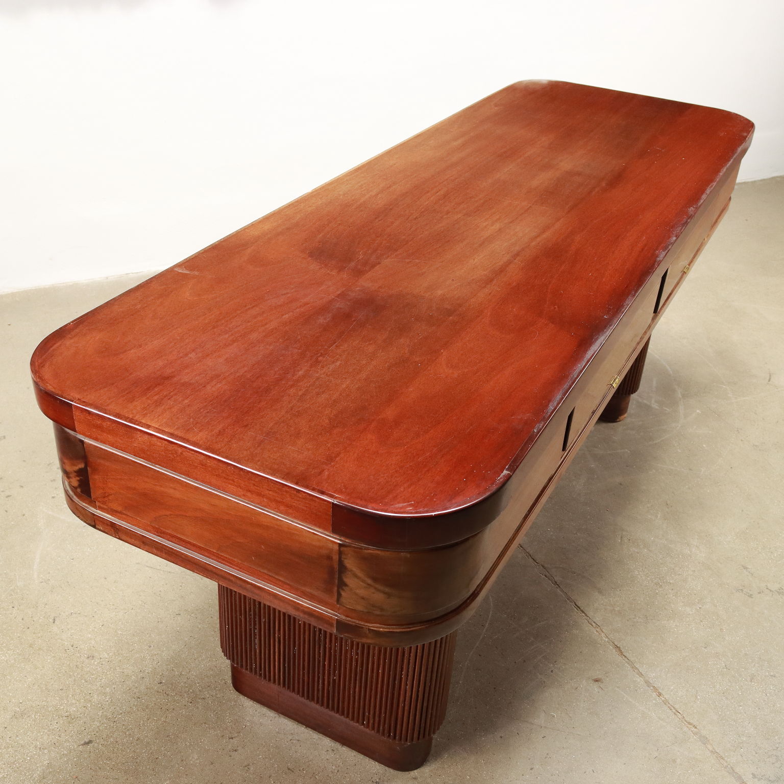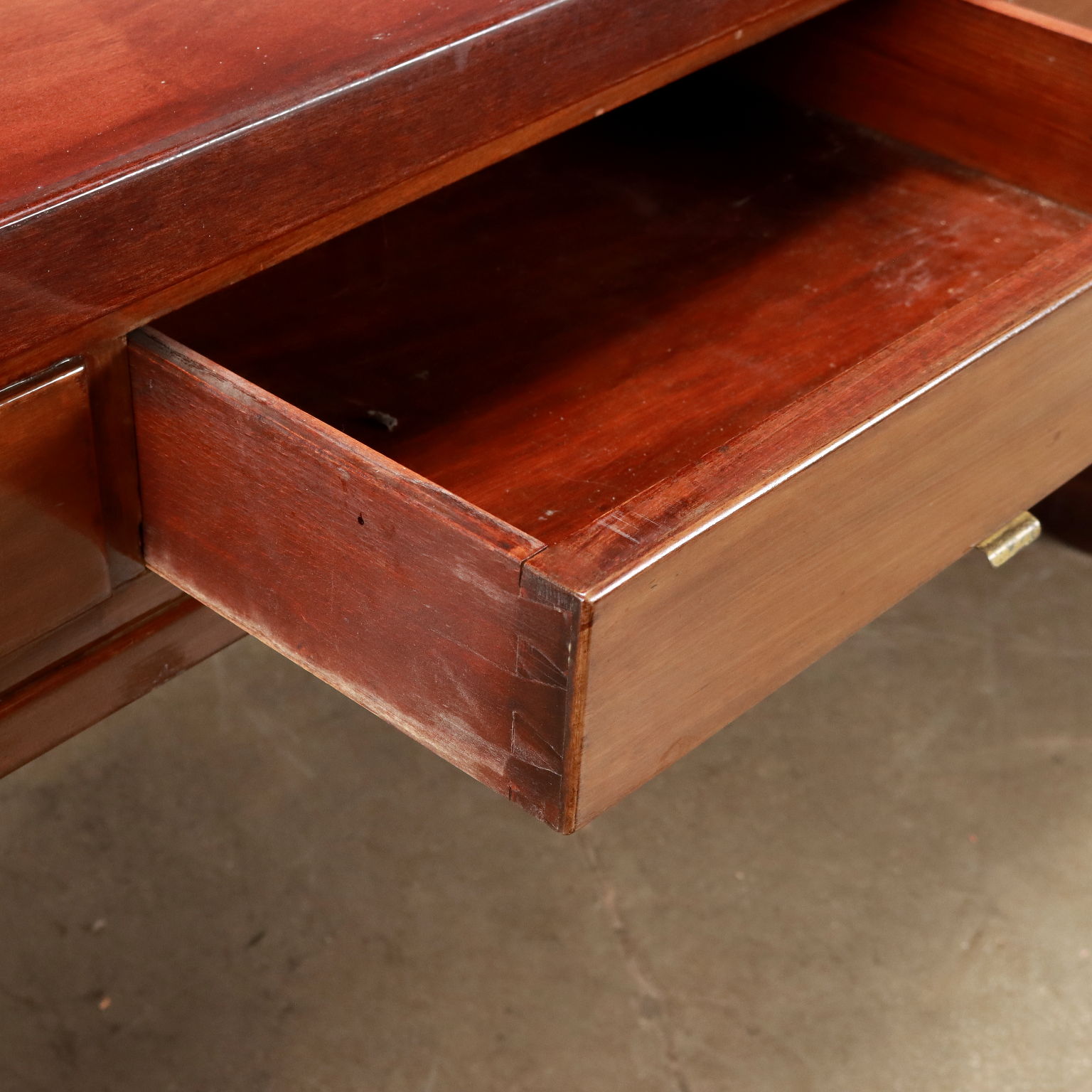 Bank mit Schublade unter der Tischplatte aus Mahagoni-furniertem Holz mit Polyester-Finish und Beinen mit "gravuren".