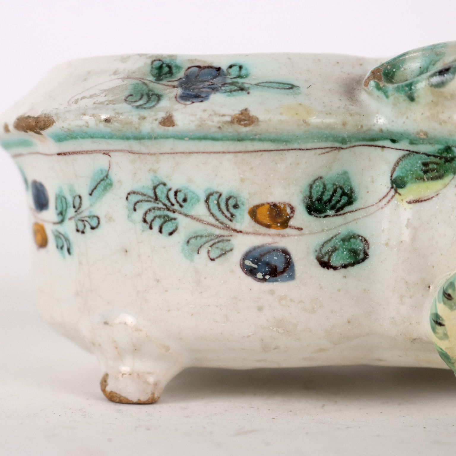 Majolika-Menge mit pflanzlichen Motivverzierungen und Traubengriff.