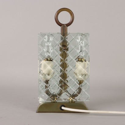 Vintage Tischlampe Messing Glas Italien der 40er-50er Jahre