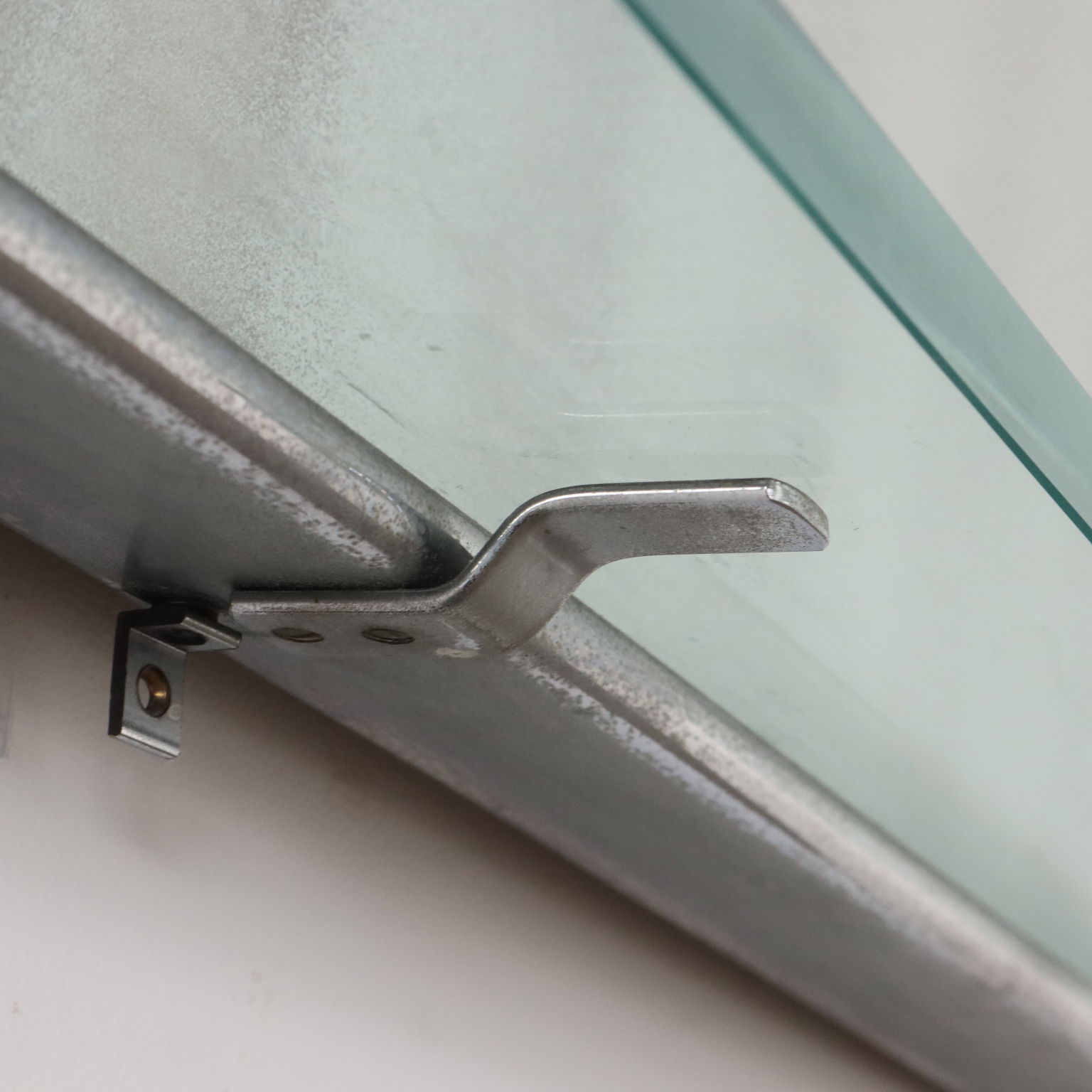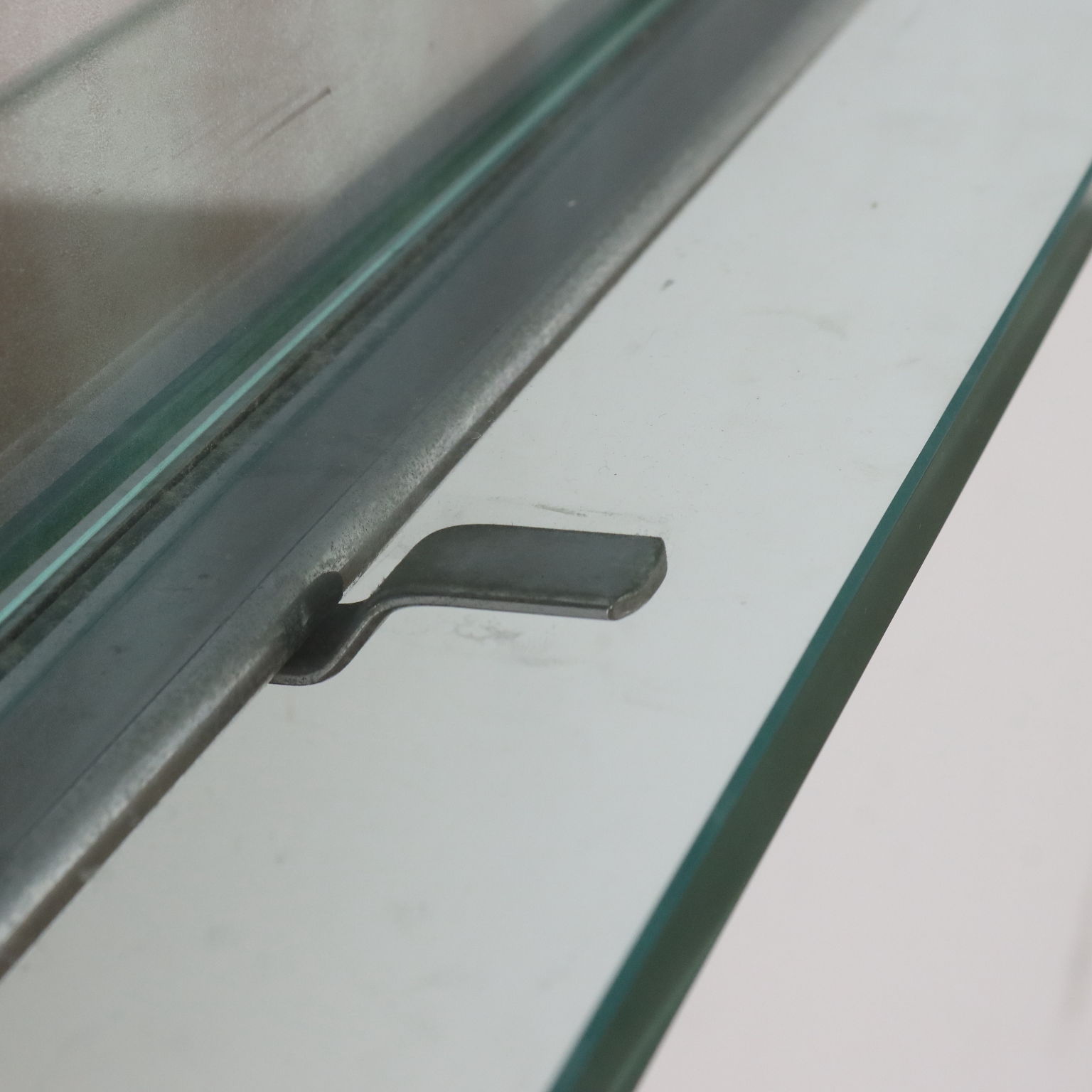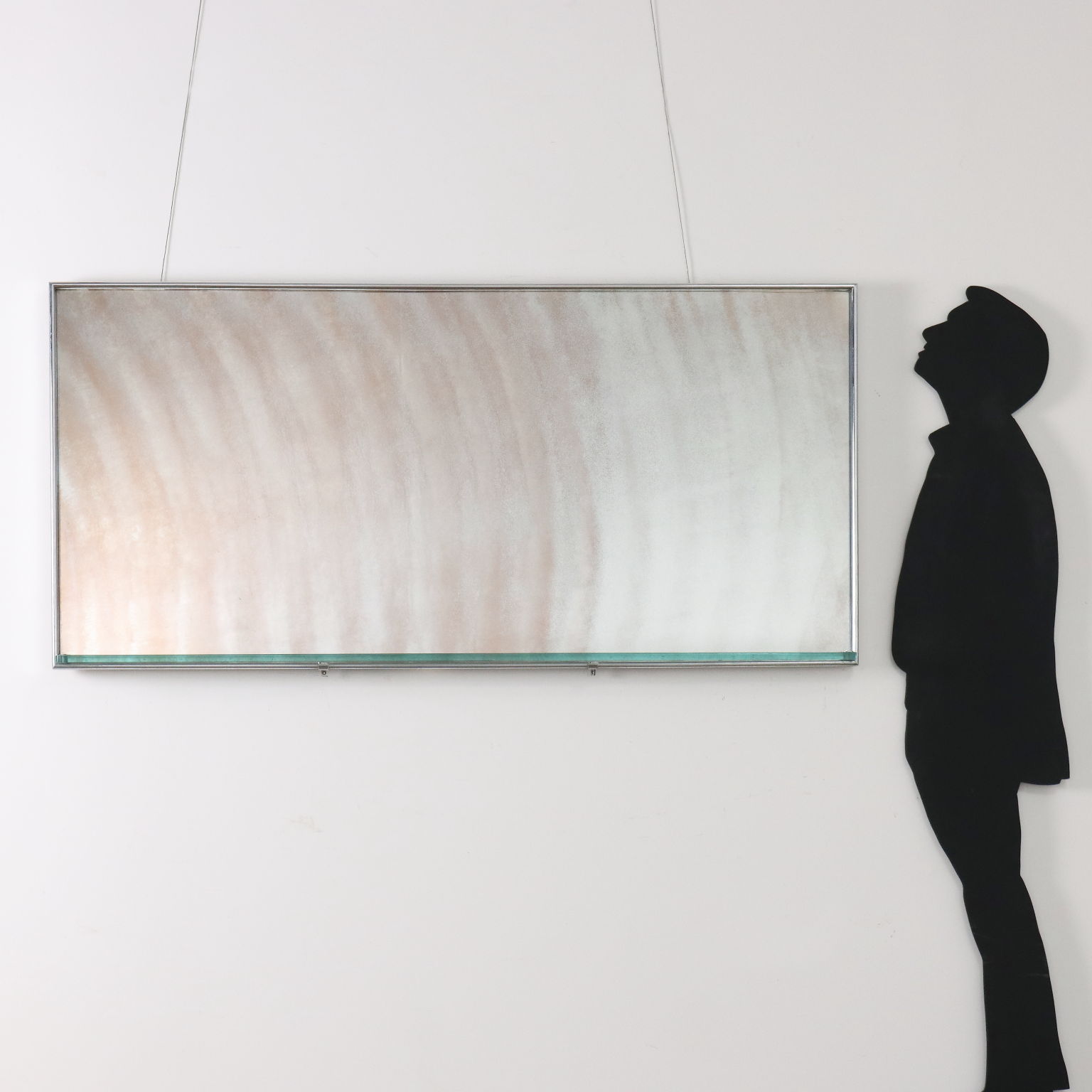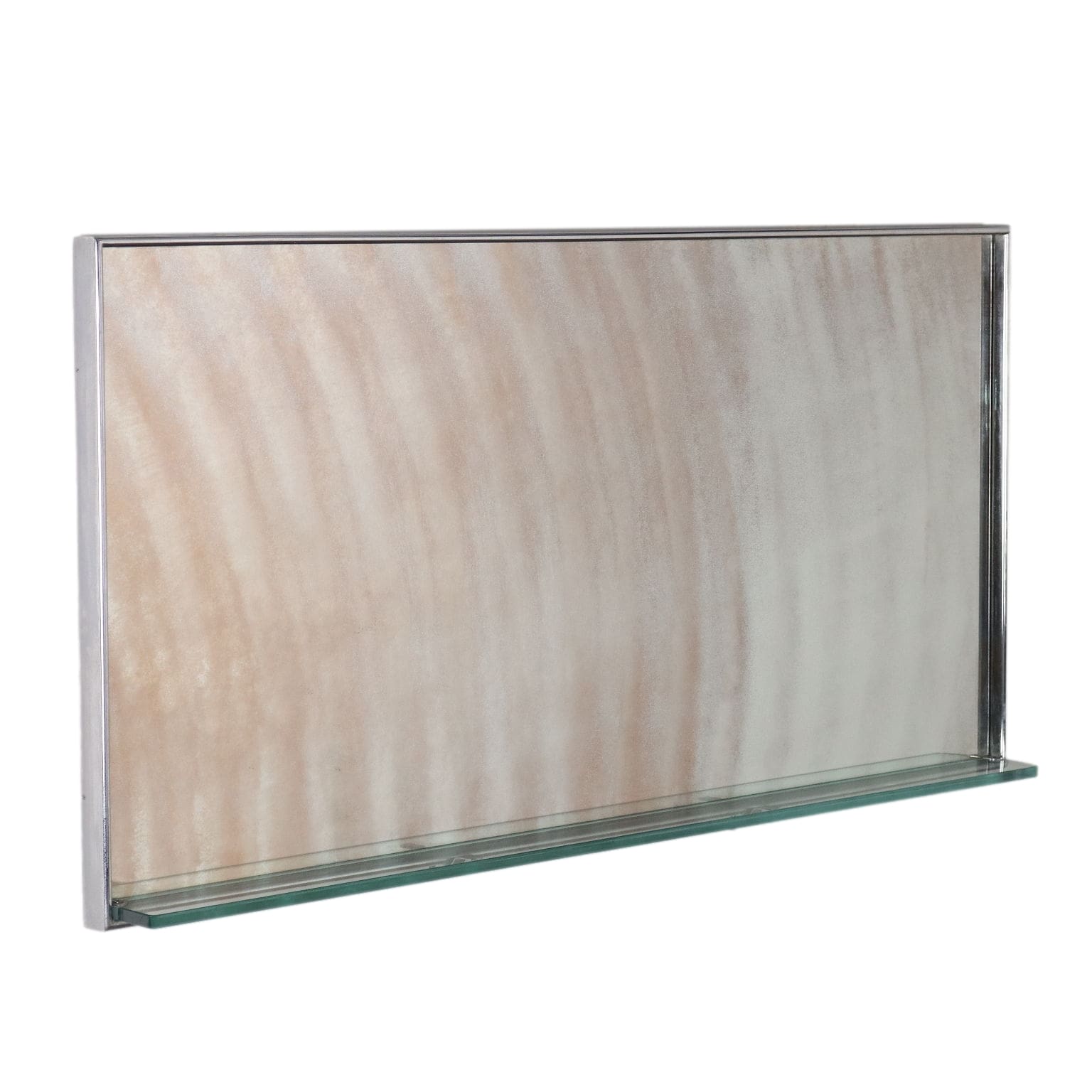 Wandspiegel, Rahmen aus verchromtem Aluminium, offenes Regal aus transparentem Glas, Spiegelglas.
