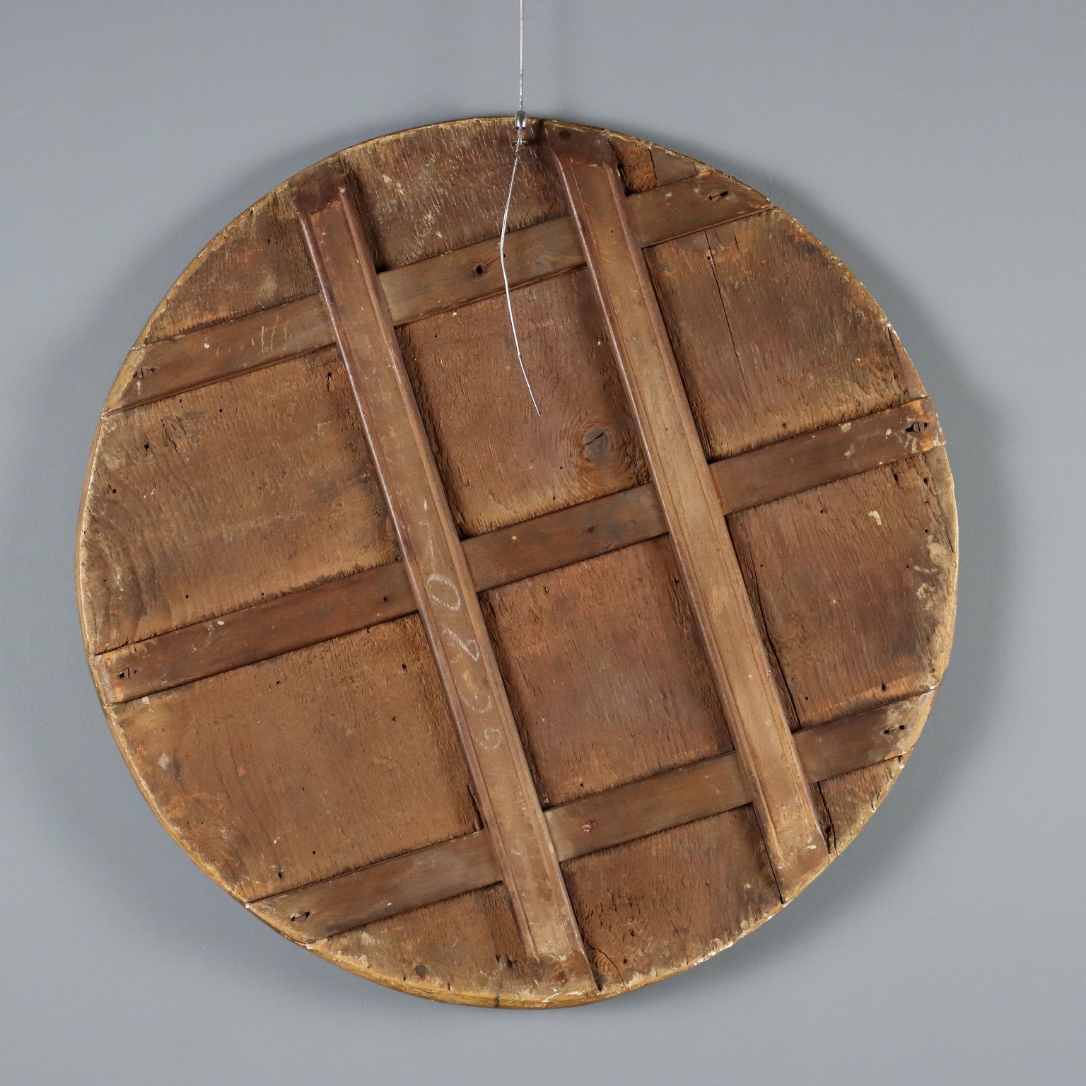 Öl auf Holz. Dem Werk liegt ein Gutachten von Professor Mauro Minardi bei, der das Gemälde anhand eines dokumentierten Vergleichs der Bildelemente dieses Werks mit anderen Werken desselben Künstlers dem Werk von Bartolomeo Neroni, genannt Riccio, zuschreibt, einem im 16. Jahrhundert in Siena tätigen Künstler. Das Gemälde zeigt ein in der sienesischen Kunstszene des 16. Jahrhunderts weit verbreitetes Thema: eine Madonna mit Kind und Heiligen. In diesem Tondo ist Maria als Halbfigur dargestellt, wie sie das Jesuskind hält, das vor ihr auf einer Unterlage steht: Die Hände von Mutter und Kind sind in einer Geste der Zärtlichkeit ineinander verschränkt. Neben ihnen, im Hintergrund, stehen zwei Heiligenfiguren, die zu den in Siena am meisten verehrten gehören: rechts die Heilige Katharina, erkennbar an ihrer schwarzen Mönchstracht mit weißem Schleier und Haube, und sie hält die traditionelle Lilie, ein Symbol der Reinheit; Links ist ein weniger bekannter Heiliger abgebildet, der heilige Ansanus, ein junger Ritter, der im 3. Jahrhundert in Siena lebte, der damaligen römischen Kolonie, wo er das Christentum predigte und den Märtyrertod starb. Der junge Heilige ist mit einer Fahnenstange in der einen und einem kugelförmigen Gegenstand in der anderen Hand dargestellt, der seiner Ikonographie zufolge ein Herz darstellen soll. Das Werk fällt somit in den im 16. Jahrhundert weit verbreiteten Stil der Andachtsmalerei, dem Riccio und seine Werkstatt beträchtliche Mühe widmeten, da eine große Zahl ähnlicher Beispiele erhalten ist und ihm zugeschrieben wird, was zum Teil auf die glückliche Dokumentation einiger von ihnen zurückzuführen ist. Die Bilder des Gemäldes sind in einen vergoldeten Rahmen eingefasst, der in dieselbe Tafel geprägt ist. Die Rückseite der Tafel ist mit Parkett verstärkt. Es gibt einige Farbverluste.
