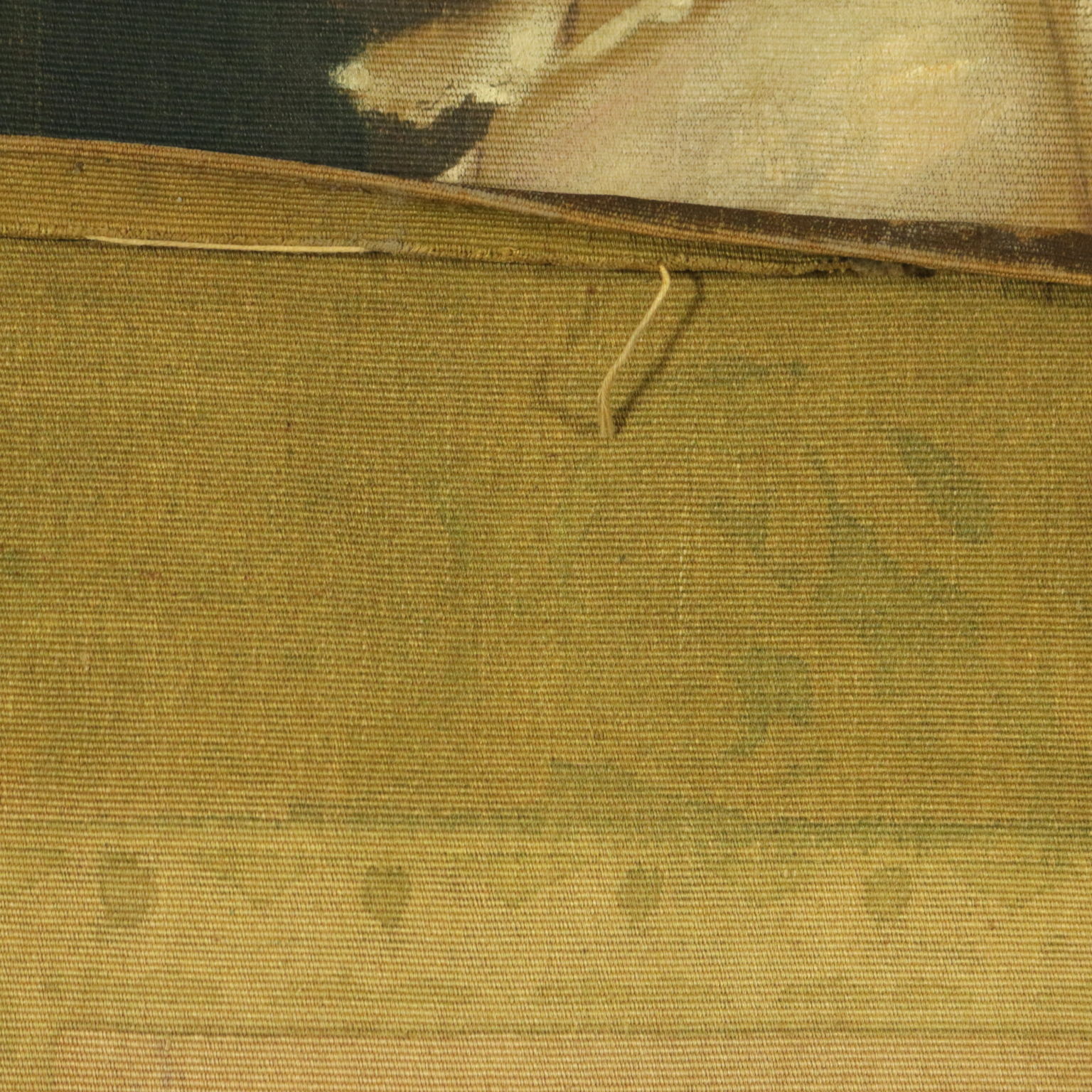 Großer print auf stoff, mit korrekturen von hand gemacht. Rechts unten signatur schlecht entzifferbar und datum.