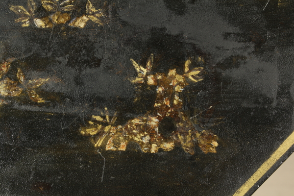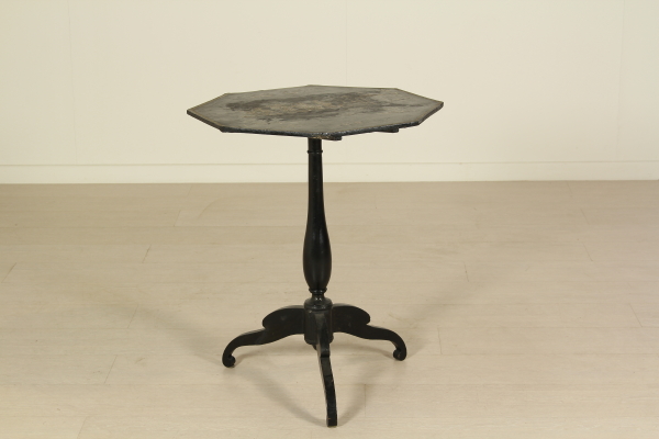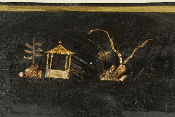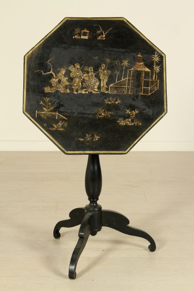 Chinoiserie Couchtisch. Unterstützt durch gedrehte Baluster Fuß endenden achteckigen Plan an den Flügel bewegt hat. Ebonised vollständig in ein Chinoiserie Relief dekoriert.
