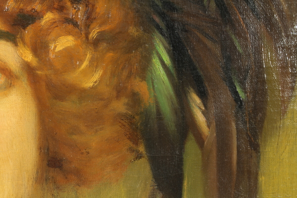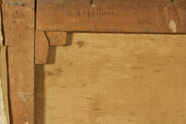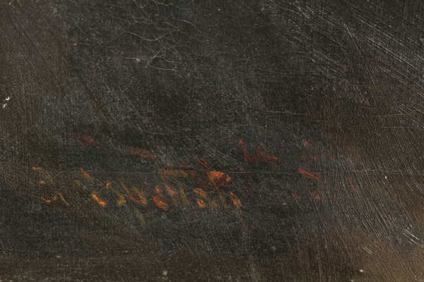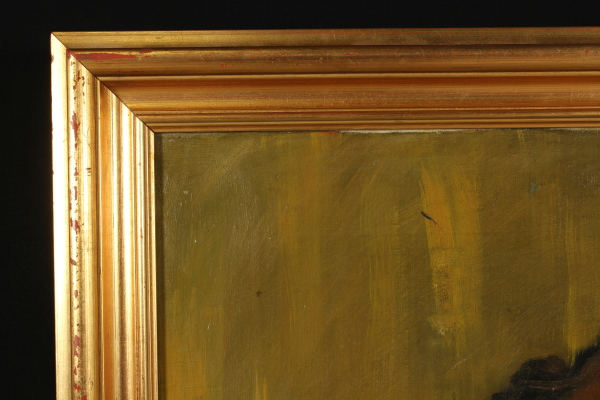 Öl auf Leinwand. Signatur in der linken unteren Ecke und hinten auf dem Rahmen. Anzeichen für eine Restauration. Dargestellt in einem modernen Rahmen ohne Glas.