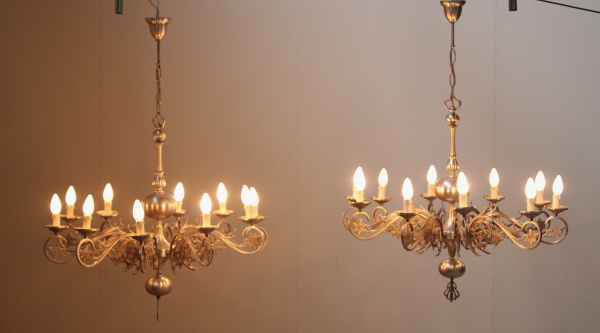 Kronleuchtern und zehn metallarme gearbeitet und aufgenommen.