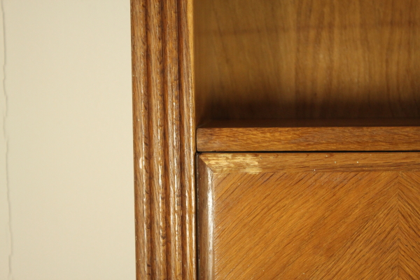 Bibliothek in eine Nische mit groben Schultern eingefügt werden soll; Eiche Holz furniert. Guter Zustand, zeigt wenig Gebrauchsspuren.