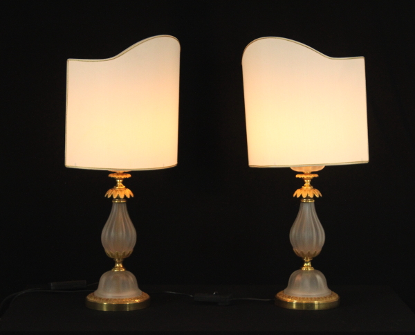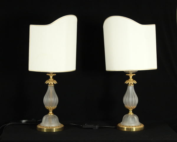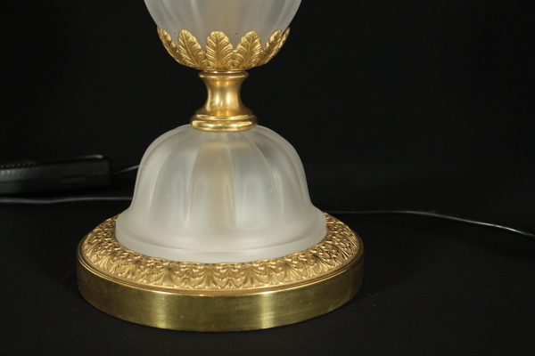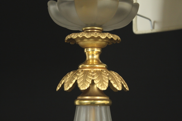 Baluster aus Messing und Glas arbeitete mit Lampenschirm.