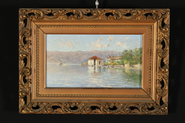 Öl auf Leinwand. Signierte und engagierten in der unteren rechten Ecke. Dargestellt in Stil, Rahmen ohne Glas.
