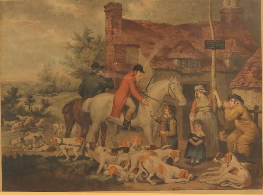 Print, Schabkunst, handbemalt. Präsentiert im Rahmen des frühen ' 900.