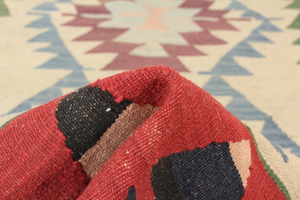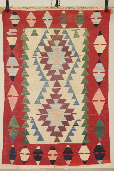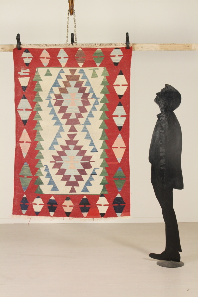Türkischer Kelim-Teppich, Wolle, Endknoten. Von hand gefertigt. In gutem Zustand.