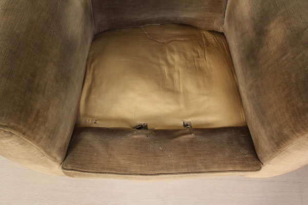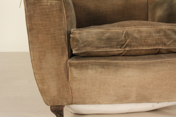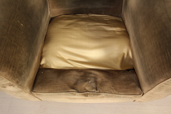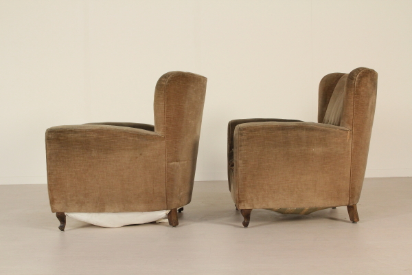 Paar Sessel; weicher Polsterung abgedeckt in samt. Gutem Zustand, mit einigen Gebrauchsspuren.