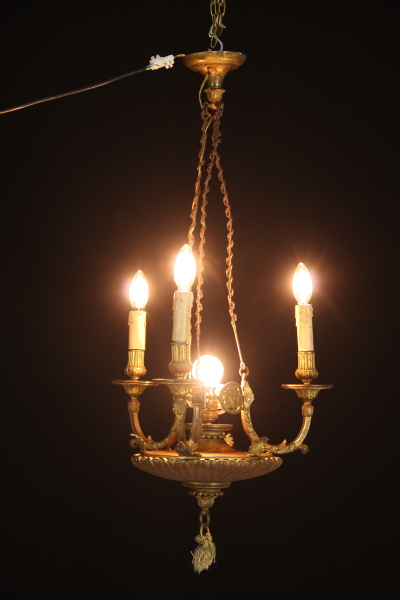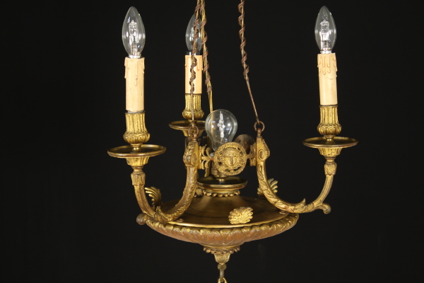 In drei-Arm vergoldete Bronze und vier Lichter.