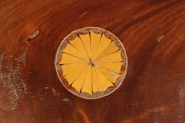 Drehbare Bücherschrank, Mahagoni Furnier Beaux-Arts. Gewinde-Stock mit verschiedenen Woods, inlay auf dem Boden mit den Fans.