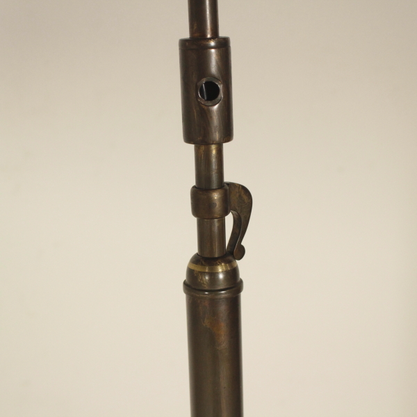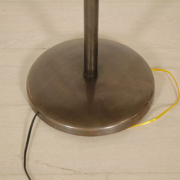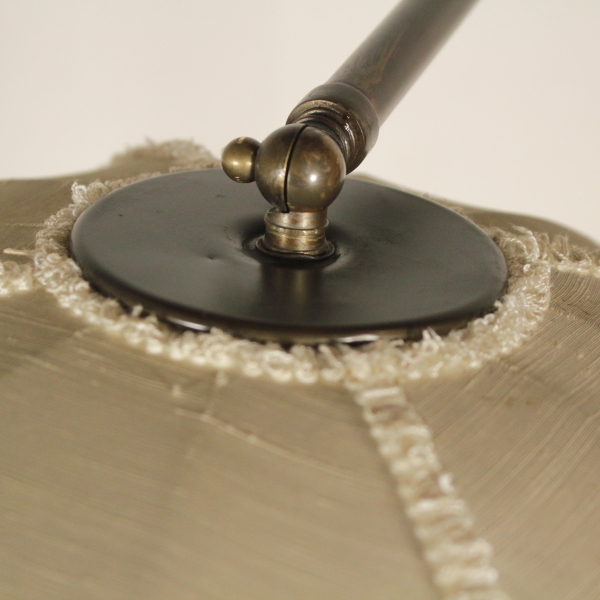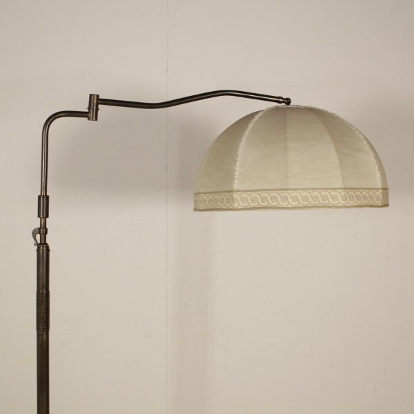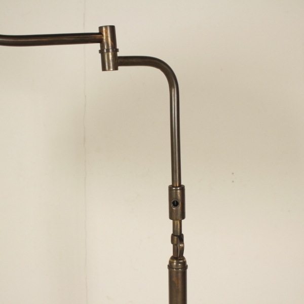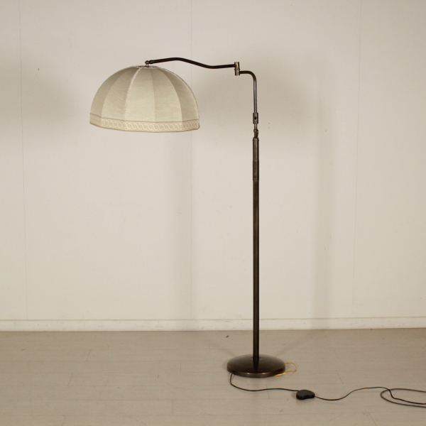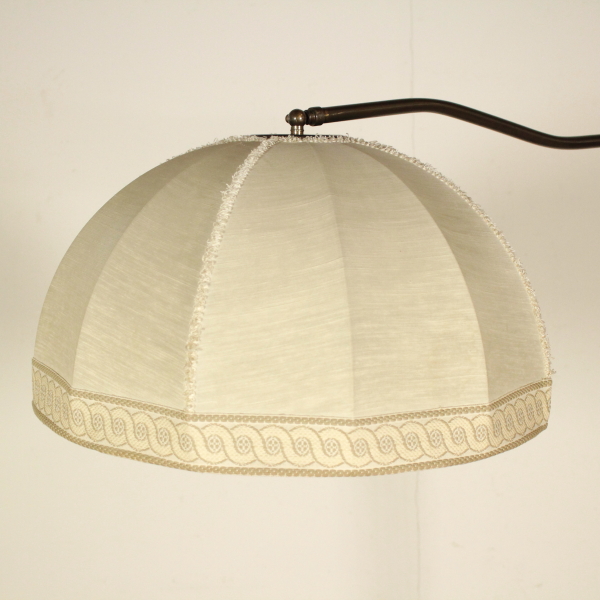 Floor lamp with stem and base in brass. Adjustable in height in the side to side motion. Lampshade in fabric.