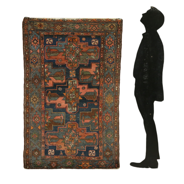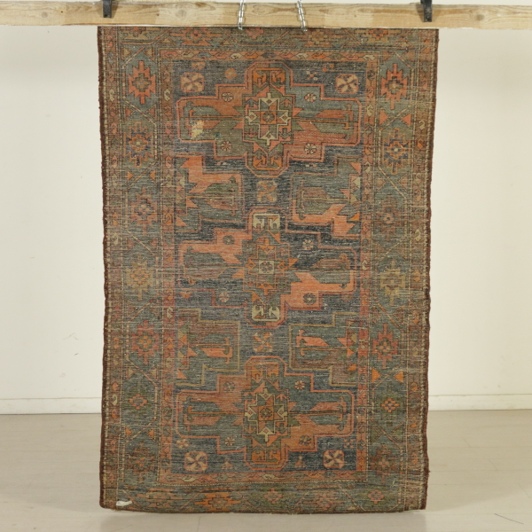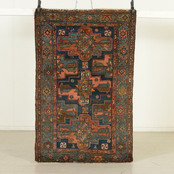 Rug Malayer (Iran) in cotton and wool. Node in the middle, the manufacture manual.