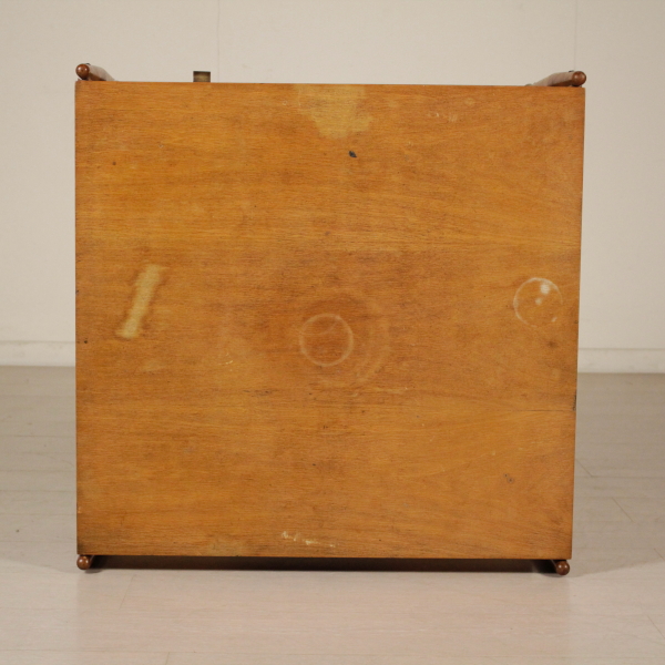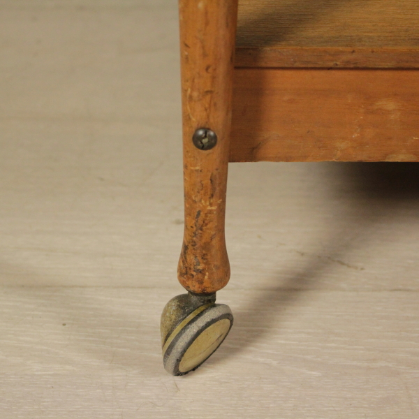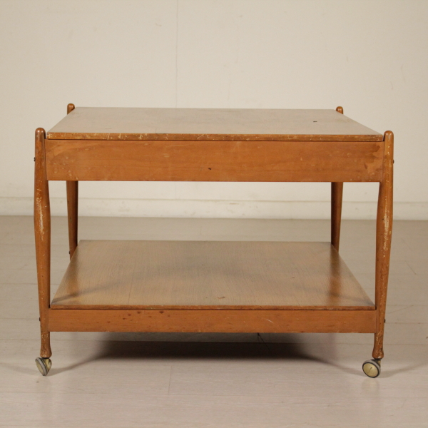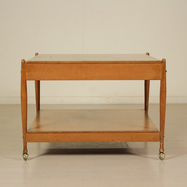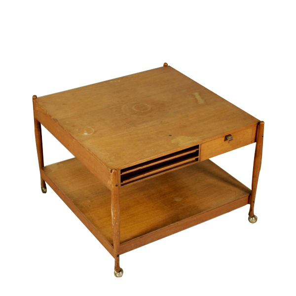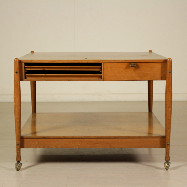 Table 60 from the center with drawers and pull-out tops; top and beech legs, all stained in light walnut.