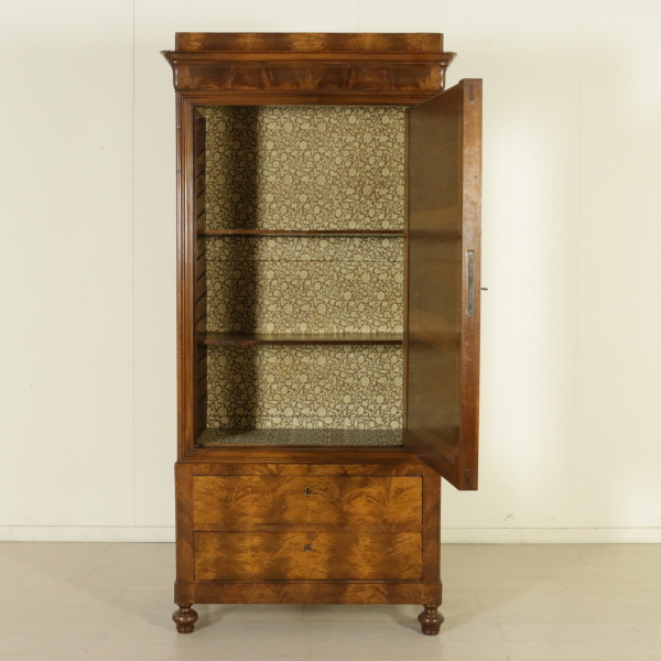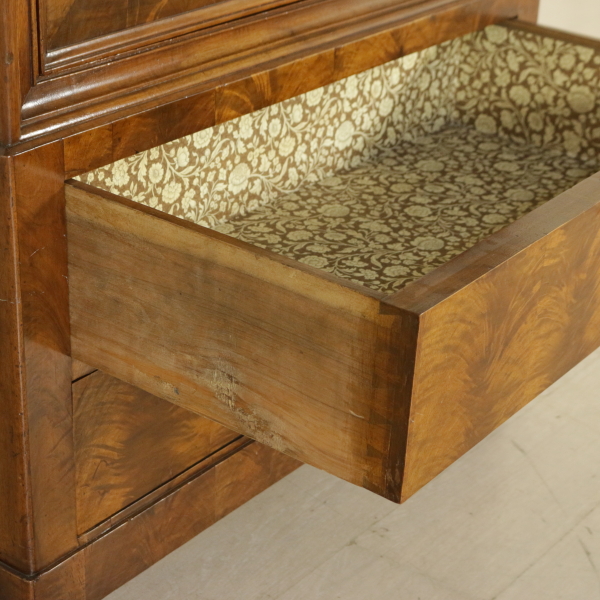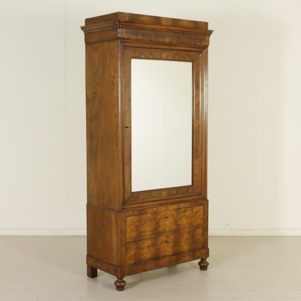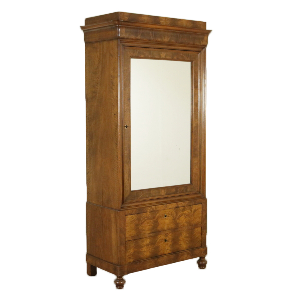 Has a couple of drawers and door with mirror enclosed in a frame. Hat with a band and the throat of the tulip. Front lastronato feather of walnut.