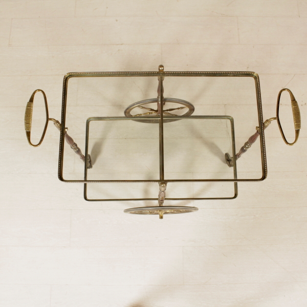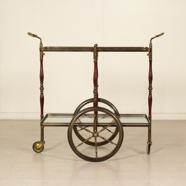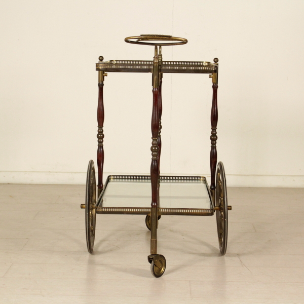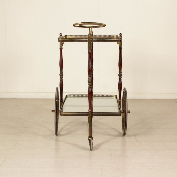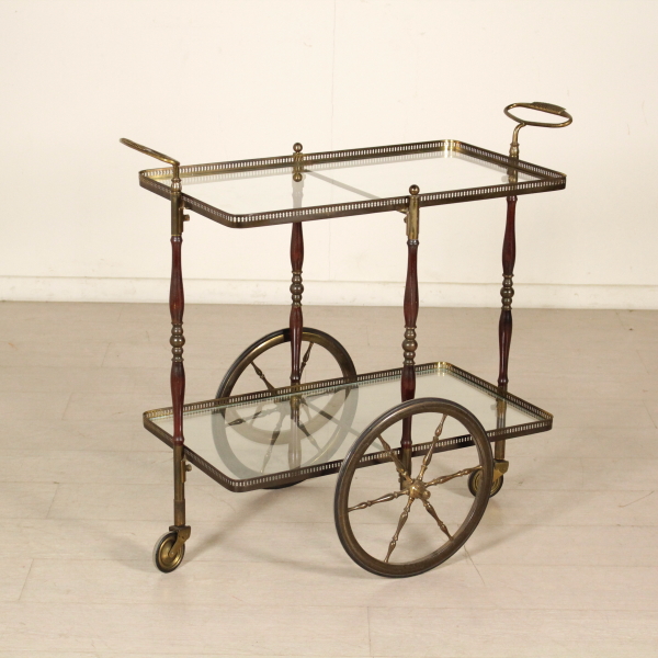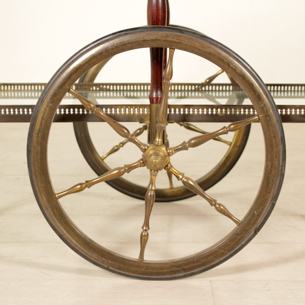 Service Cart, wood, brass, glass. Manufactured in Italy, 1950s-1960s.
