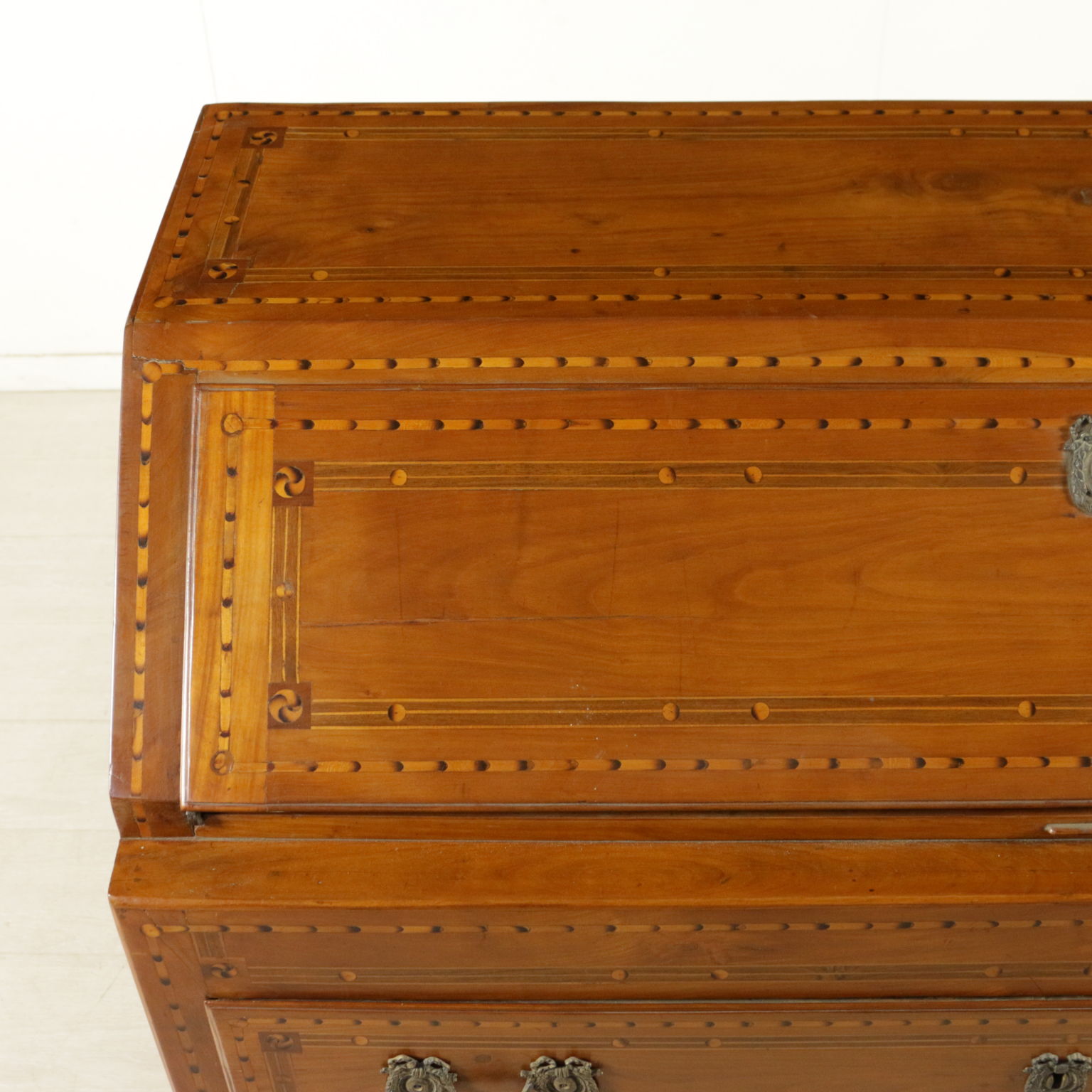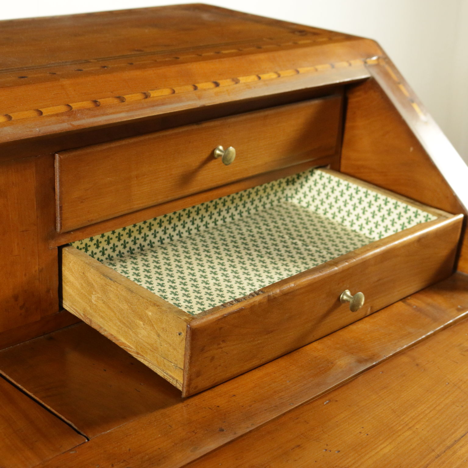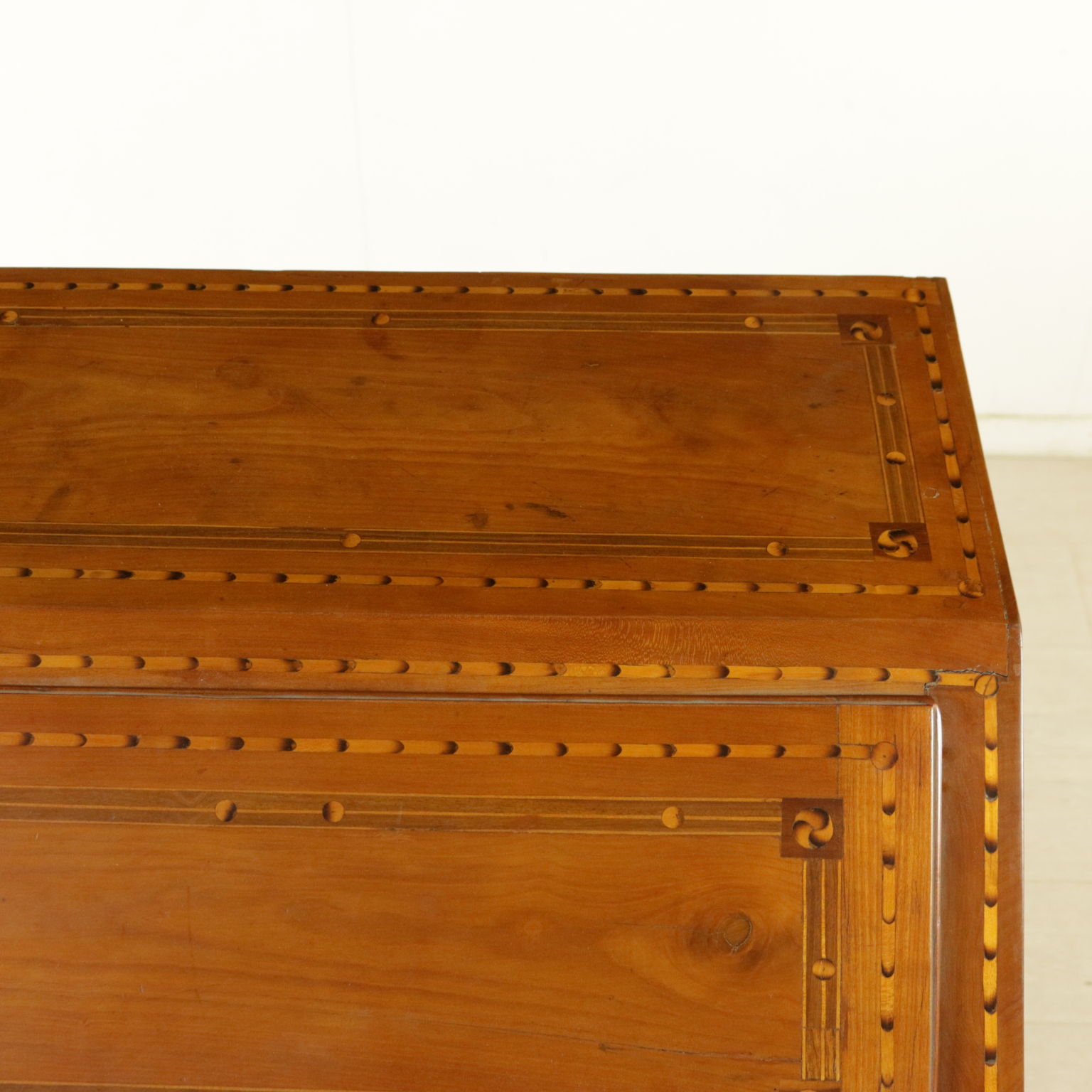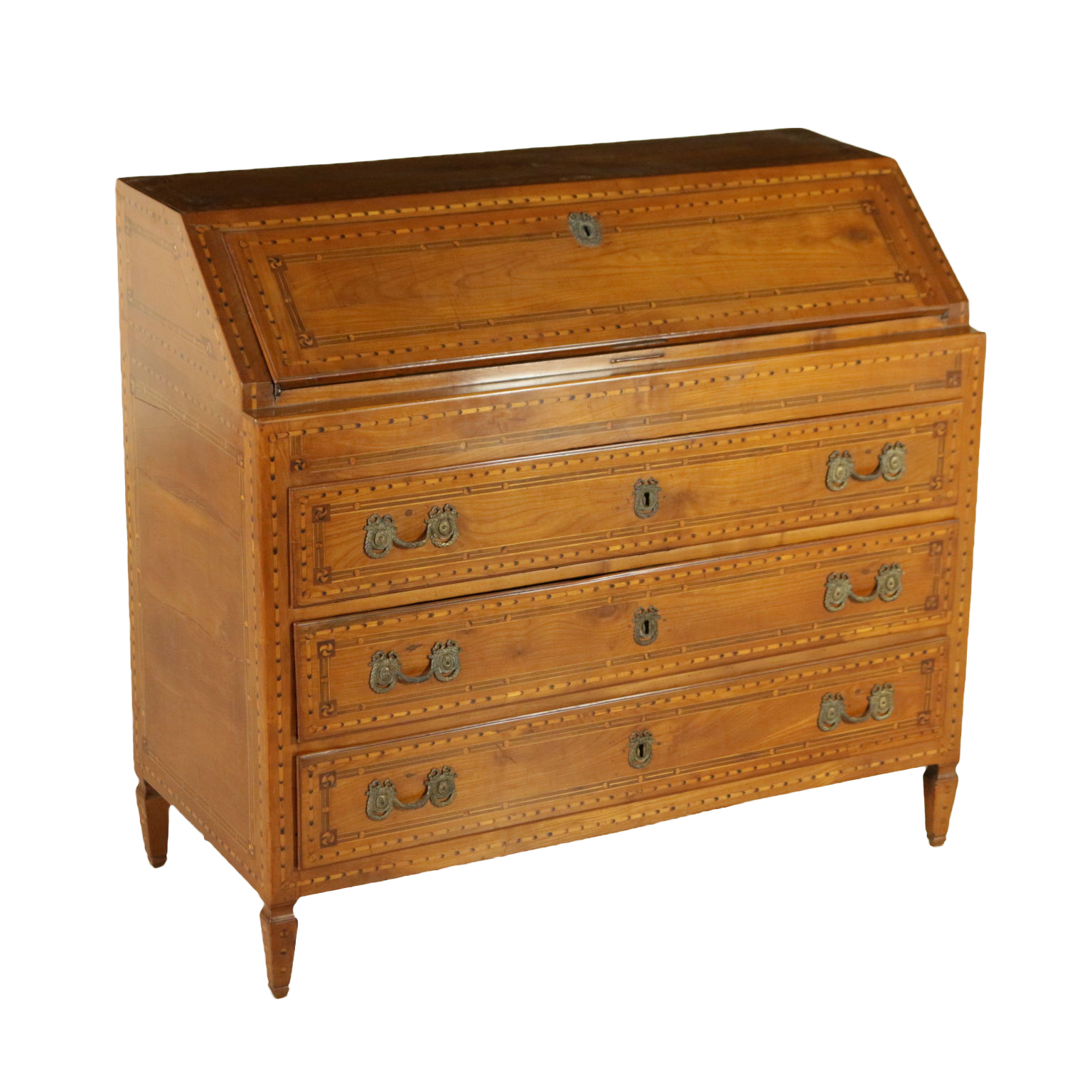 Elegant limelight with three drawers straight from the foot is composed of. Features tilting door, four small drawers interior with hinged and sliding top secret. Intarsia a toppo in maple and walnut.