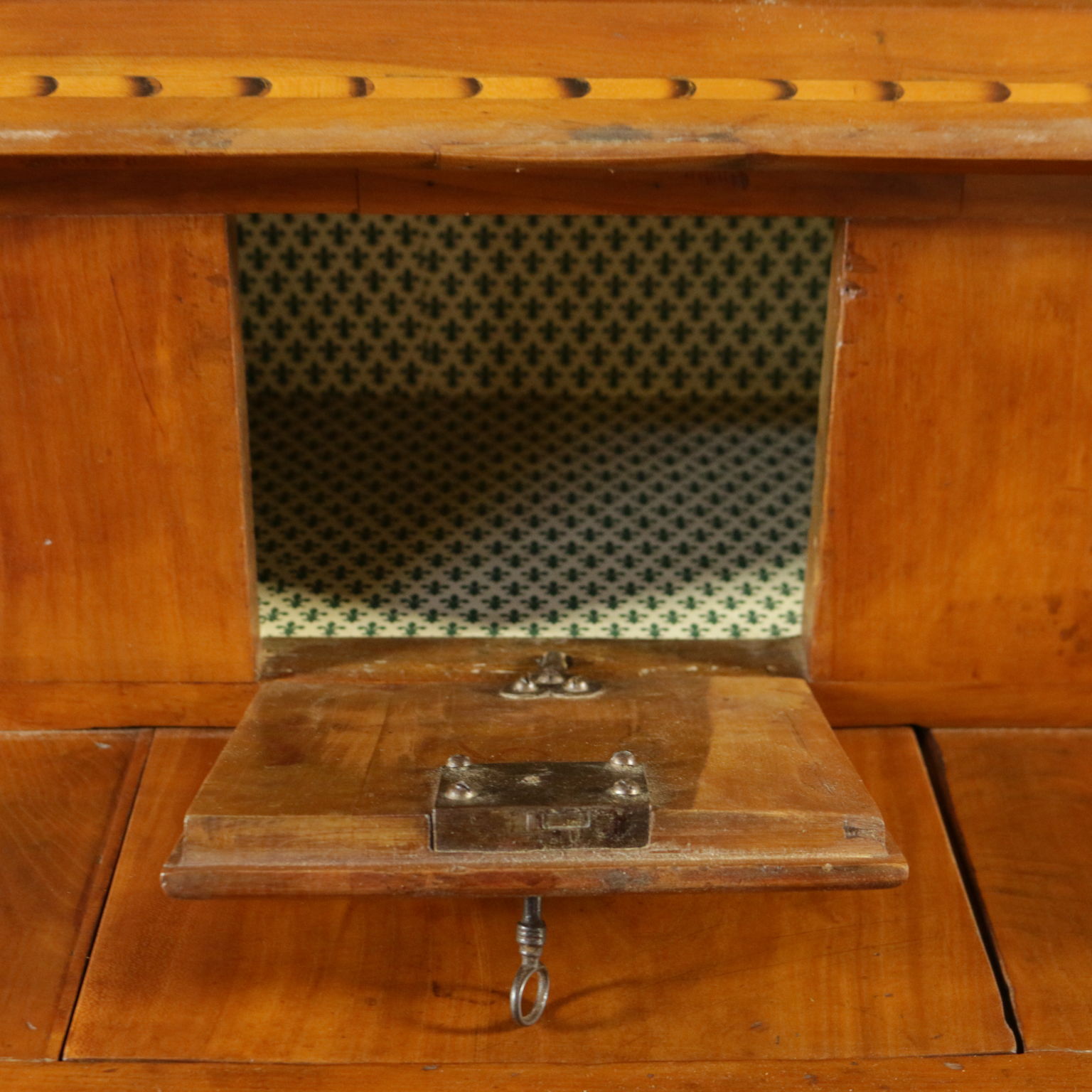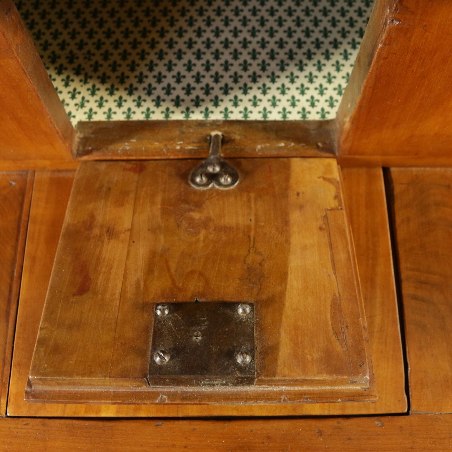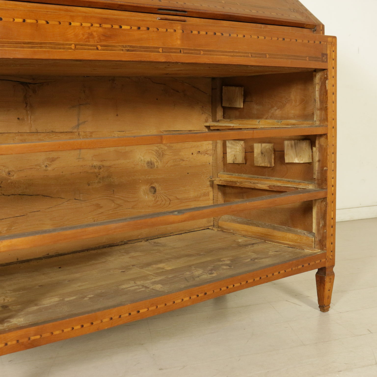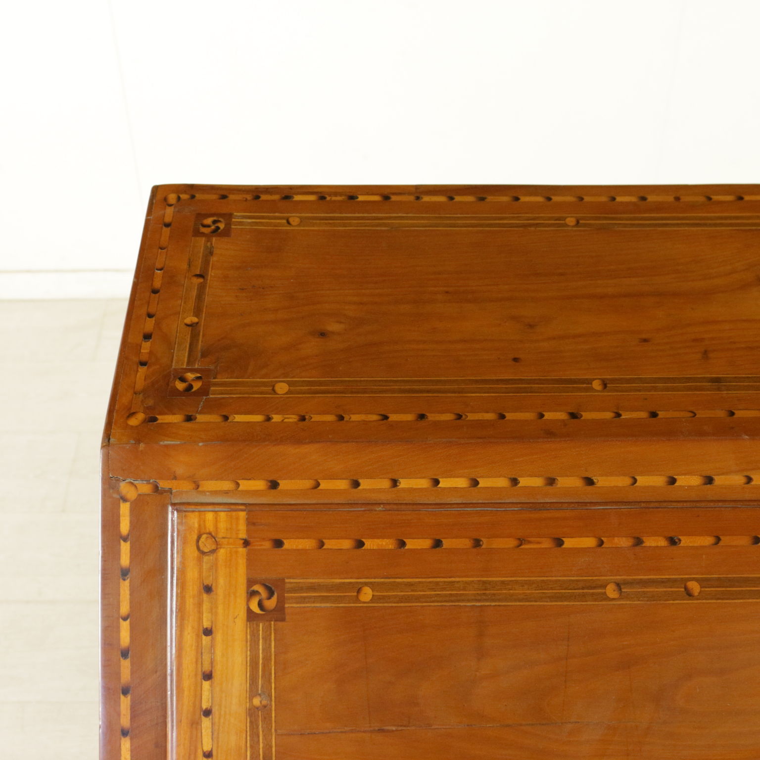Elegant limelight with three drawers straight from the foot is composed of. Features tilting door, four small drawers interior with hinged and sliding top secret. Intarsia a toppo in maple and walnut.