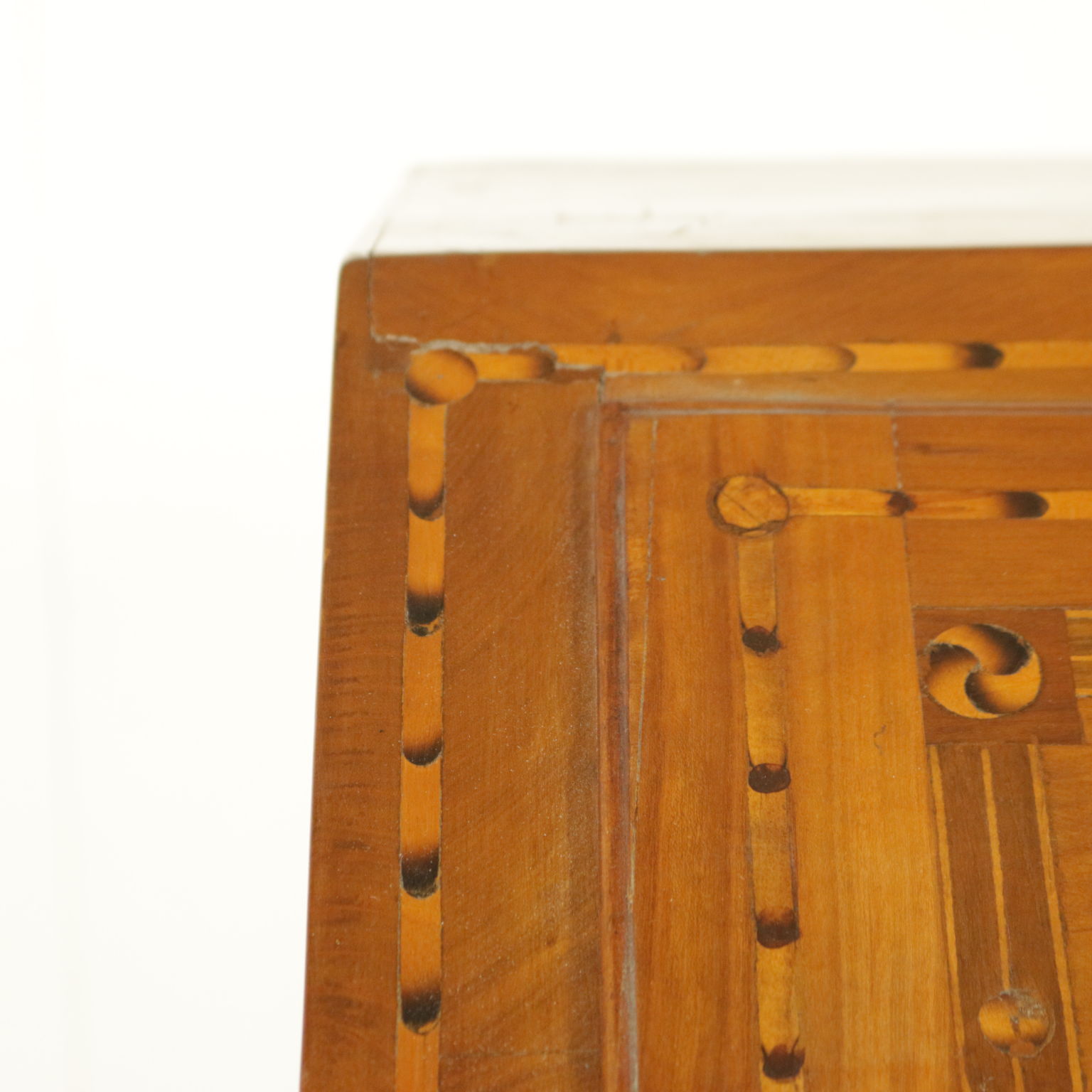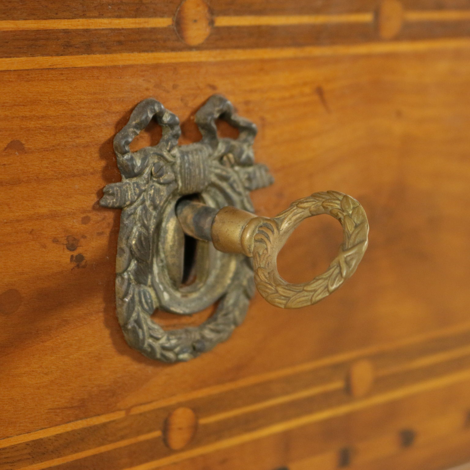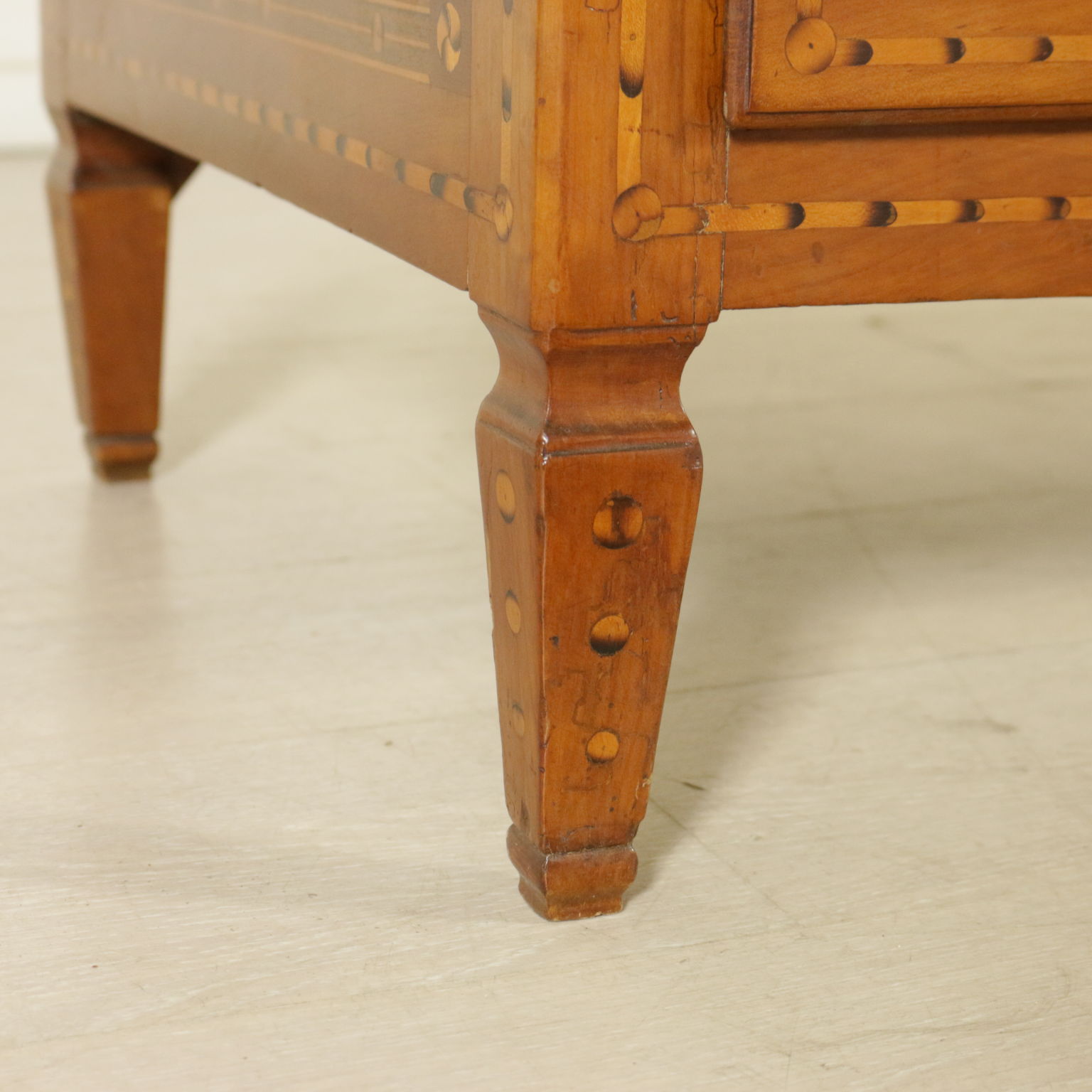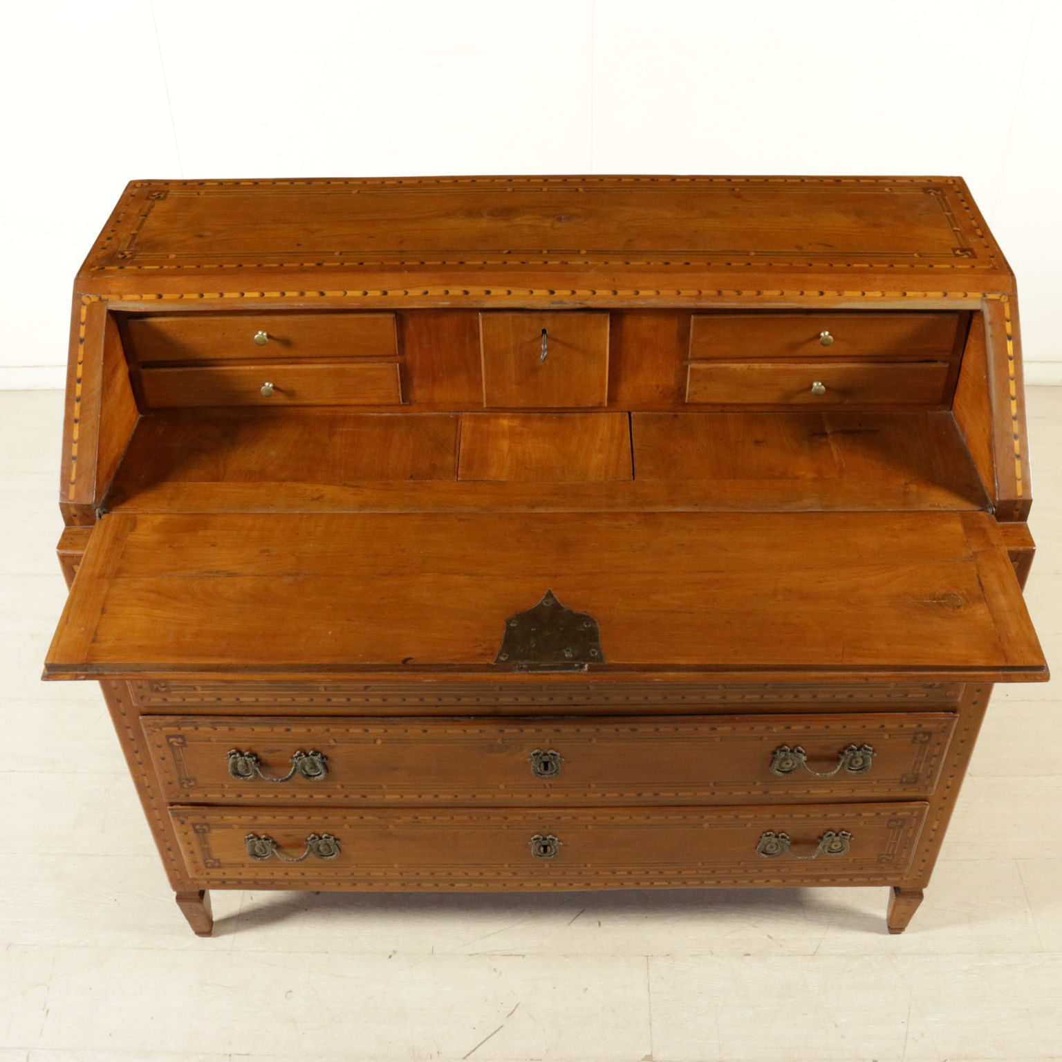 Elegant limelight with three drawers straight from the foot is composed of. Features tilting door, four small drawers interior with hinged and sliding top secret. Intarsia a toppo in maple and walnut.