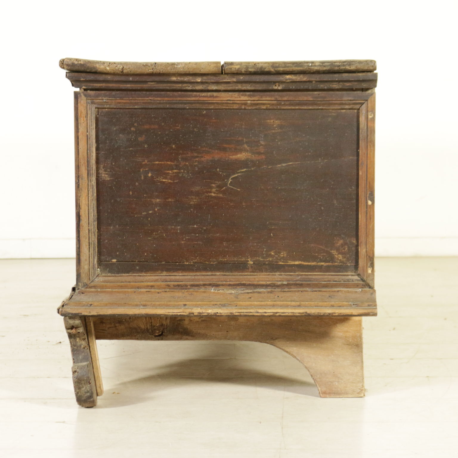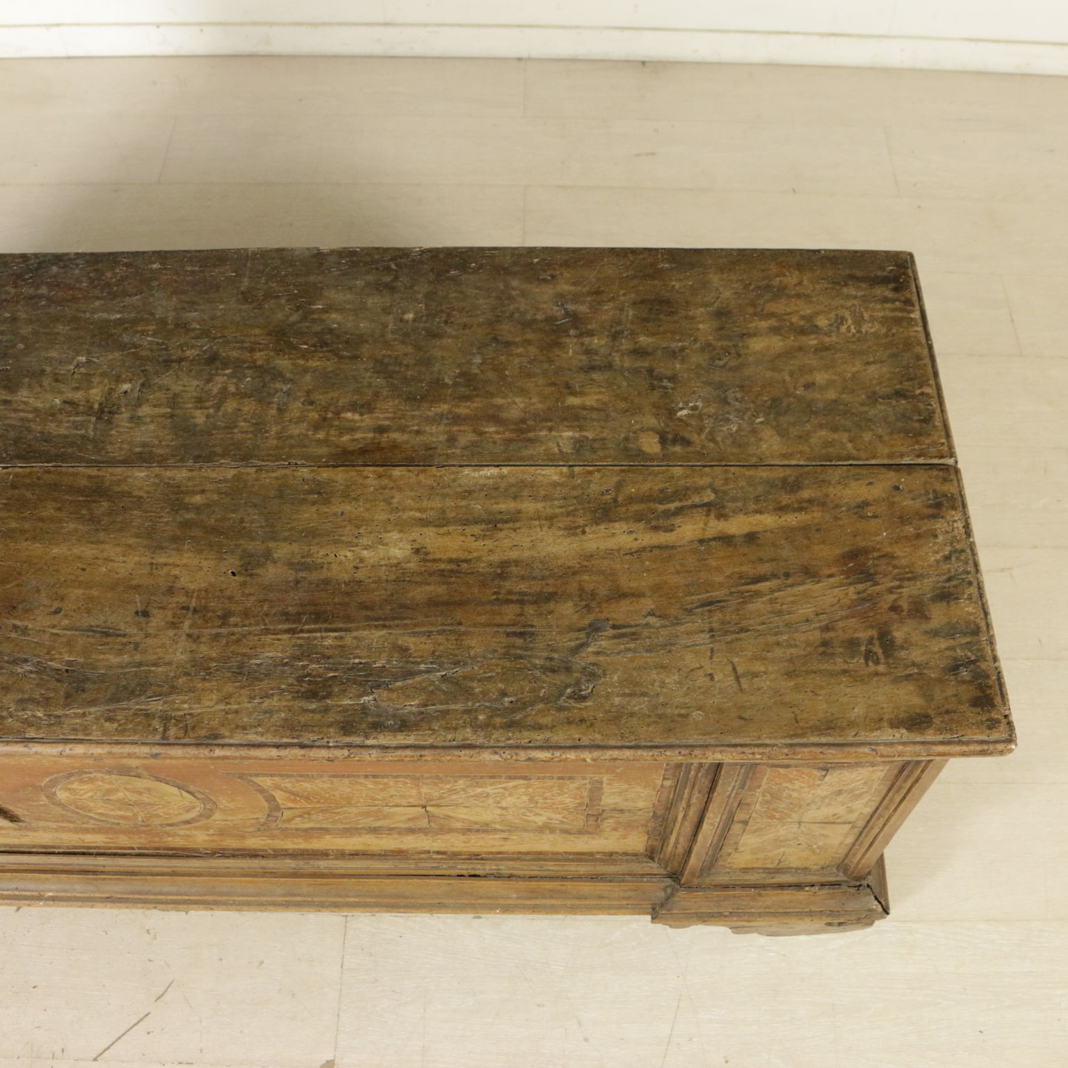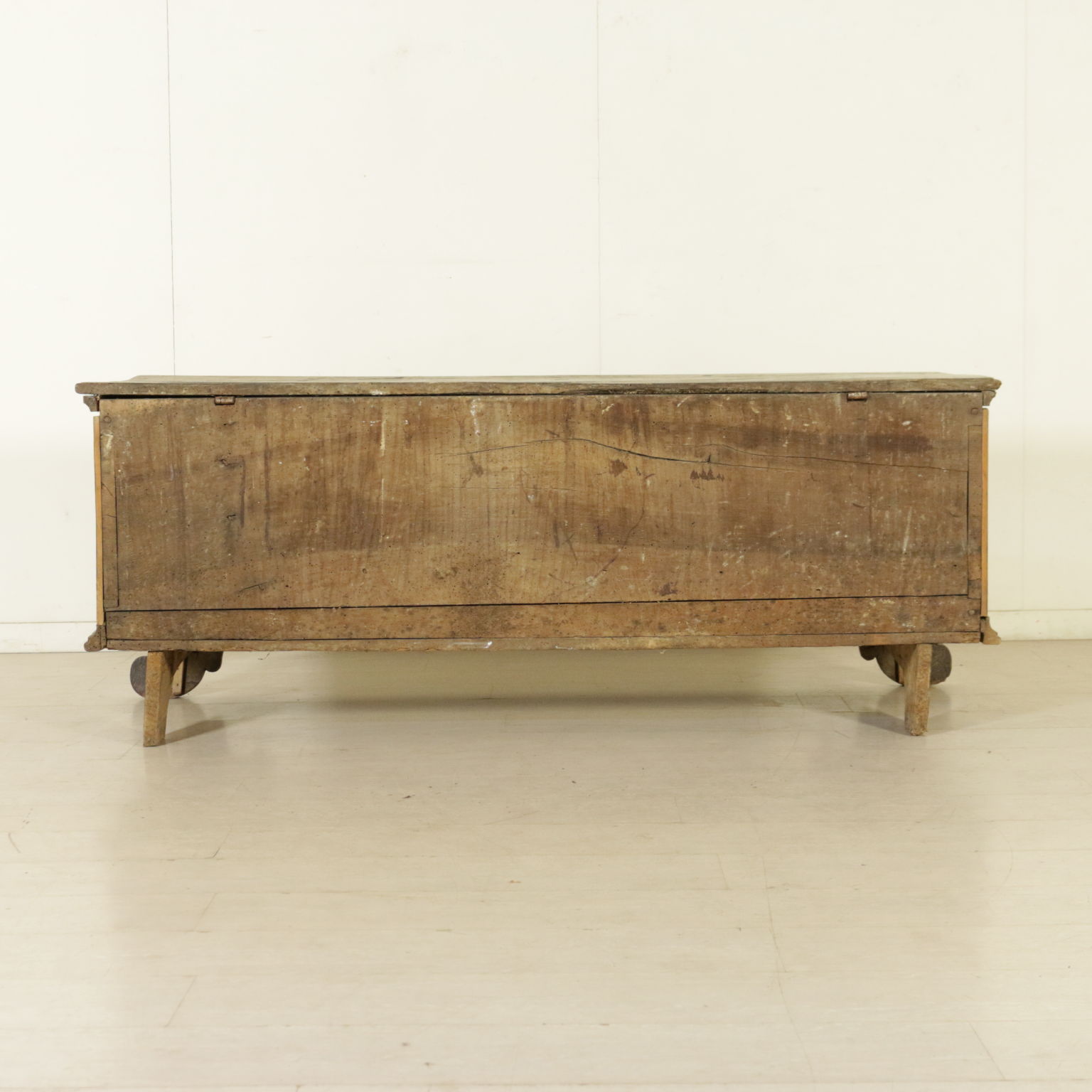Chest lastronata on the front with reserves in walnut veined and threads. Bracket feet and the floor opening. Antiques, Italy, first half of the '700.