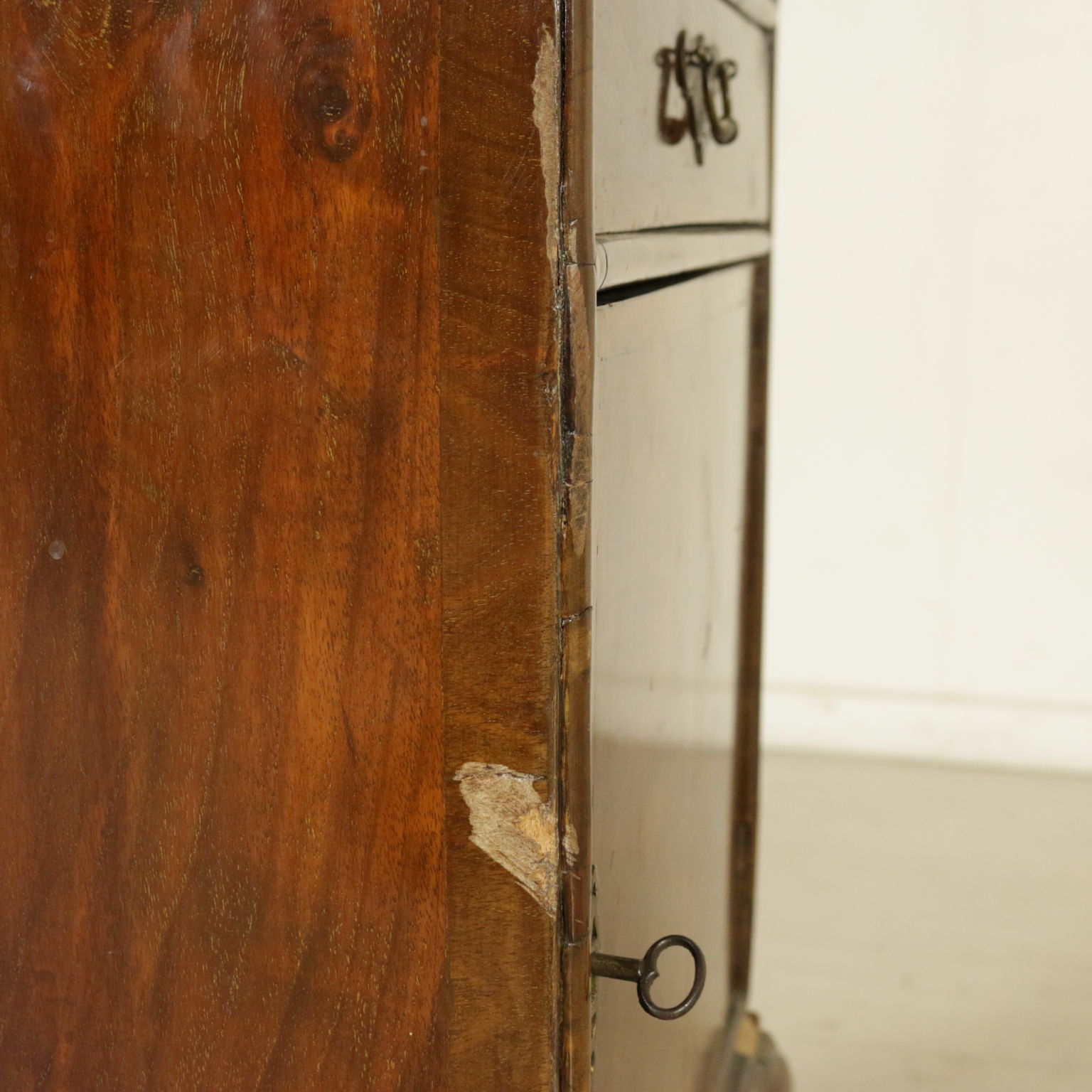 Small mobile lift is governed by the foot moved, has a door, a drawer and pull. Raised with a door-shaped, and coping hoof.