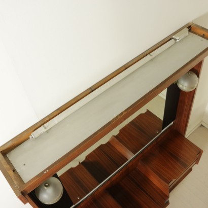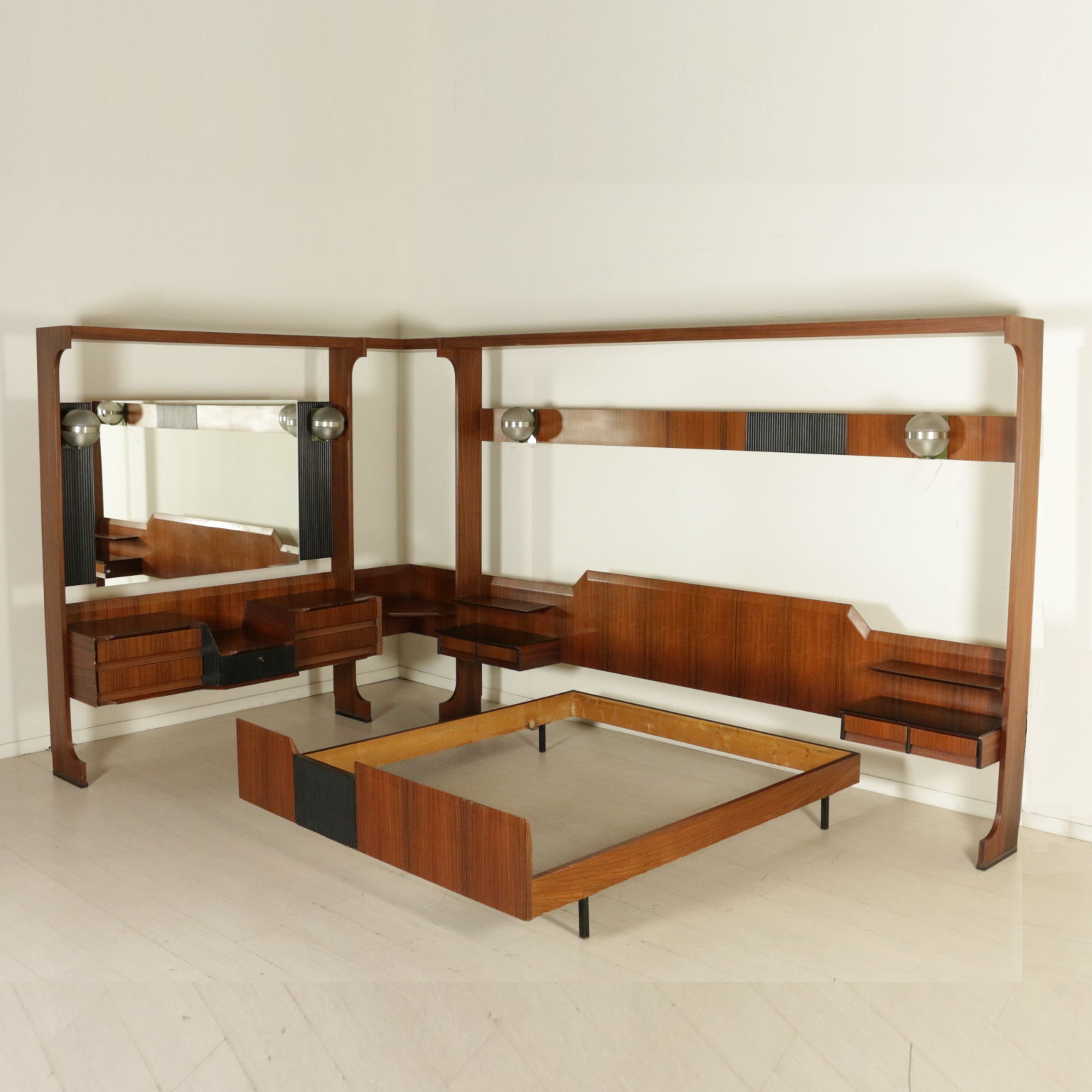 A dressing table with mirror and drawers. Rosewood veneer, stained ebony panels. Available a matching double bed in our store. Manufactured in Italy, 1960s.